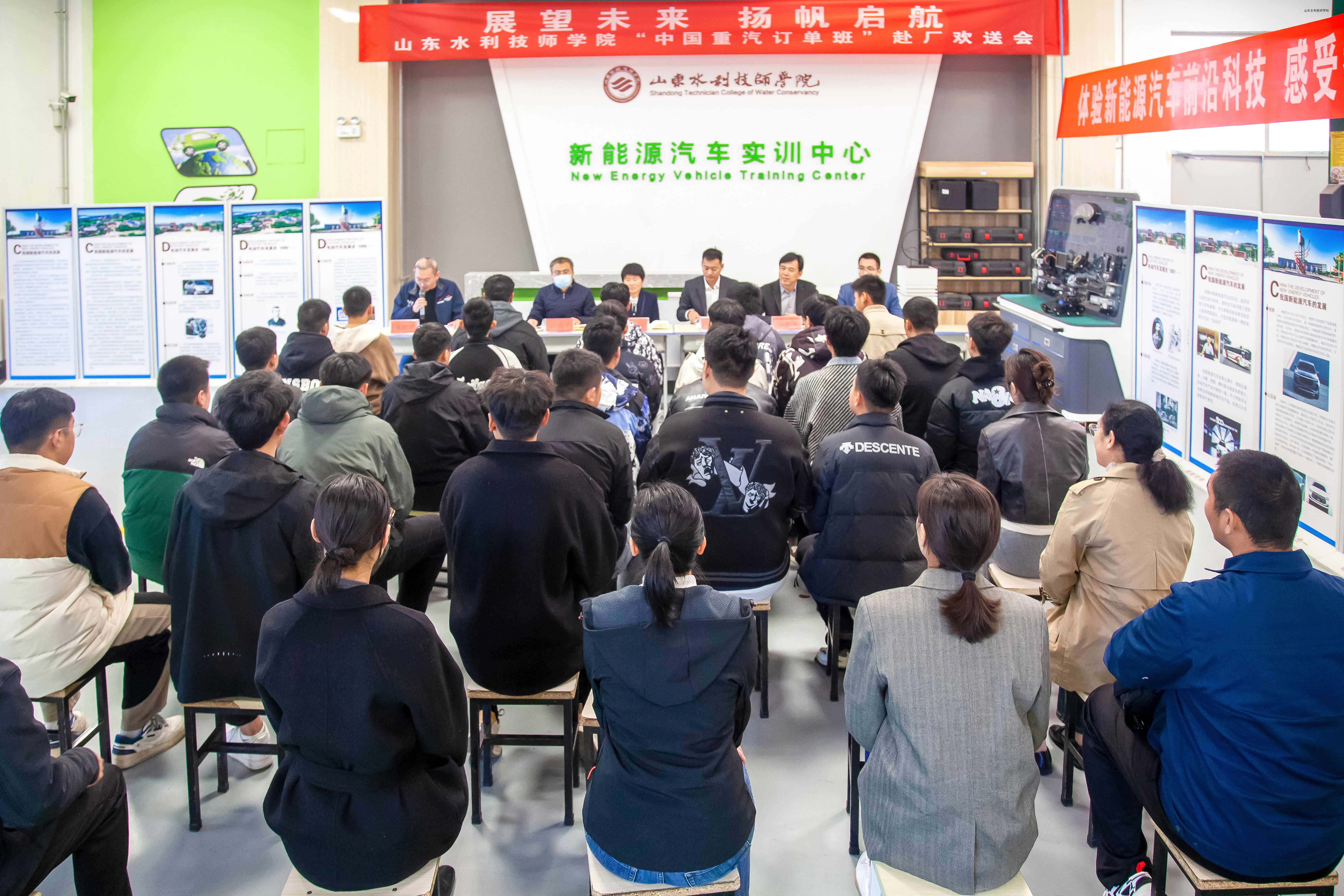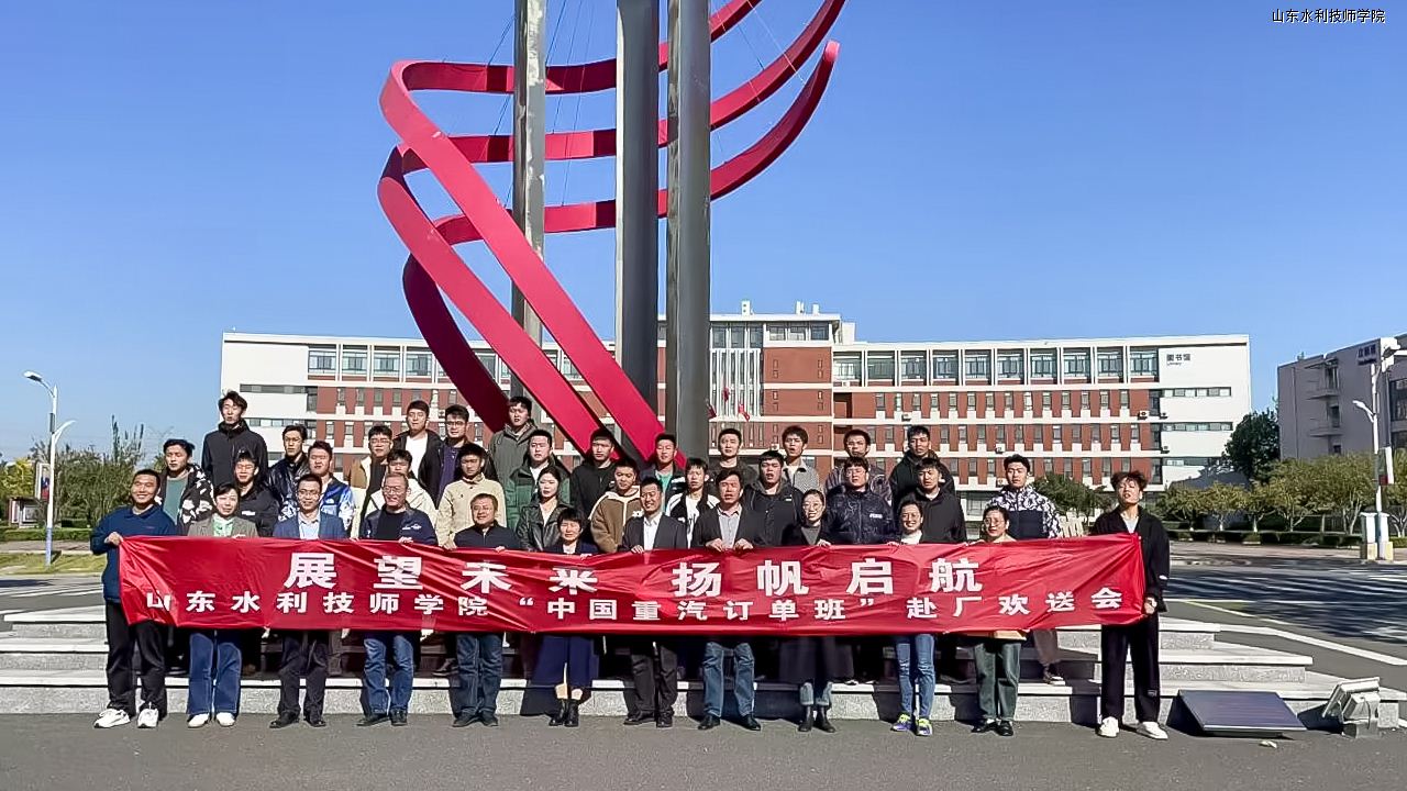 11月7日,山东水利技师学院交通工程系举行以“展望未来 扬帆起航”为主题的中国重汽订单班赴厂实习欢送仪式。中国重汽人力资源部副部长刘兴刚一行4人、学院副院长程霞出席欢送仪式。
