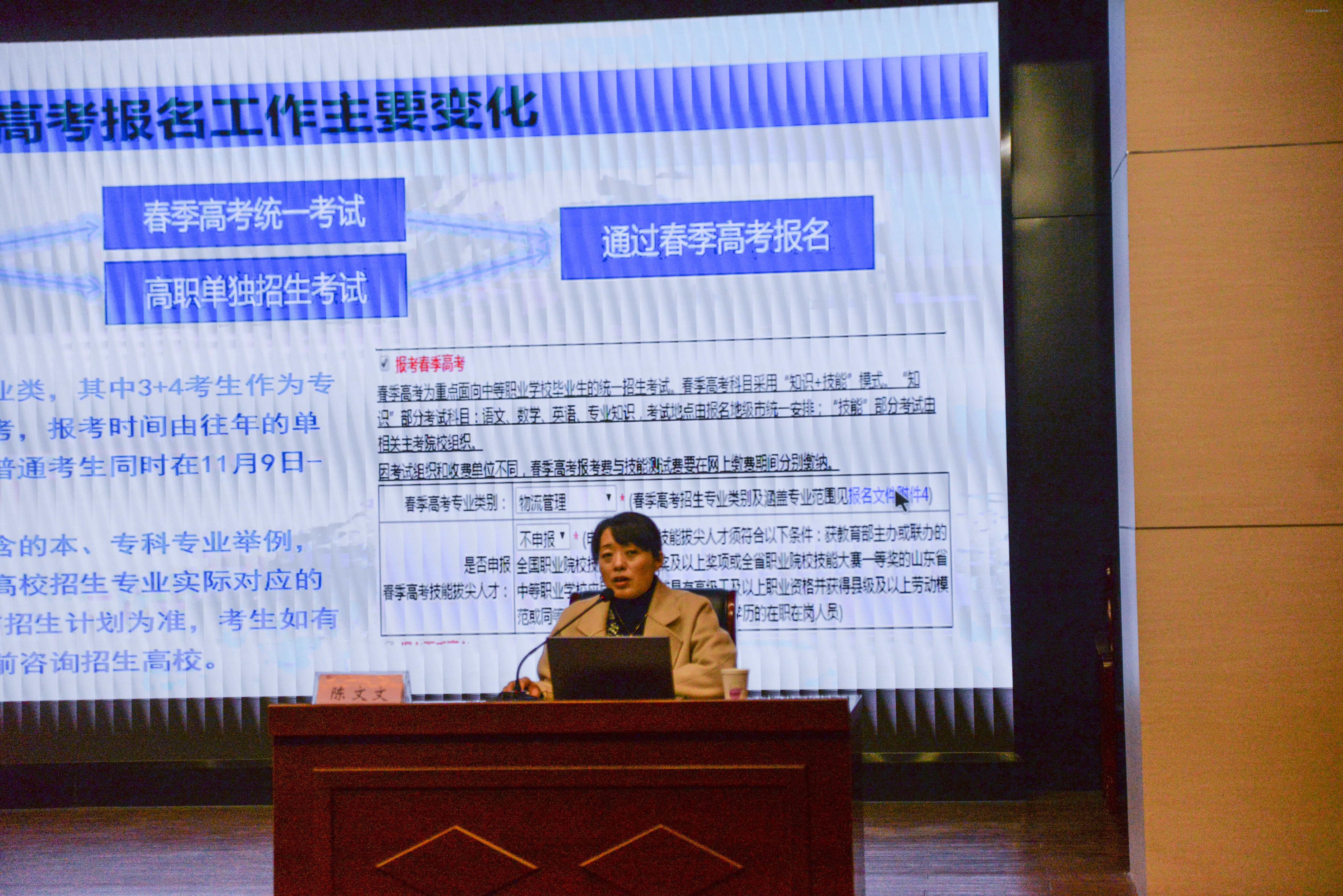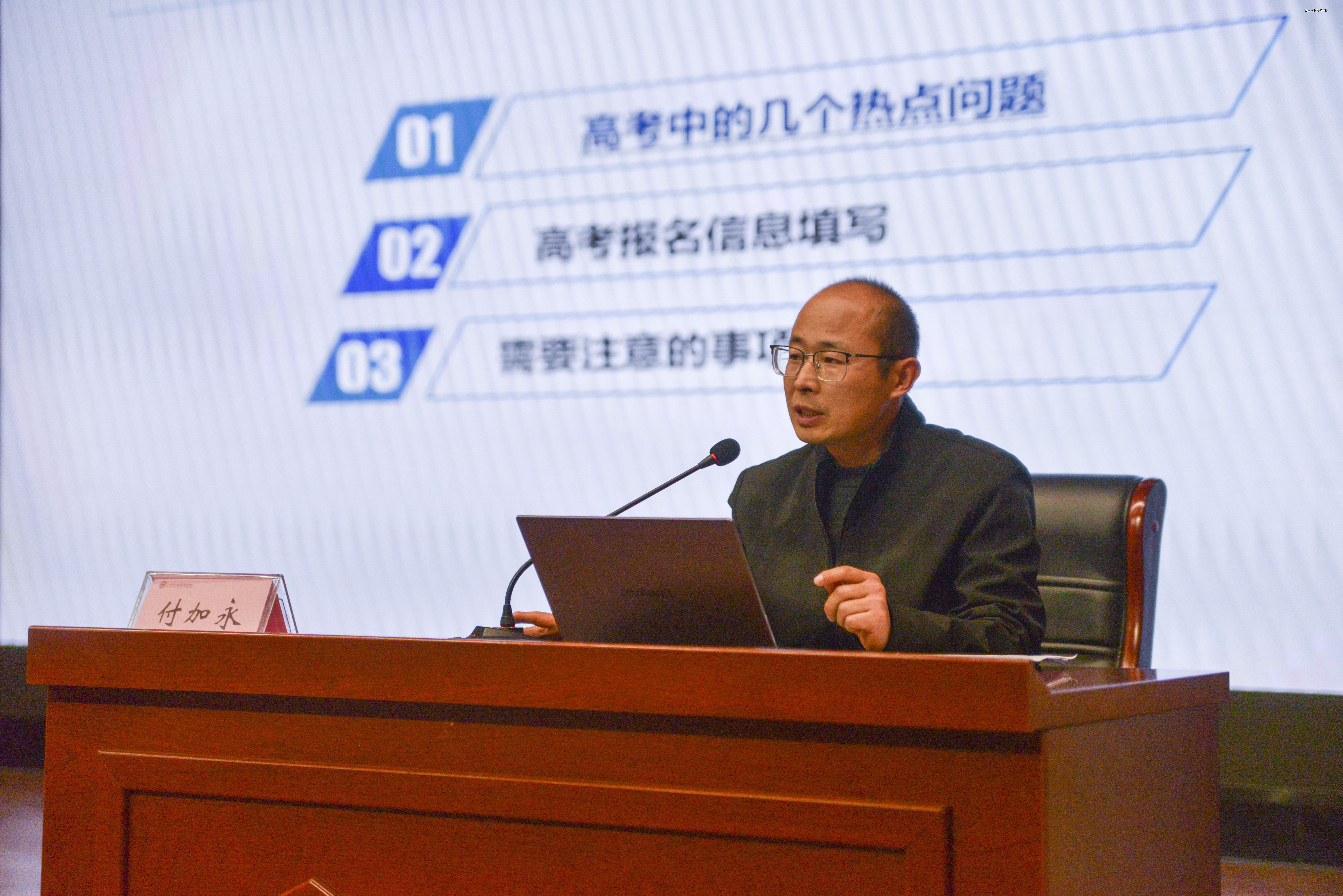 11月7日,山东水利技师学院通识教育部牵头举办学院2024年高考报名暨职教政策解读报告会,邀请淄川区教体局考试办负责人作专题报告,学院党委委员孙大广出席会议。学院各系部负责人、2024届毕业班辅导员和教学班主任,以及2021级职教高考班全体学生参加会议。