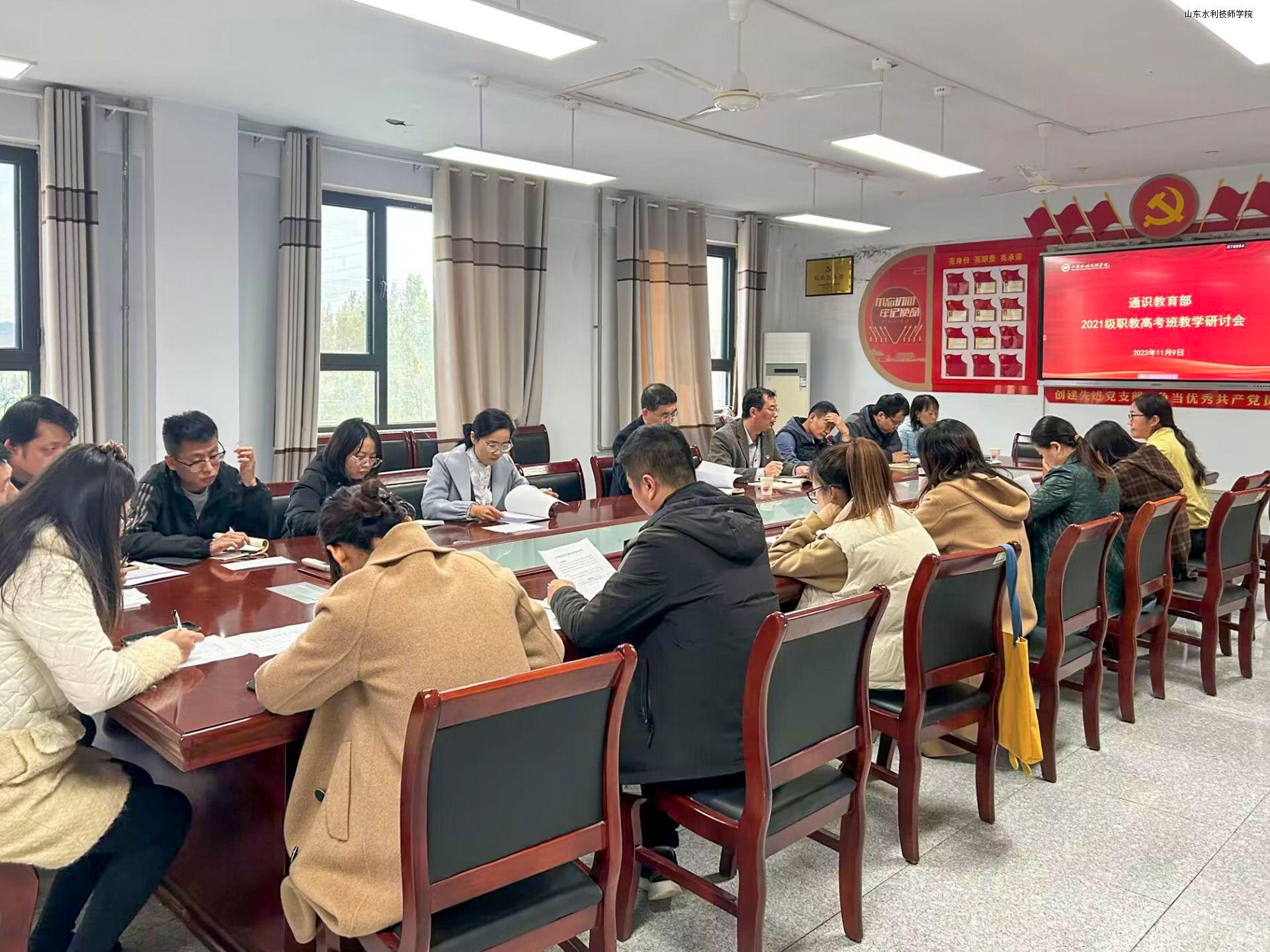 11月9日,山东水利技师学院通识教育部组织召开2021级职教高考班教学分析研讨会,学院党委委员孙大广到会指导,各系部负责人、2021级职教高考班任课教师及教学班主任参会。
