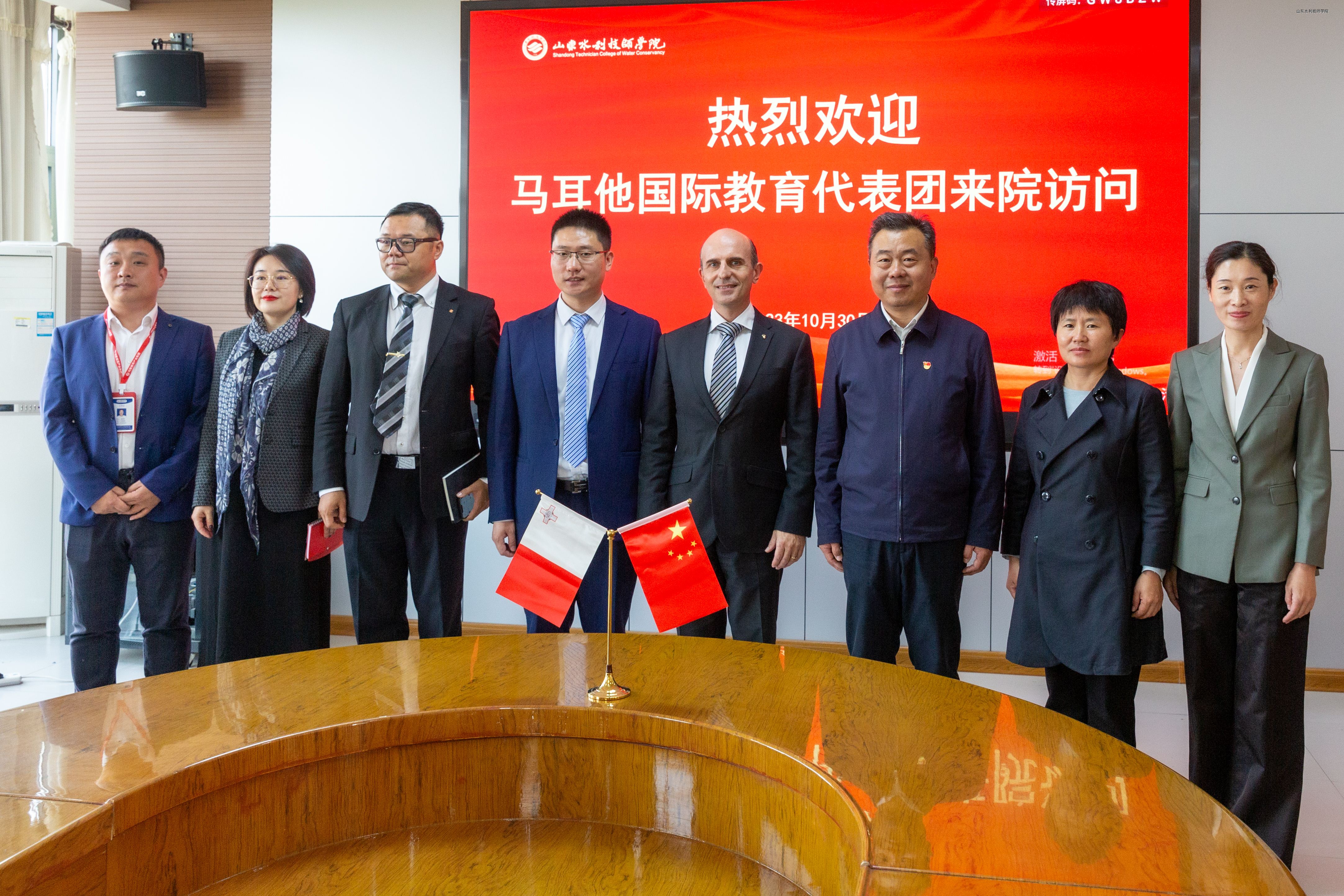 10月30日,马耳他国家教育代表团中国国际教育展首席代表卡尔·法路嘉·威斯迈尔、马耳他大学中国区招生代表丁宁一行到山东水利技师学院交流访问。
