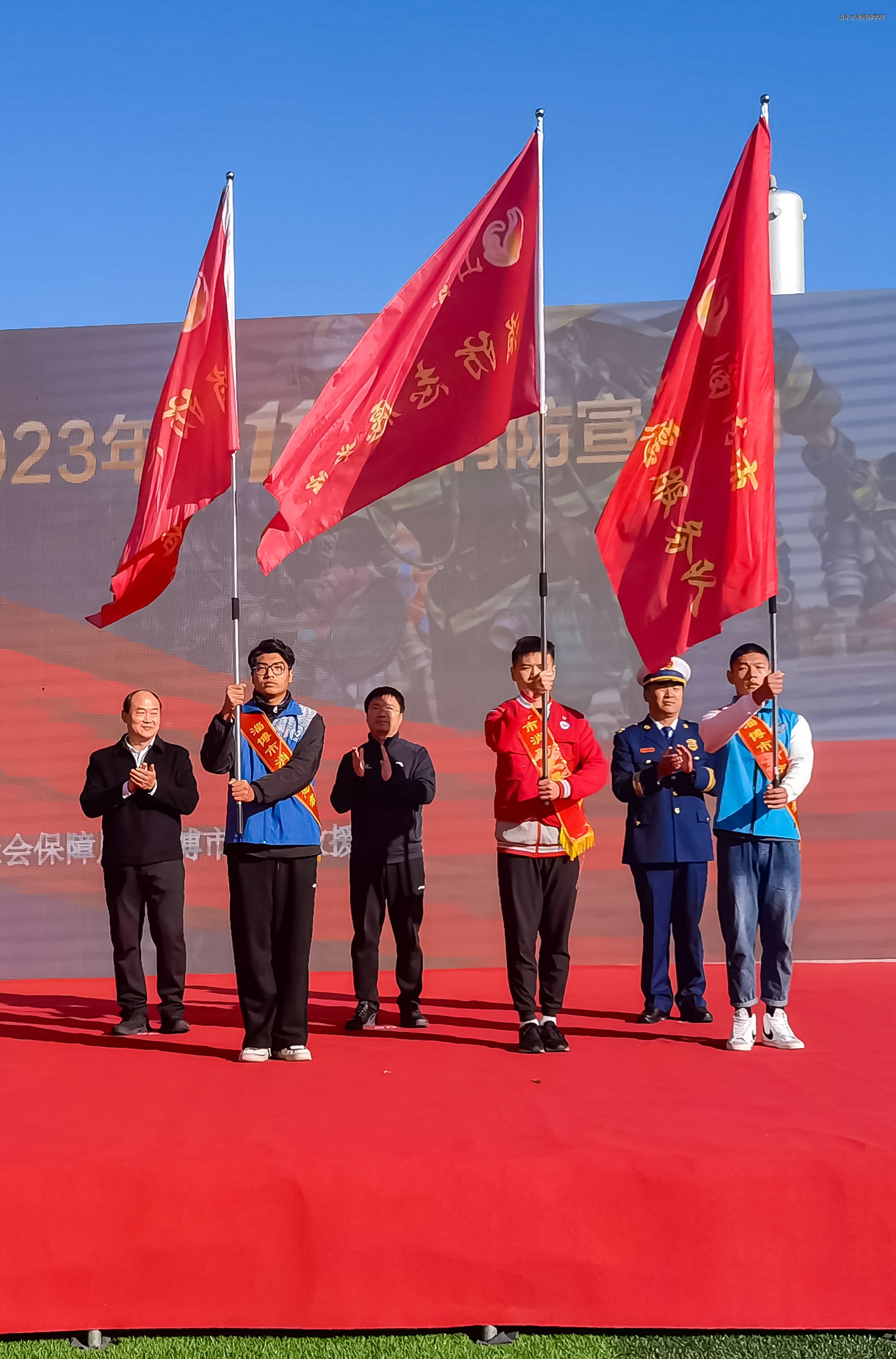 11月7日,山东水利技师学院应淄博市消防救援支队邀请,组织学生消防志愿服务队代表赴山东省危险化学品事故灾害应急救援中心,参加以“预防为主,生命至上”为主题的119消防宣传月联谊授旗活动。