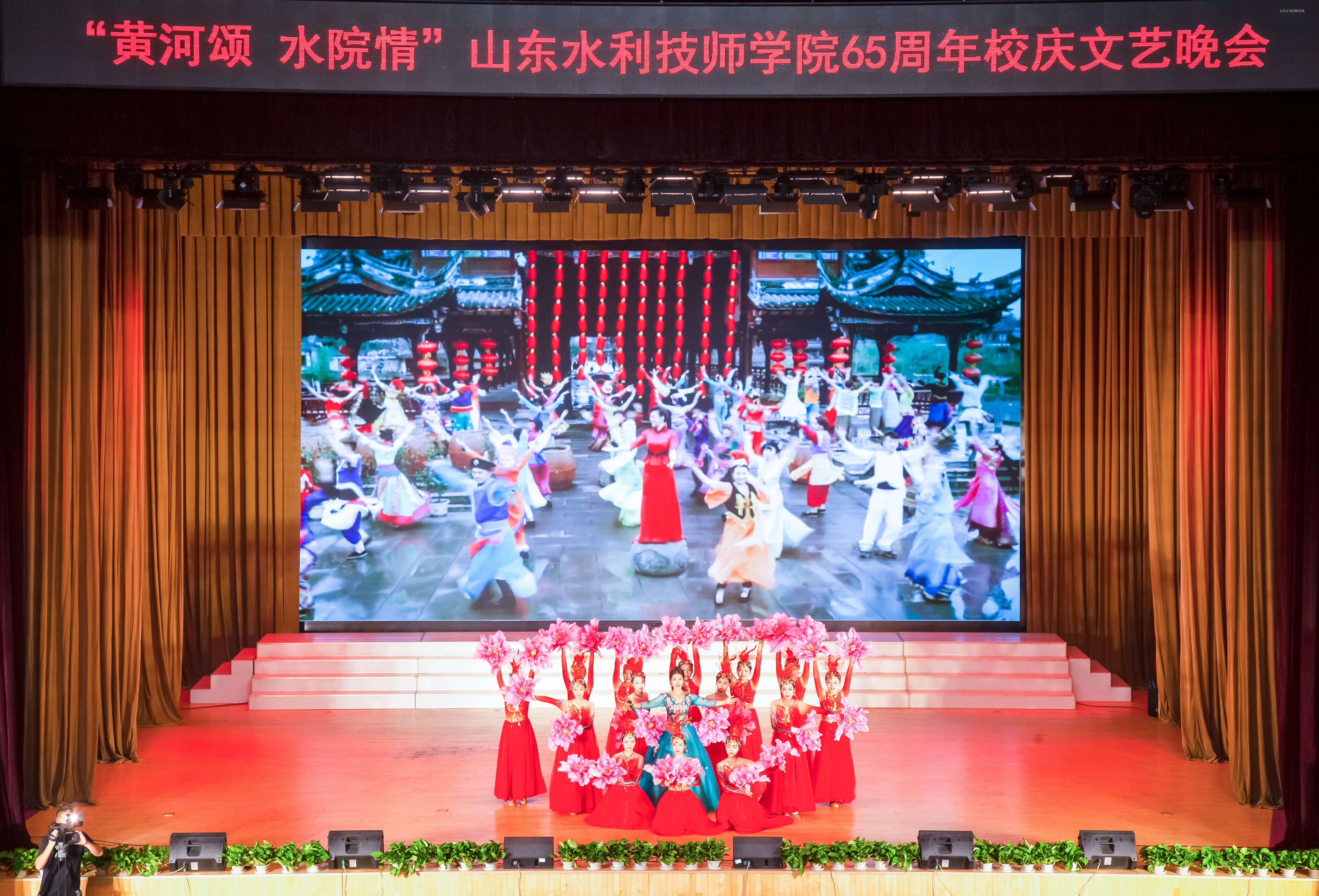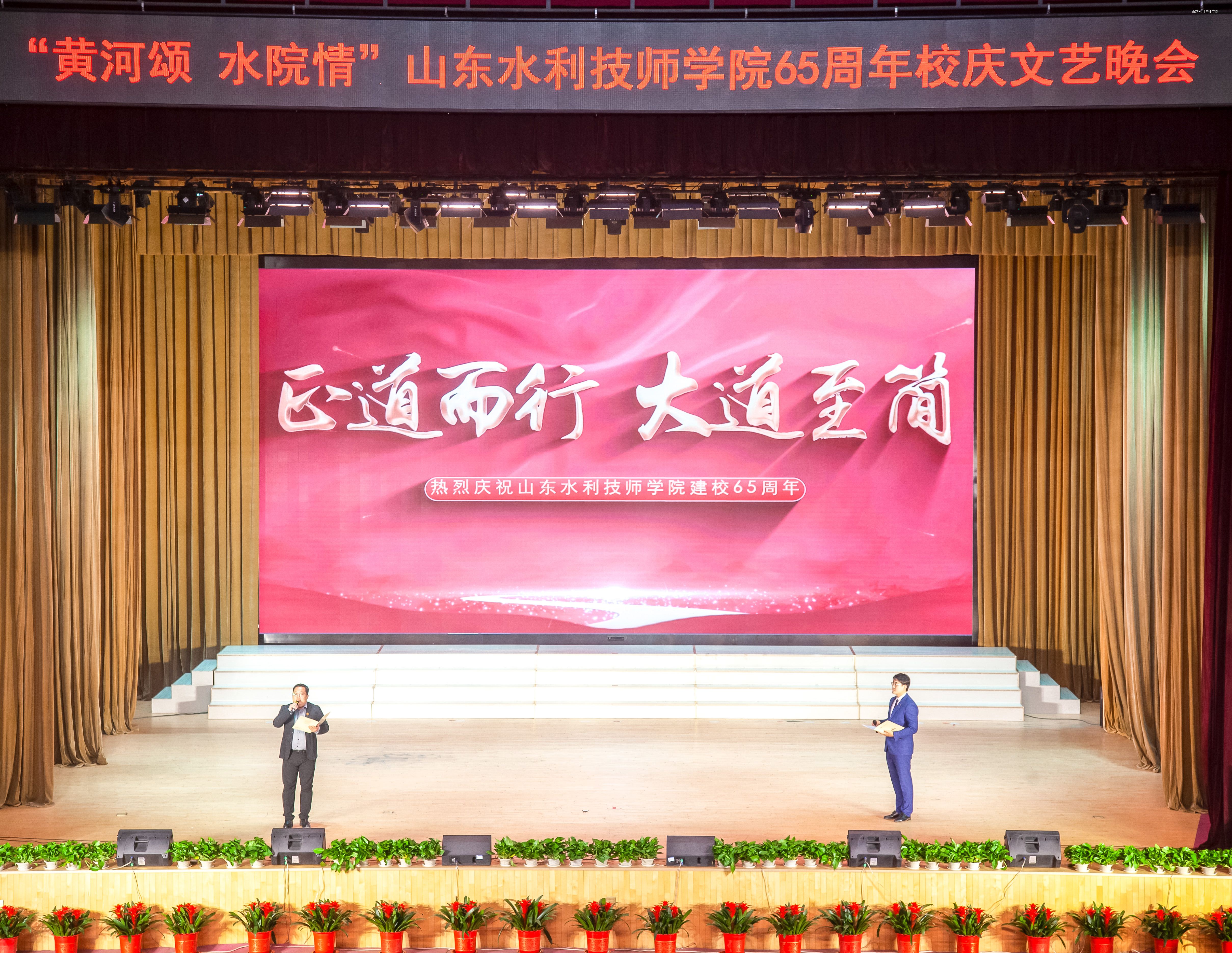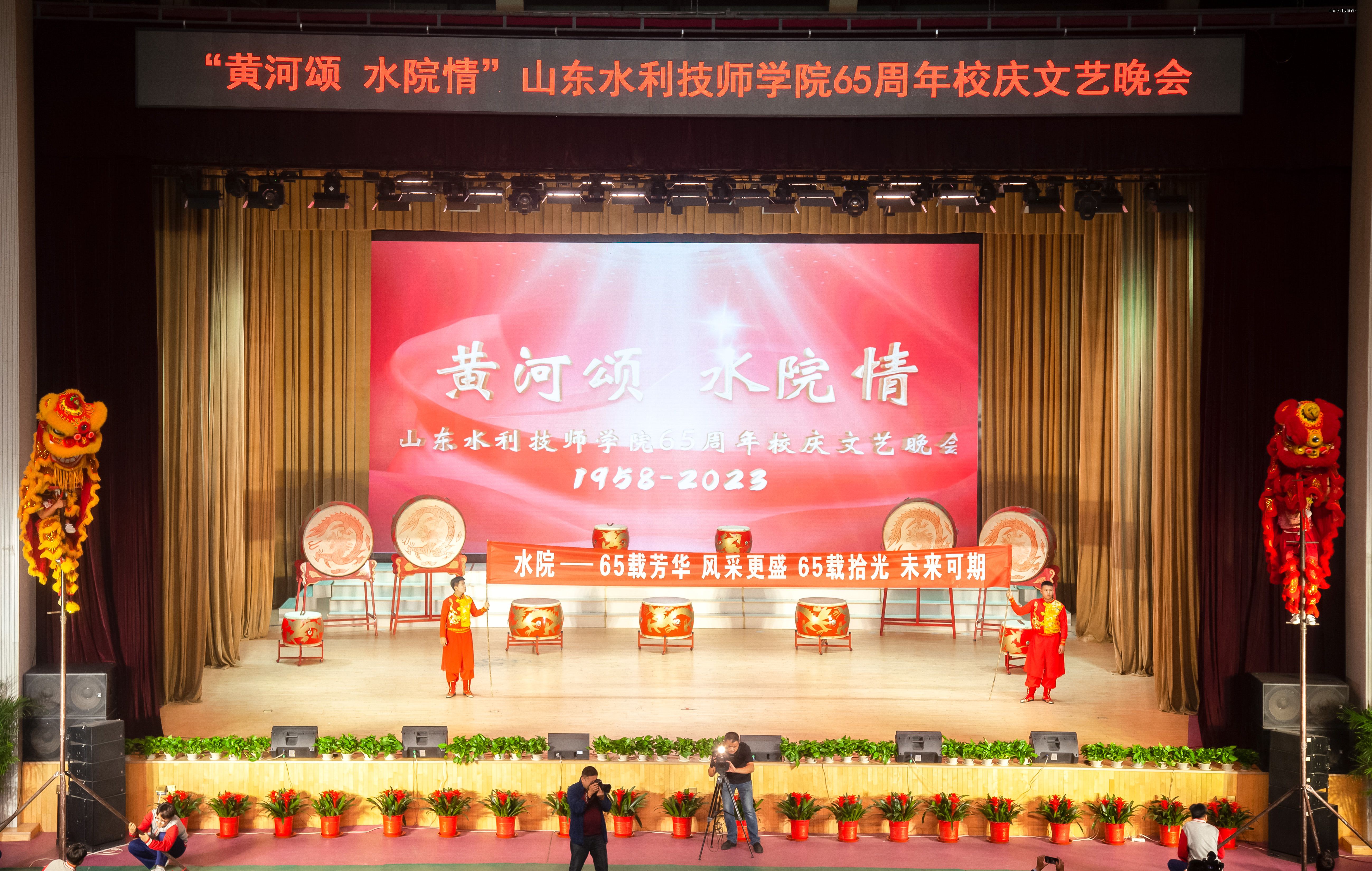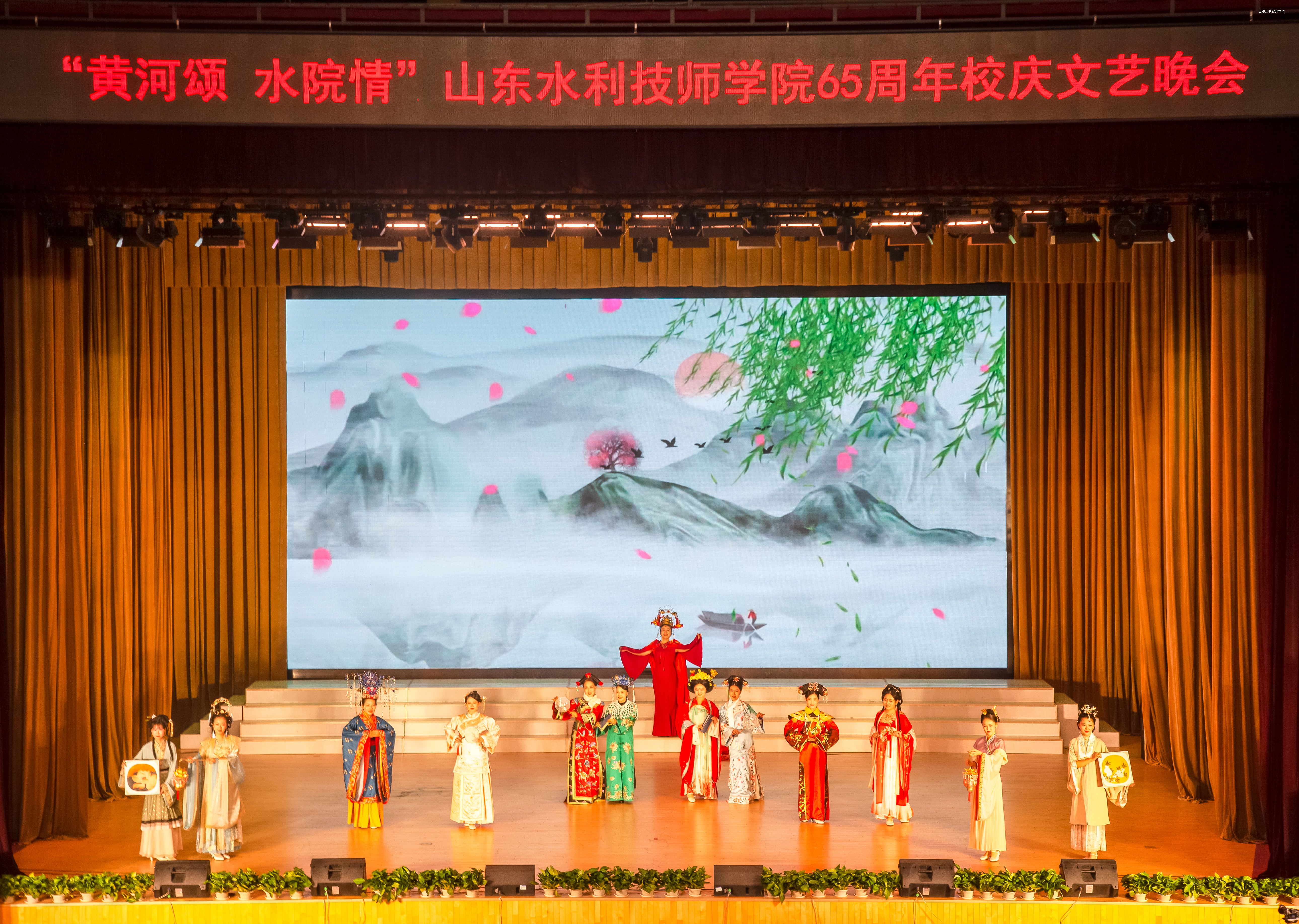 10月18日晚7时,流光溢彩的山东水利技师学院大学生中心内,旗帜高扬,歌声嘹亮,讲述深情,舞蹈翩跹,“武姿”飒爽,掌声如潮——“黄河颂 水院情”学院65周年校庆文艺汇演如期举办。