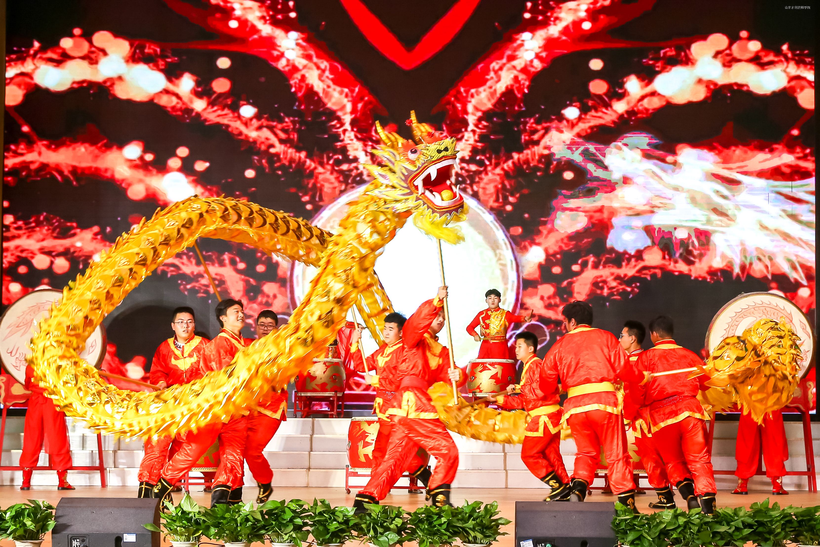校庆汇演在铿锵壮气的《龙腾狮舞鼓震天》中开场,激越的旋律,龙狮的劲舞,瞬间提振了现场所有师生的精气神,澎湃出无畏的豪情、四溢的激情和高涨的热情。