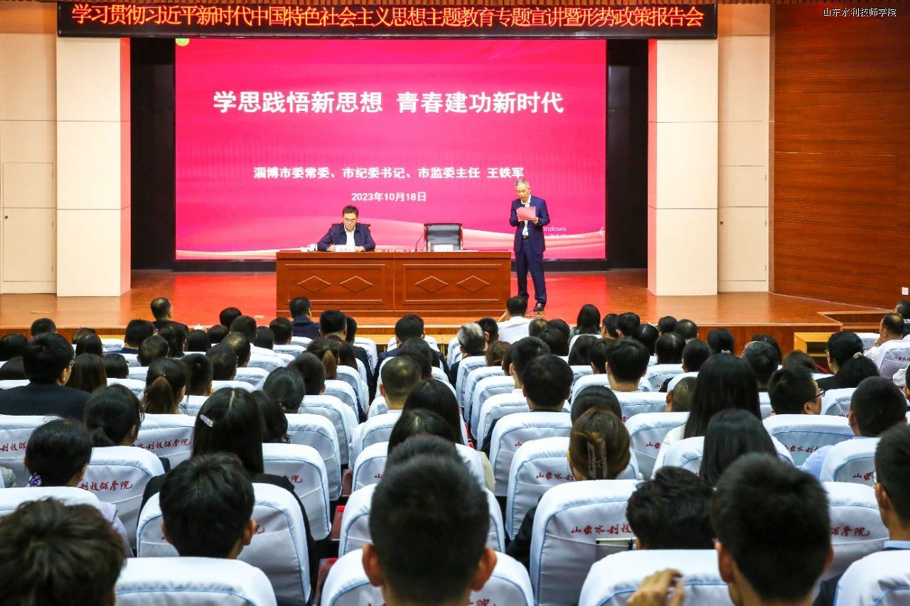 10月18日,市委常委、市纪委书记、市监委主任王铁军以《学思践悟新思想 青春建功新时代》为题,为山东水利技师学院师生作作主题教育专题宣讲暨形势政策报告。山东水利技师学院党委书记于福春主持会议。