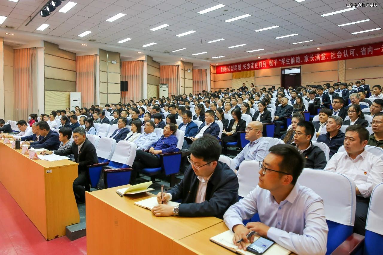 山东水利技师学院全体教职工和学生党员代表参加了报告会。