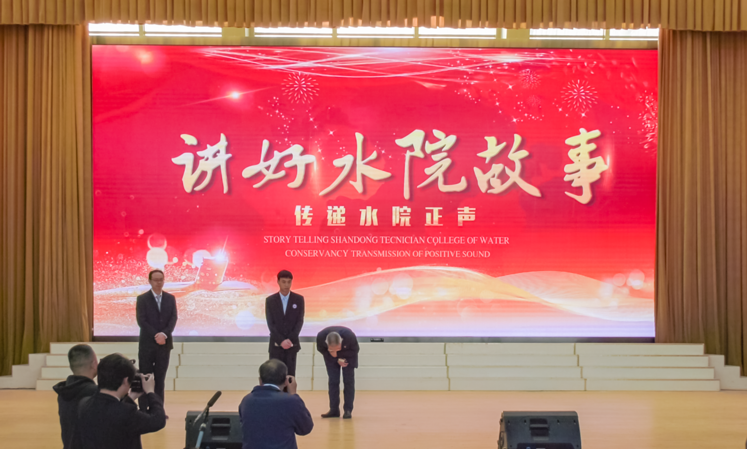 师者,传道、授业、解惑,是人类灵魂的工程师。师者大爱仁心,承担育人的重大责任和使命。学校是师者行道施爱的天地,学生作为受教者是国家、民族和家庭的希望与未来。山东水利技师学院倡行“以爱为源,因材施教”的教风和“快乐学习,多元发展”的学风,师生共奋进同成长,涌现出诸多工匠名师、技术能手和技能标兵。学院党委书记于福春尊师重教,爱师爱生,曾三次在主席台上为师者深鞠躬,饱含深情的敬重和致谢,令人动容。