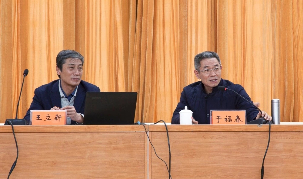 紧接着于福春与师生进行了现场交流,为什么王立新教授讲的课这么好?是因为他为了讲好党课,曾自费走了一遍长征路,一路走一路学、一路采访一路笔记,他讲课生动鲜活是有历史和现实依据的,从王教授身上看到的是教育工作者的教育情怀和钻研精神。于福春勉励学院教师向王立新教授学习,从党史中汲取营养、打牢根基,不忘教育初心,勇担教育使命。
