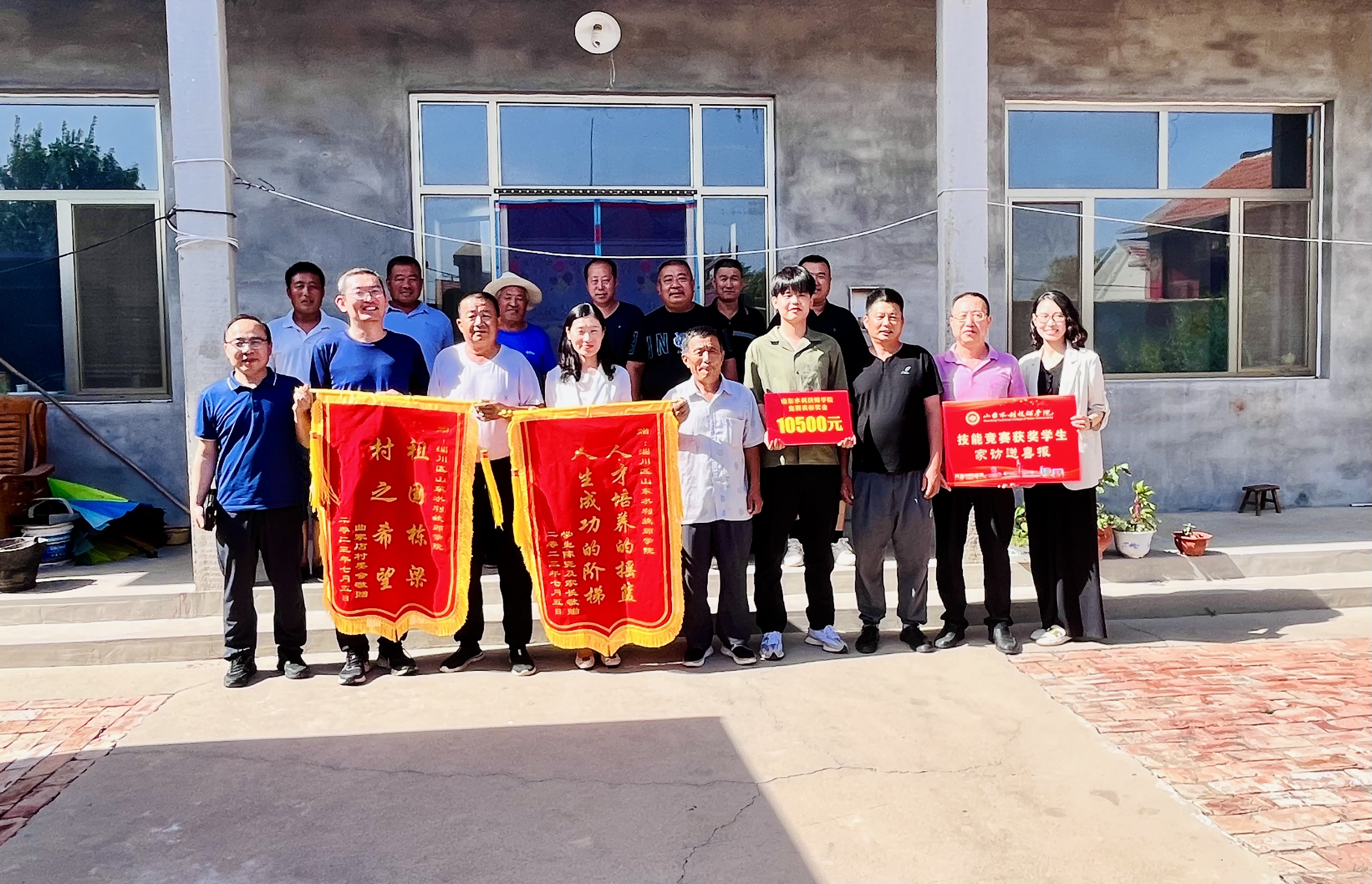 一声声祝贺喜盈门,一声声谢谢表感激,一面面锦旗心连心。在历时两周的时间里,学院70多名教师,在党委书记于福春、院长边敦典等院领导的带领下,分赴淄博、青岛、潍坊、泰安、德州、滨州、新泰、泗水、邯郸等省内外地市,对学院2022年获得国家奖学金和在技能竞赛中表现优异的27名学生家庭进行家访送喜报。同时,给所在村委会(居委会)送上喜报和感谢信,并开展“家访一户,服务一村,影响一地”暑假社会实践暨志愿服务活动,发挥专业技术人员优势和特长,为家访学生所在乡村、社区提供服务。