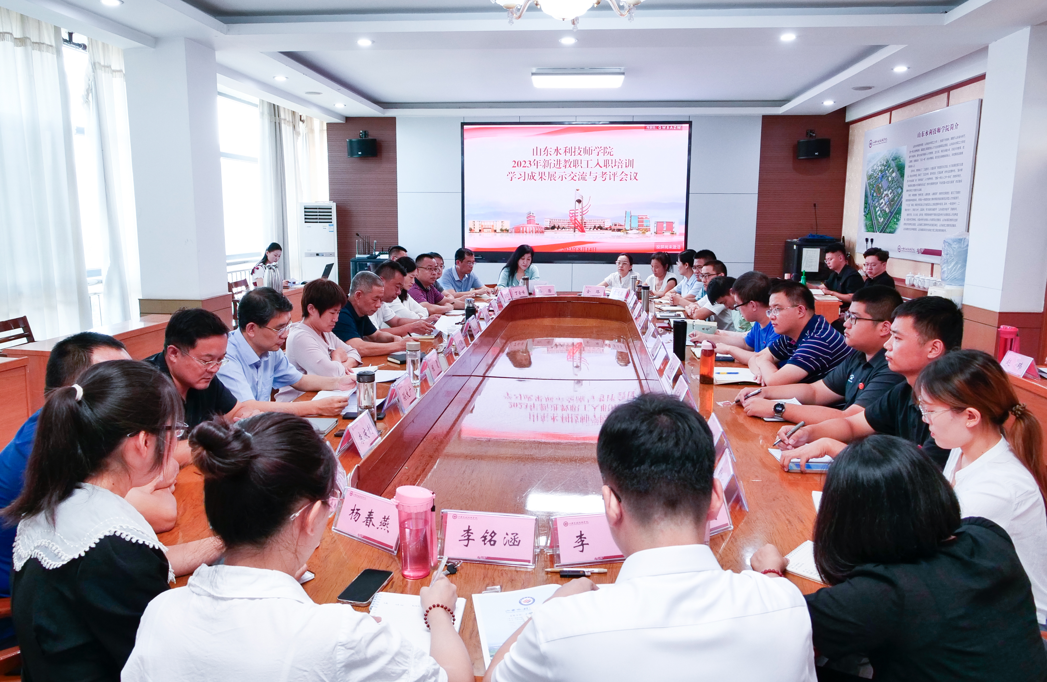 8月14日,山东水利技师学院召开2023年新进教职工入职培训学习成果展示交流与考核会议。学院党委书记于福春出席会议,并与新进教职工亲切座谈。院长边敦典,副院长程霞、穆云丽,高级技工部主任孙大广出席会议。