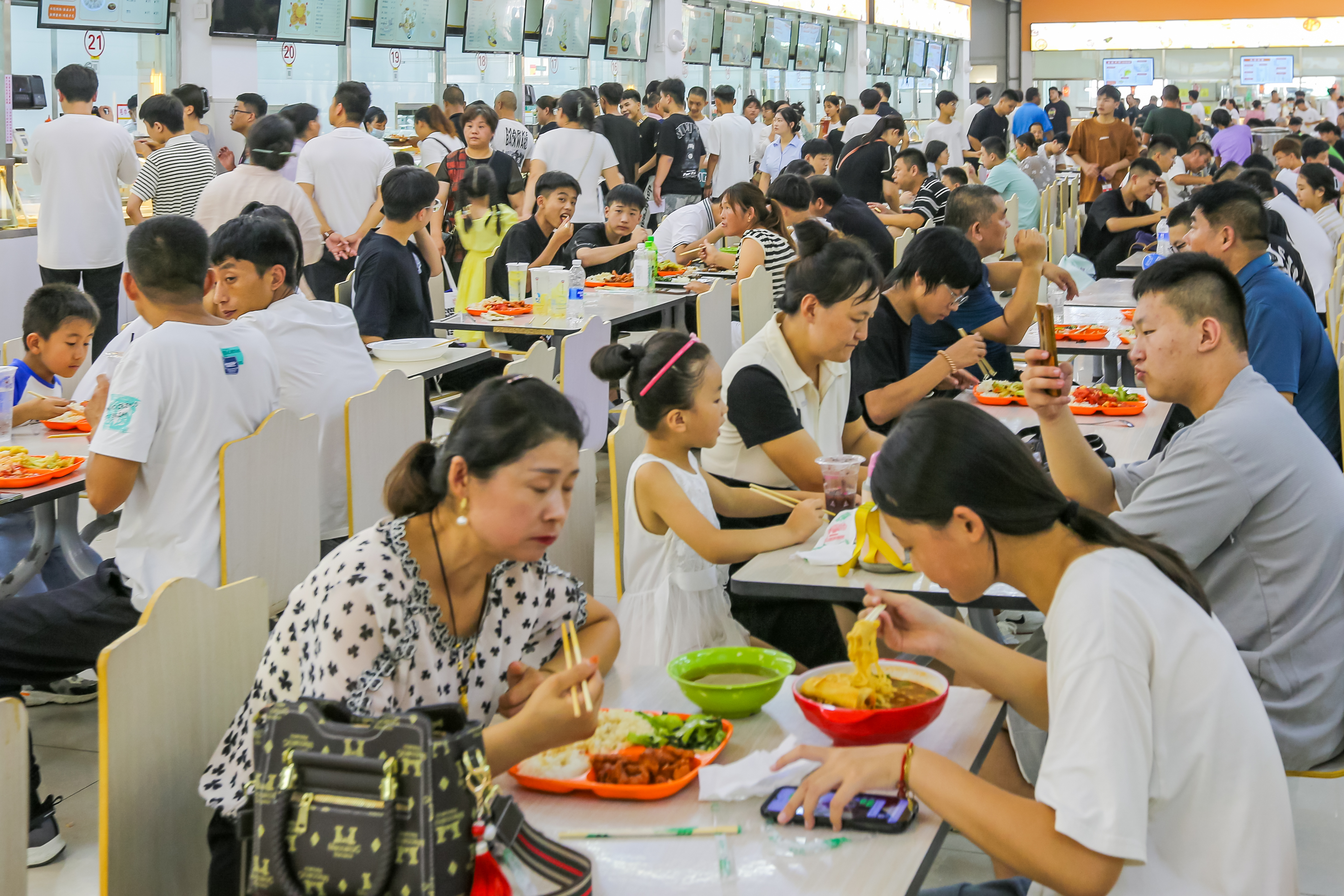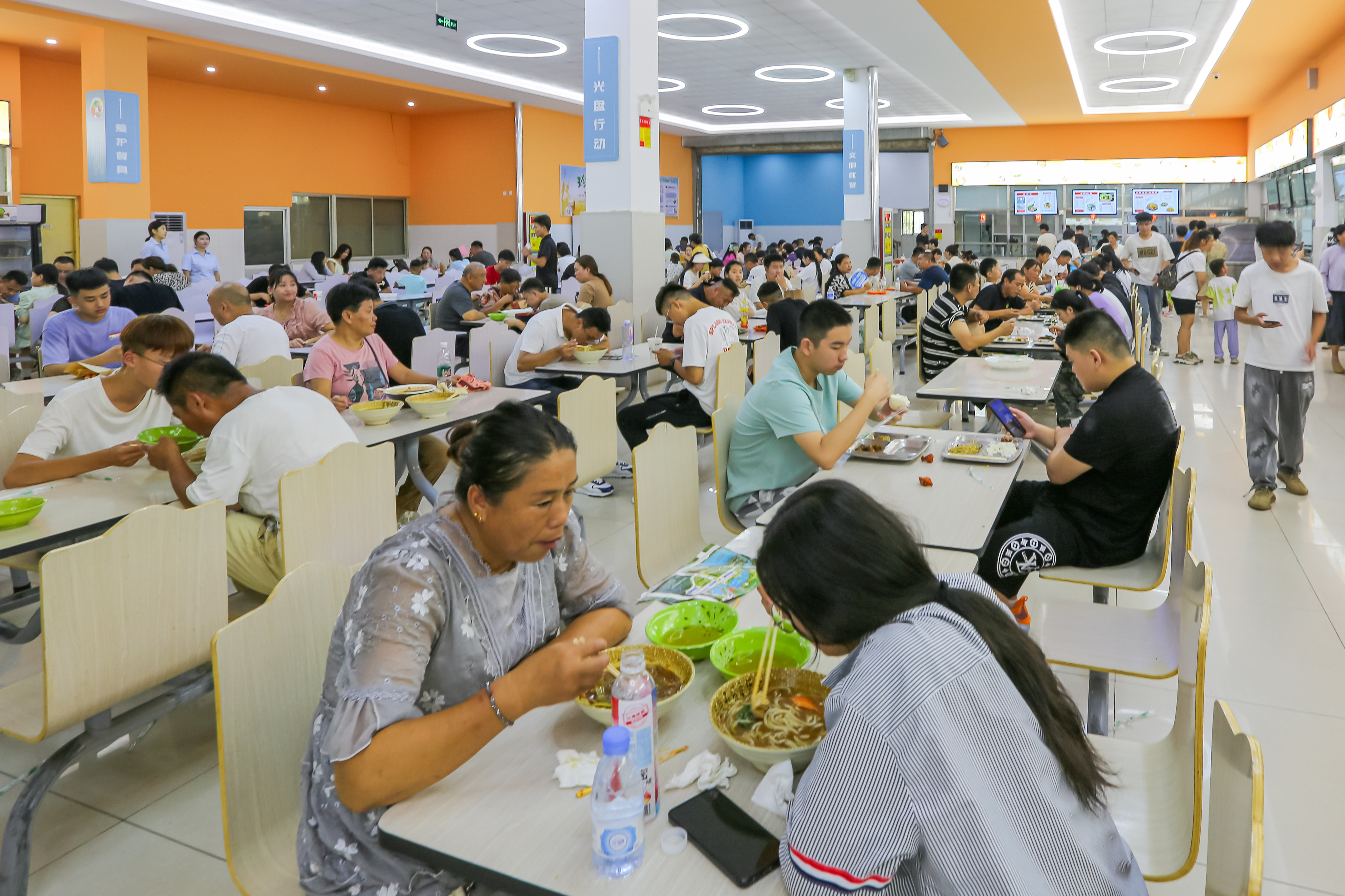 时间行至中午,学生餐厅再度火热起来。鉴于新生还没完全熟悉餐厅,工作人员主动为驻足在窗口的学生和家长耐心解说并询问口味,帮助他们选择满意的食品。一道道色香味俱佳的美食,引领学生和家长开启了一场舌尖上的水院美食之旅。“美滋滋,爽歪歪”“太好吃了”“学生太幸福了吧”……来自学生和家长的一声声由衷的赞誉,洋溢在他们脸上的一个个开心满足的表情,交织成学生餐厅最美妙的交响。