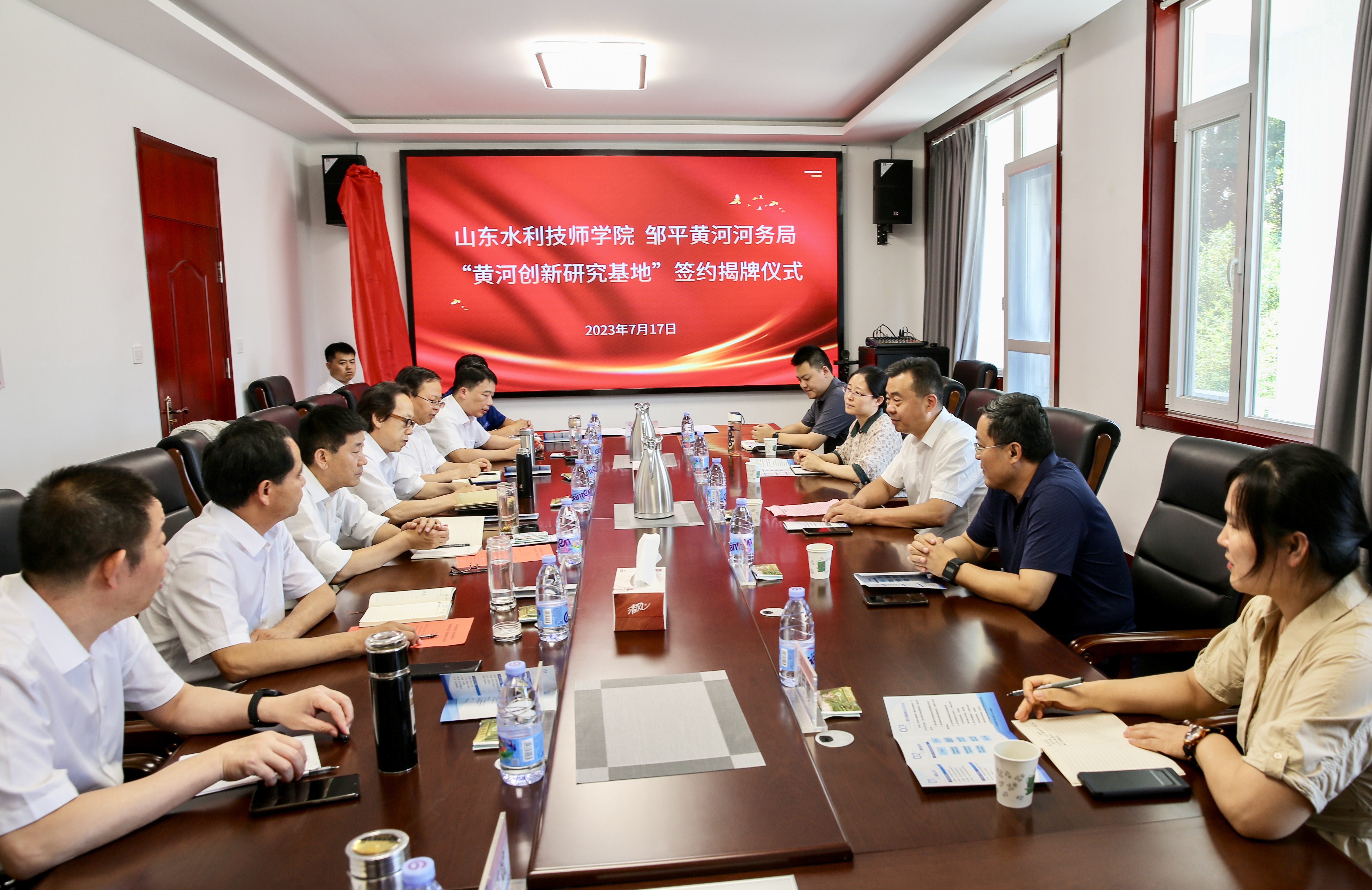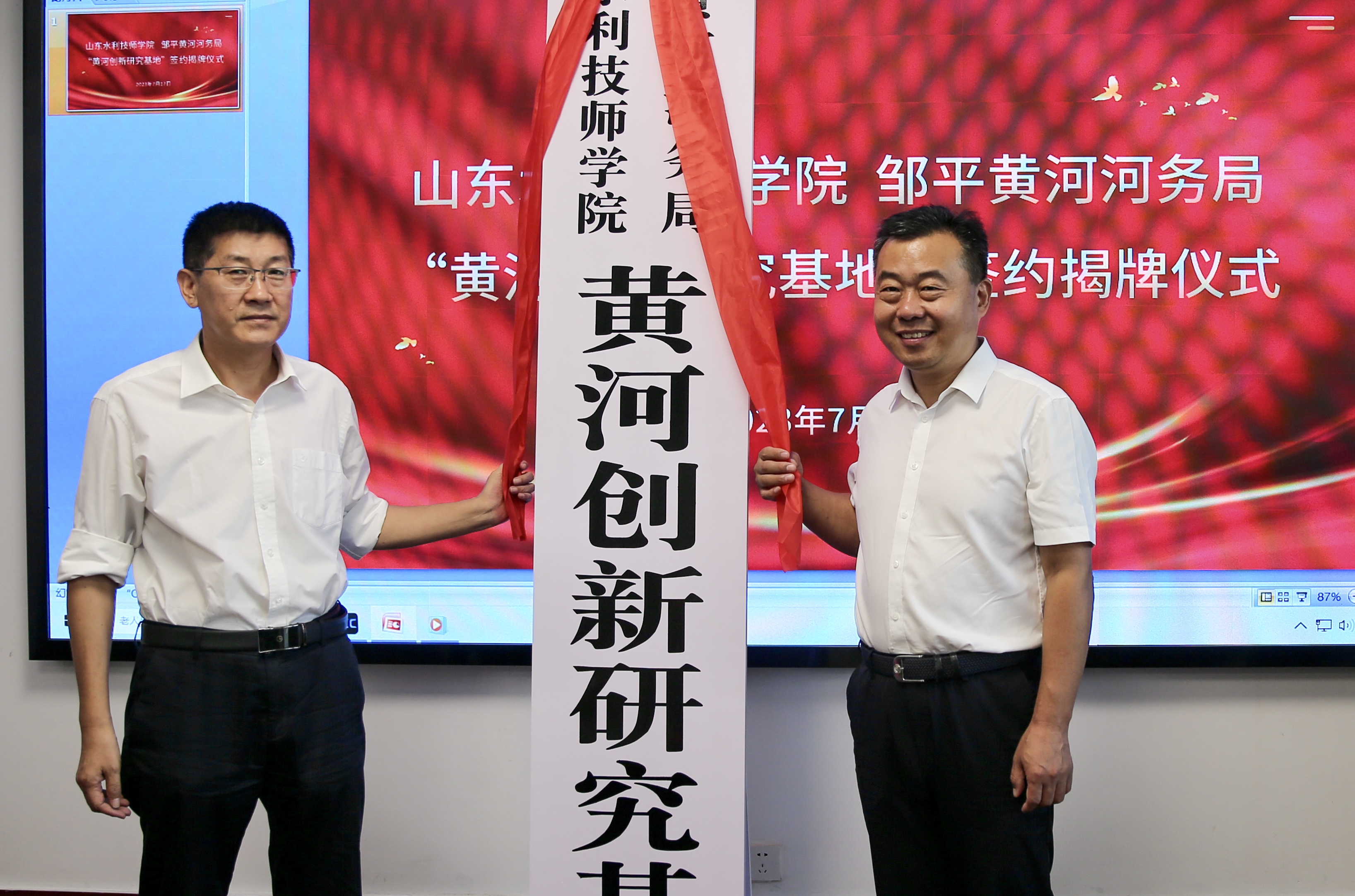 7月17日,山东水利技师学院与邹平黄河河务局联合成立“黄河创新研究基地”揭牌仪式,在邹平县黄河河务局码头管理段举办。学院院长边敦典、滨州黄河河务局副局长赵学金、邹平黄河河务局局长赵超博出席揭牌仪式。