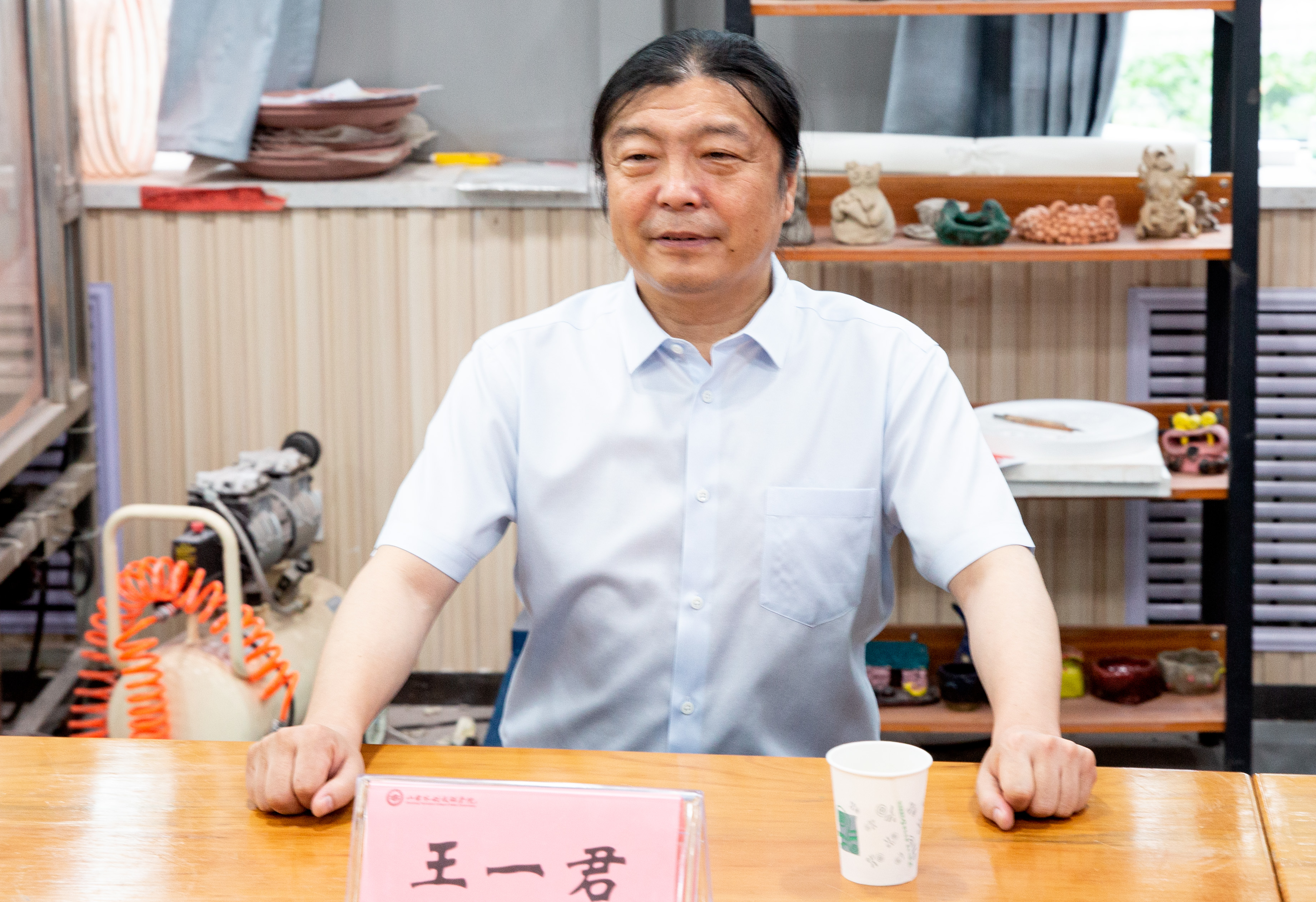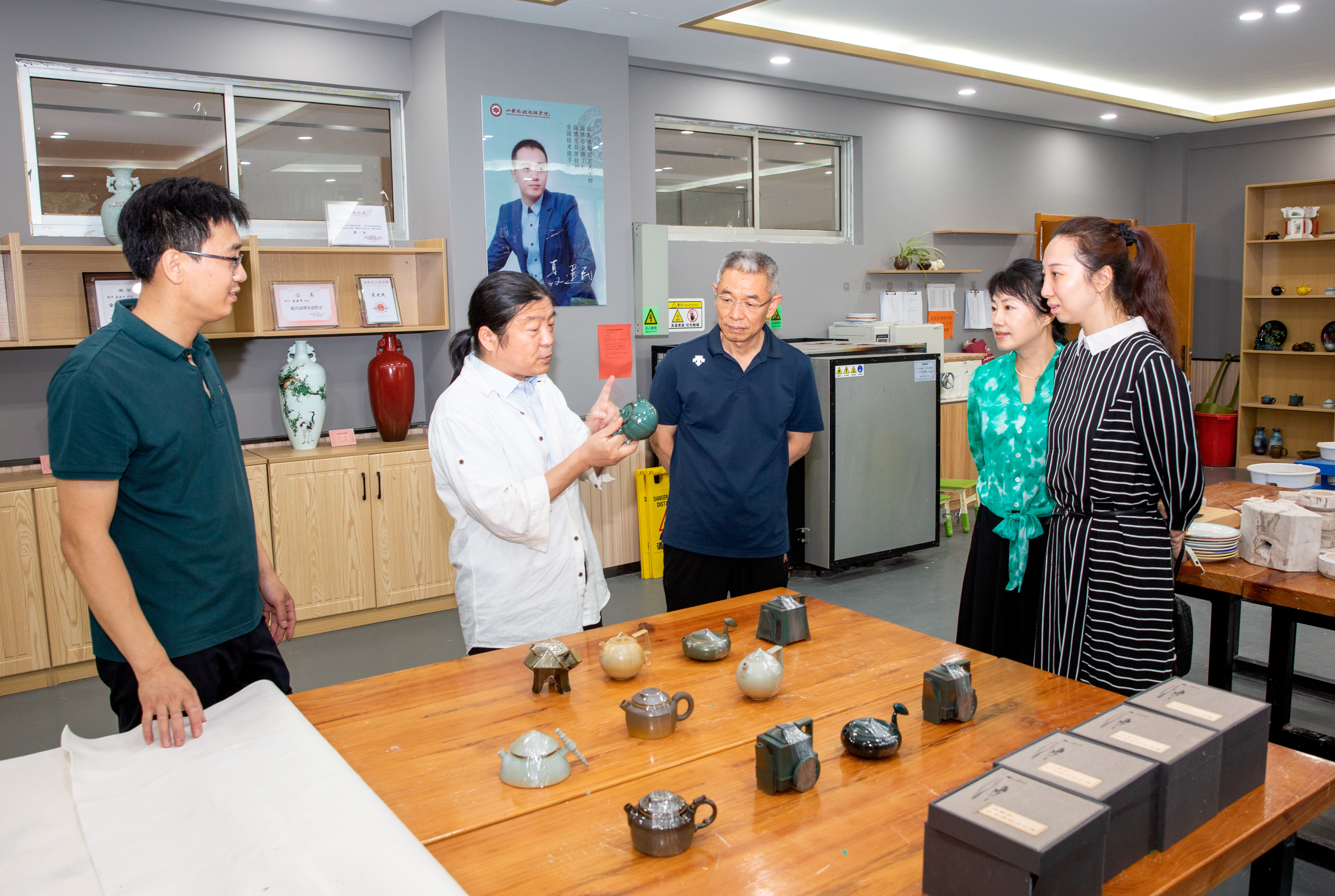 近日,全国人大代表、国务院政府特殊津贴专家、山东省社会组织联合会副会长、中国工艺美术大师、省级非物质文化遗产代表性项目传承人王一君大师到我院调研。学院党委书记于福春陪同王一君大师参观了陶艺室、茶艺室等非遗代表性项目,并与美育教研室部分教师进行了座谈。