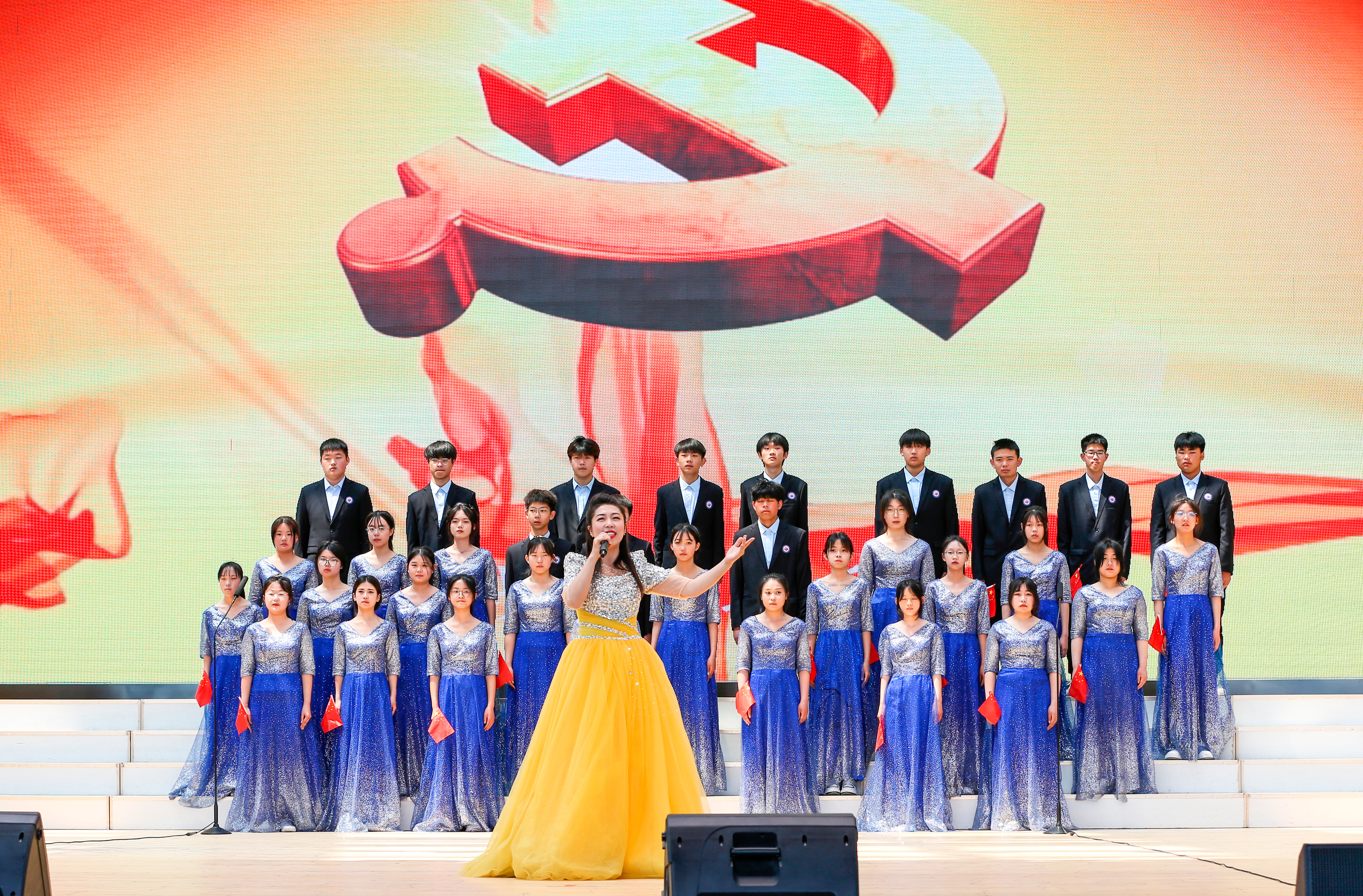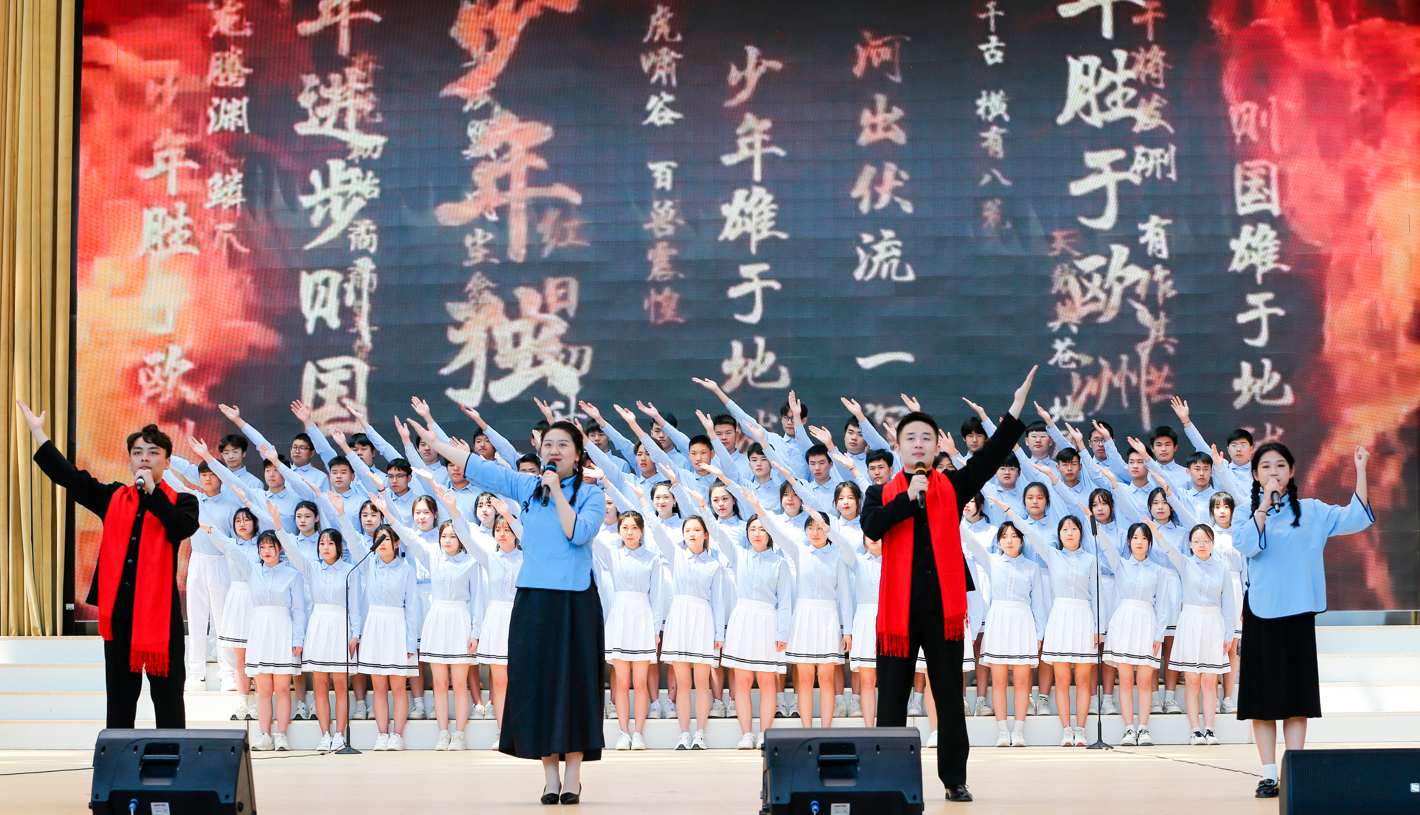 在青年风采展示环节,青年代表们以振奋的精神和澎湃的激情,为大家呈现了歌伴舞《年轻的朋友来相会》、群体朗诵《少年中国说》、歌曲联唱《最可爱的人》、合唱《旗帜颂》等精彩纷呈的文艺节目,展示了“学习新思想·建功新时代”的青春风采。