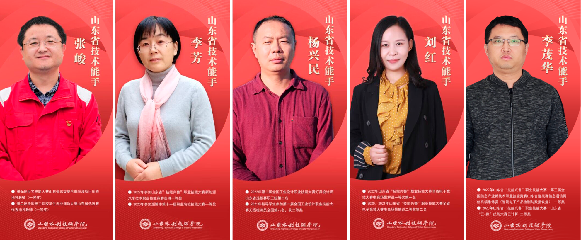 近日,山东省人力资源和社会保障厅发布《关于公布2022年度“山东省技术能手”名单的通知》,山东水利技师学院杨兴民、李芳、张峻、刘红、李茂华5名教师被授予“山东省技术能手”荣誉称号。至此,学院共有23名师生获得此荣誉。