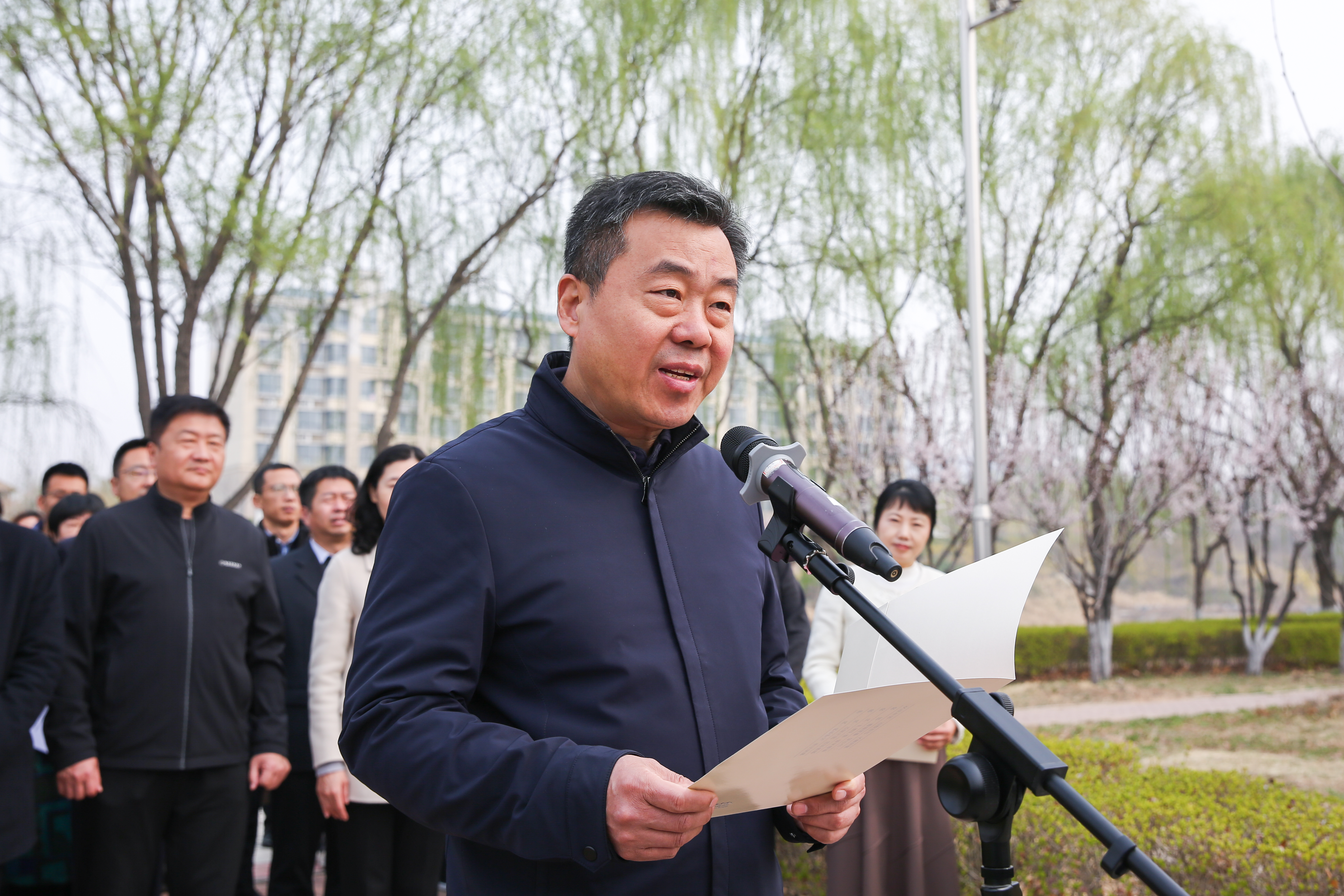 边敦典指出,近年来,学院坚决贯彻落实习近平总书记在黄河流域生态保护和高质量发展座谈会上的重要讲话精神,认真学习研究省委省政府《山东省黄河流域生态保护和高质量发展规划》等文件,制定学院《服务黄河流域生态保护和高质量发展行动方案》,以新时代水利精神为遵循,以“世界水日”“中国水周”活动为依托,以承办省水利系统技能大赛、实施《亲水利护环境 明责任立志向》研学课程、组织学生到省水利系统企事业单位认识实习为路径,以萌源河、《水润》《大禹》雕塑、《水院赋》刻石等为载体,以打造“智慧水利技术特色专业群”为目标,以“3改”“3建”节水措施赋能创新,大力弘扬大禹精神,赓续传承水利文化,着力提升环境育人力度,持续为推动黄河流域生态保护和高质量发展贡献水院力量。