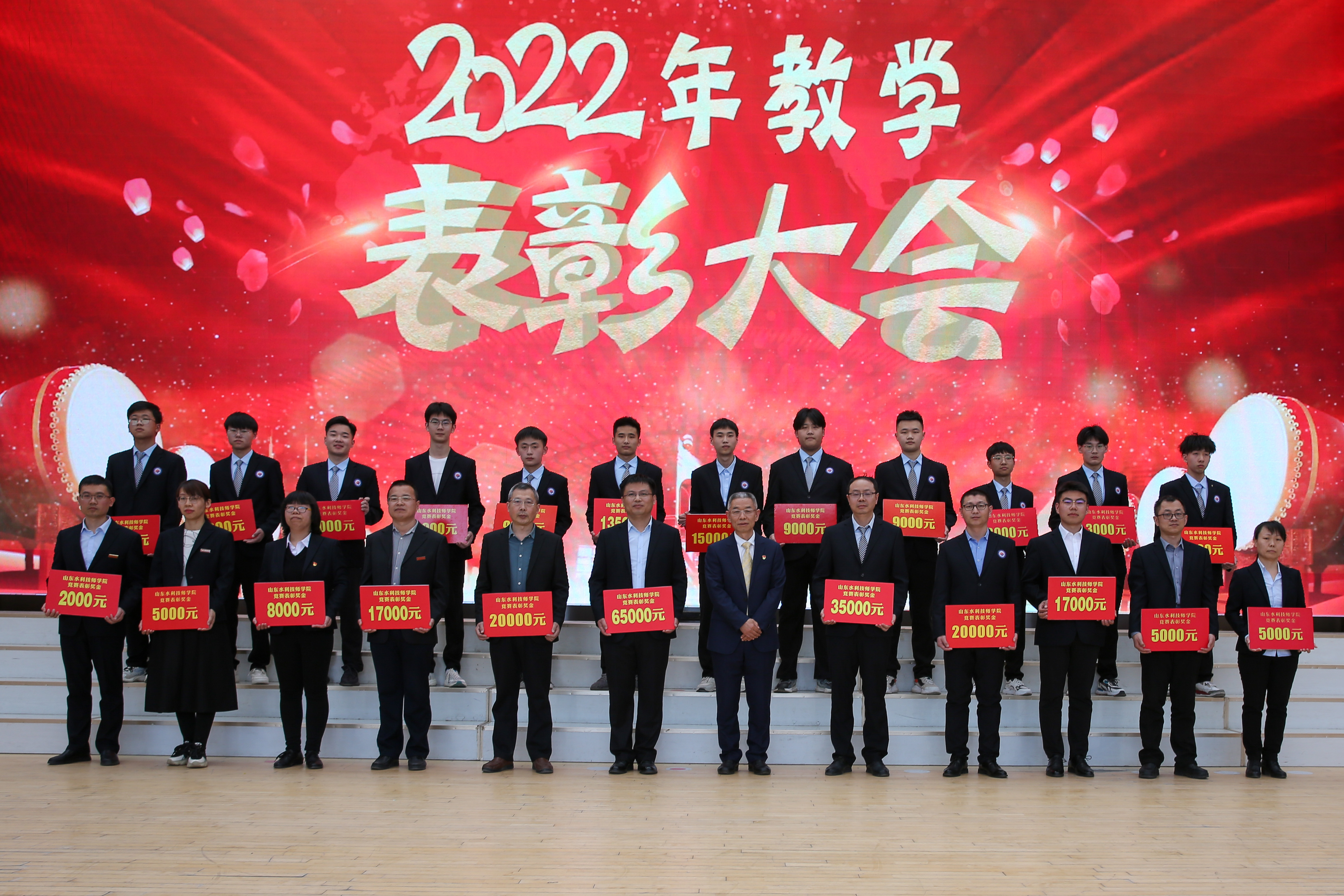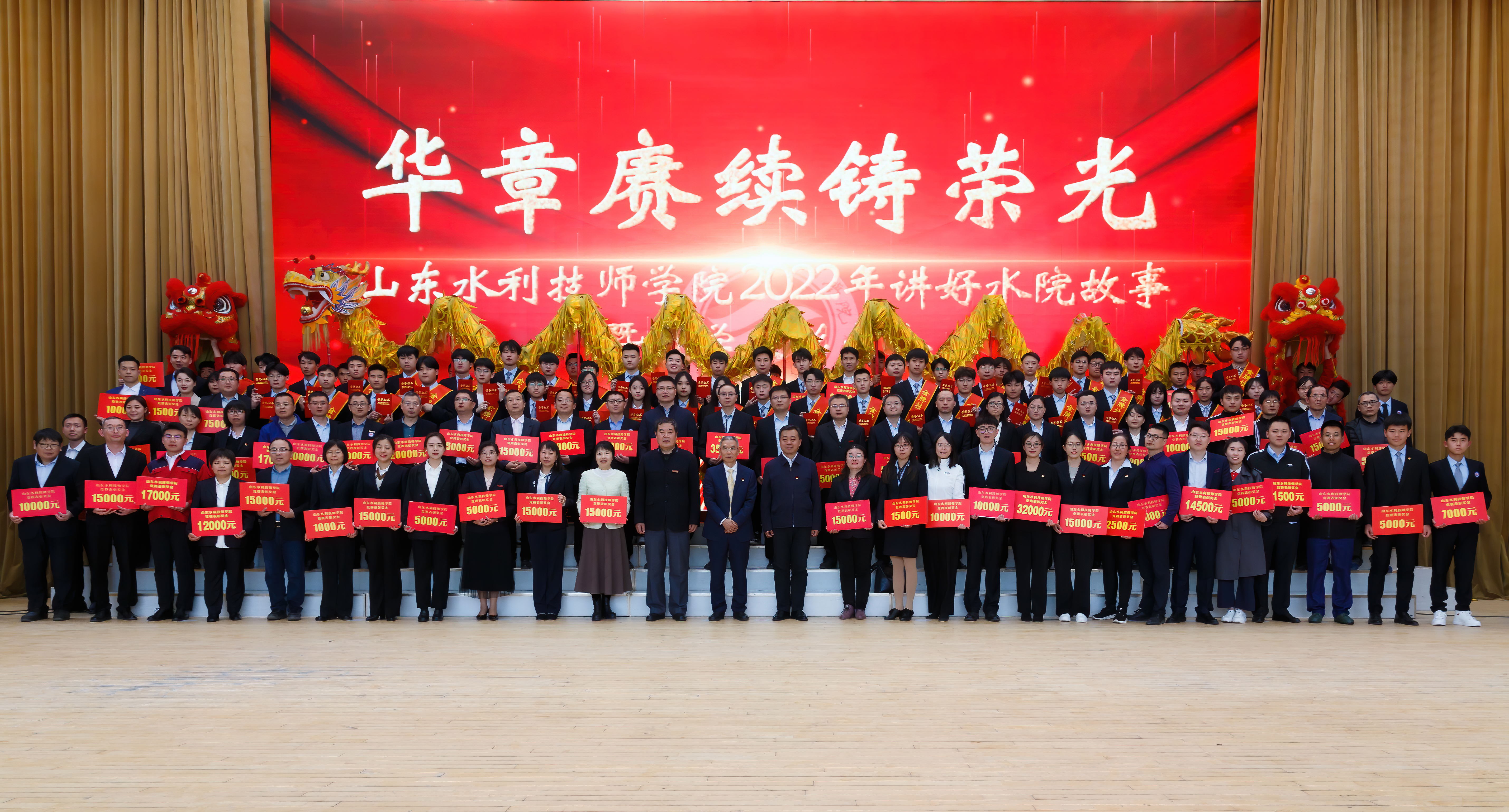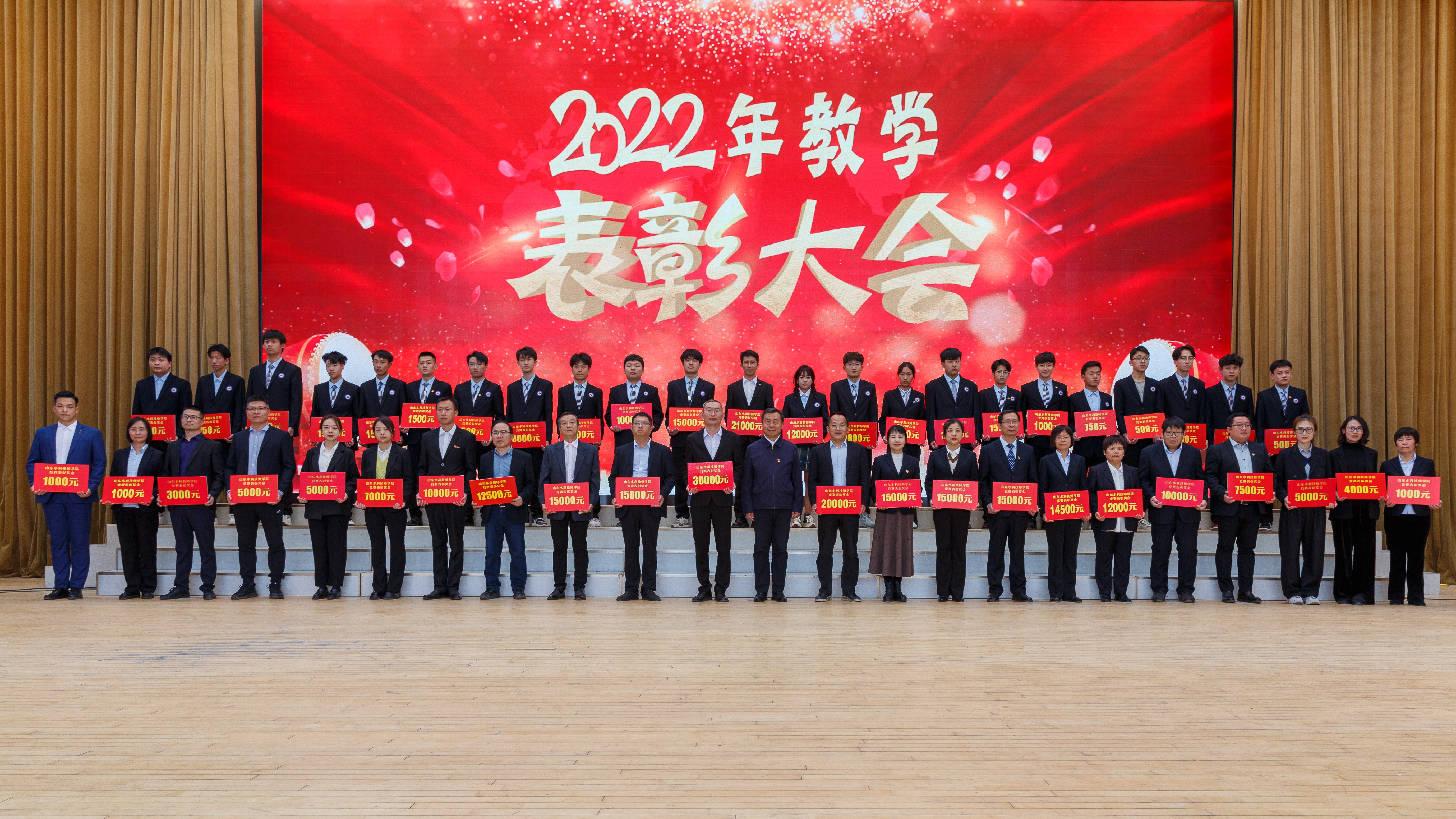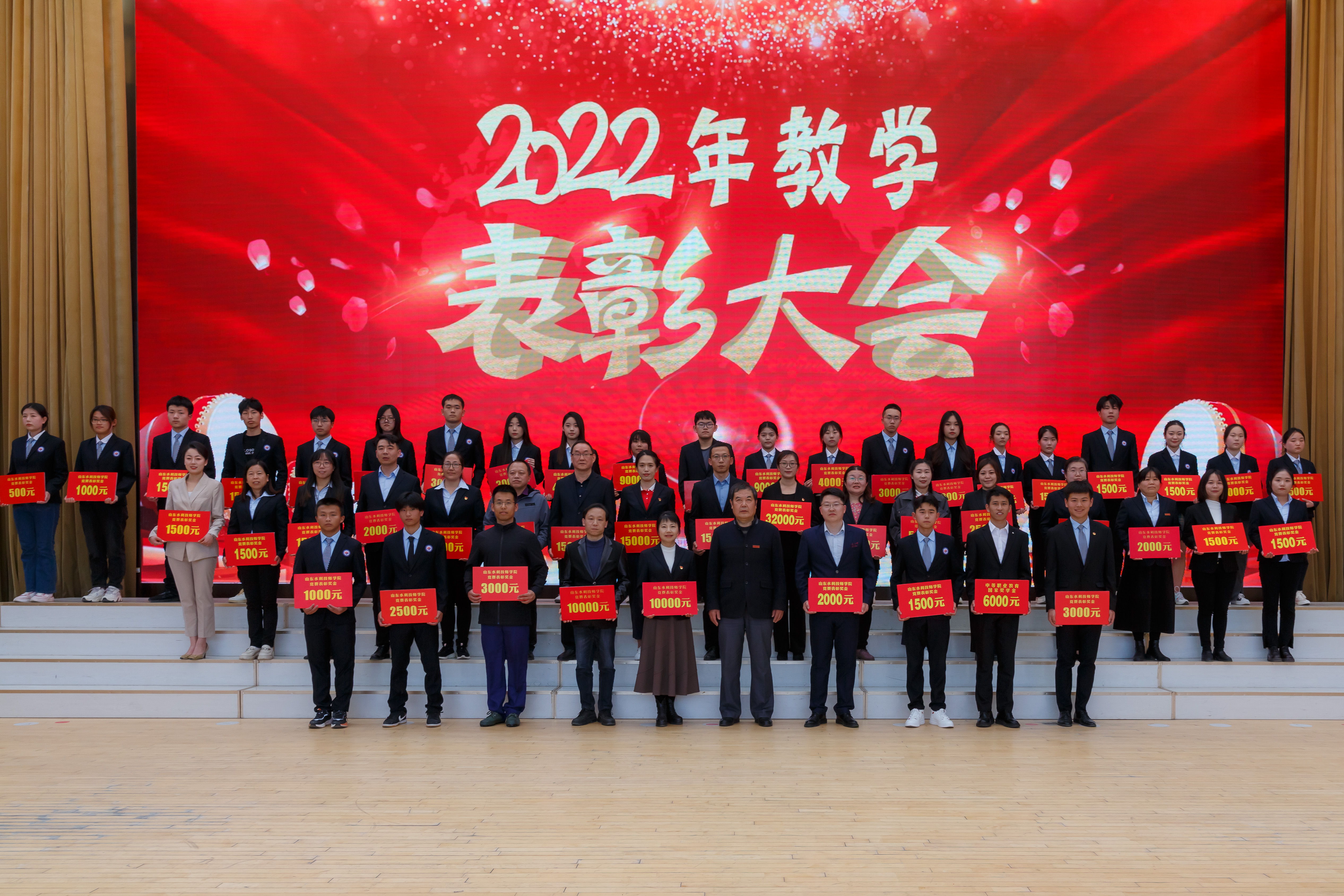 3月29日,山东水利技师学院大学生活动中心。在学院党委书记于福春铿锵激昂饱含深情的致辞声中,以“华章赓续铸荣光”为主题的学院讲好“水院故事”暨2022年教学表彰大会拉开大幕,全体教职工和学生代表齐聚一堂,同上一节思政大课。