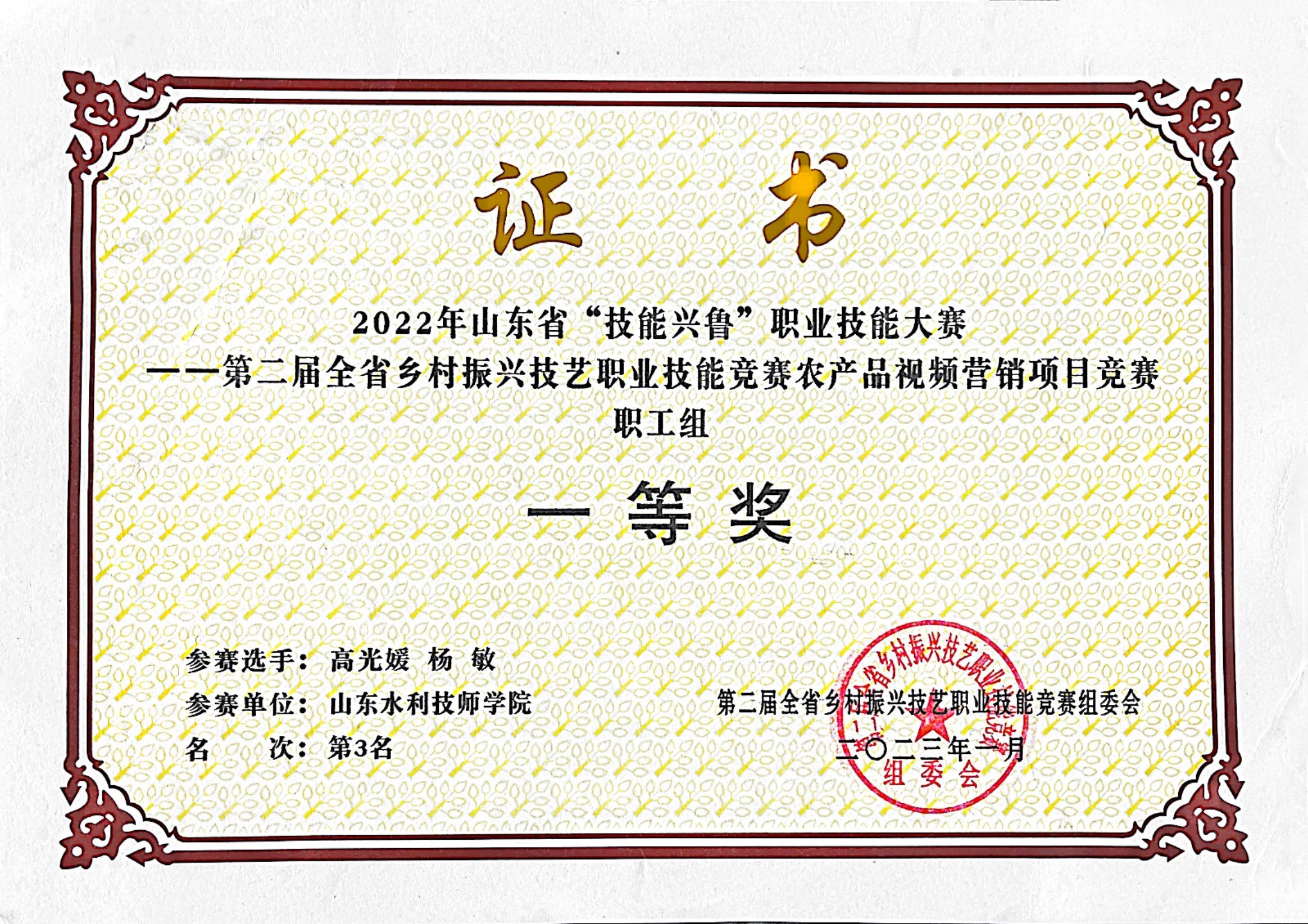 省一类大赛一等奖!近日,山东省“技能兴鲁”第二届全省乡村振兴技艺职业技能竞赛“农产品视频营销项目”获奖名单公布,山东水利技师学院教师高光媛和杨敏获得如上佳绩。