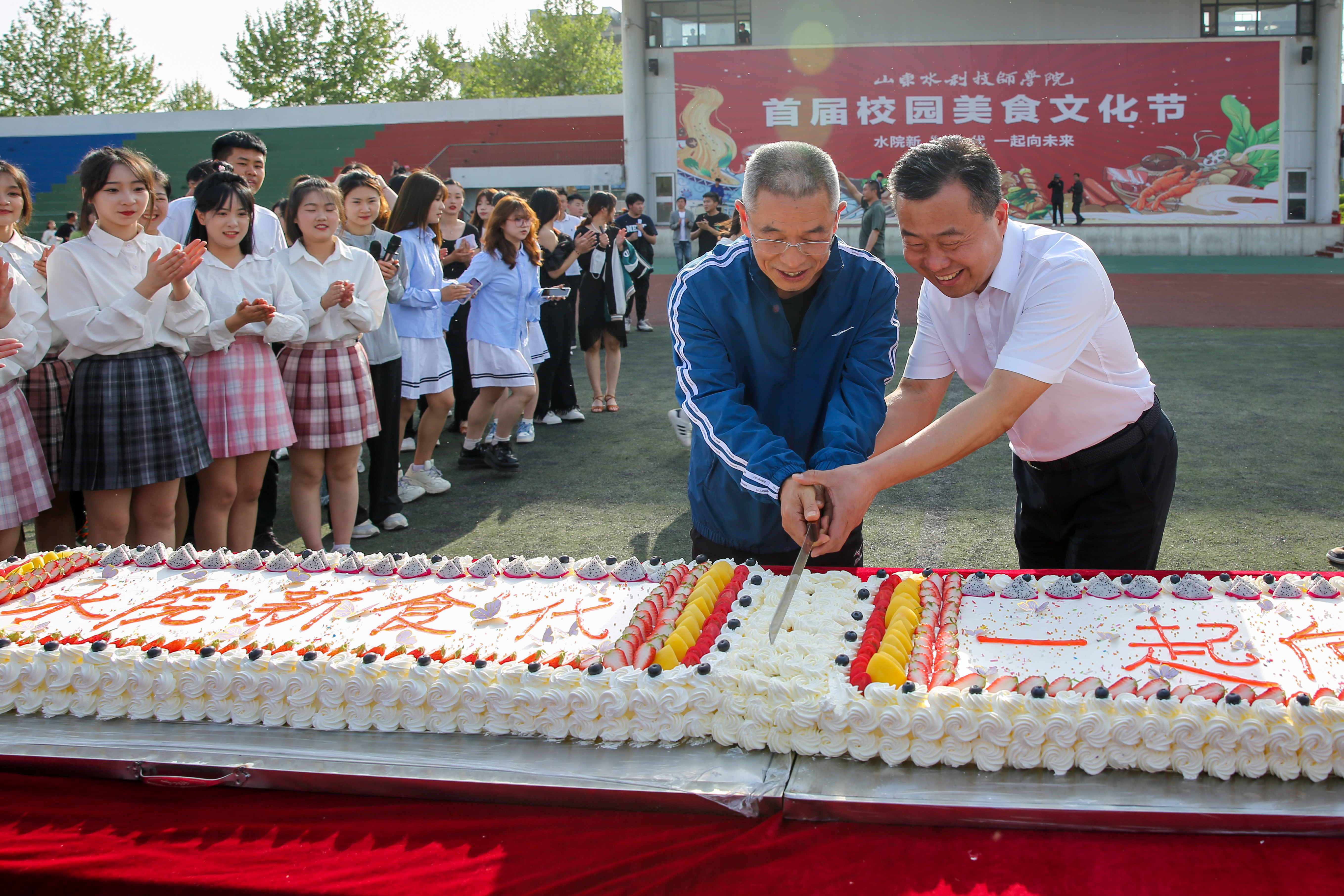 此次美食文化节的开幕形式别致且温馨,由甜美的味道——蛋糕开启。学院田径场上,党委书记于福春、院长边敦典在学生们的簇拥中出场,携手将镶嵌着活动主题,象征美好祝愿的订制大蛋糕分发给学生们,共享这份独有的水院甜蜜。