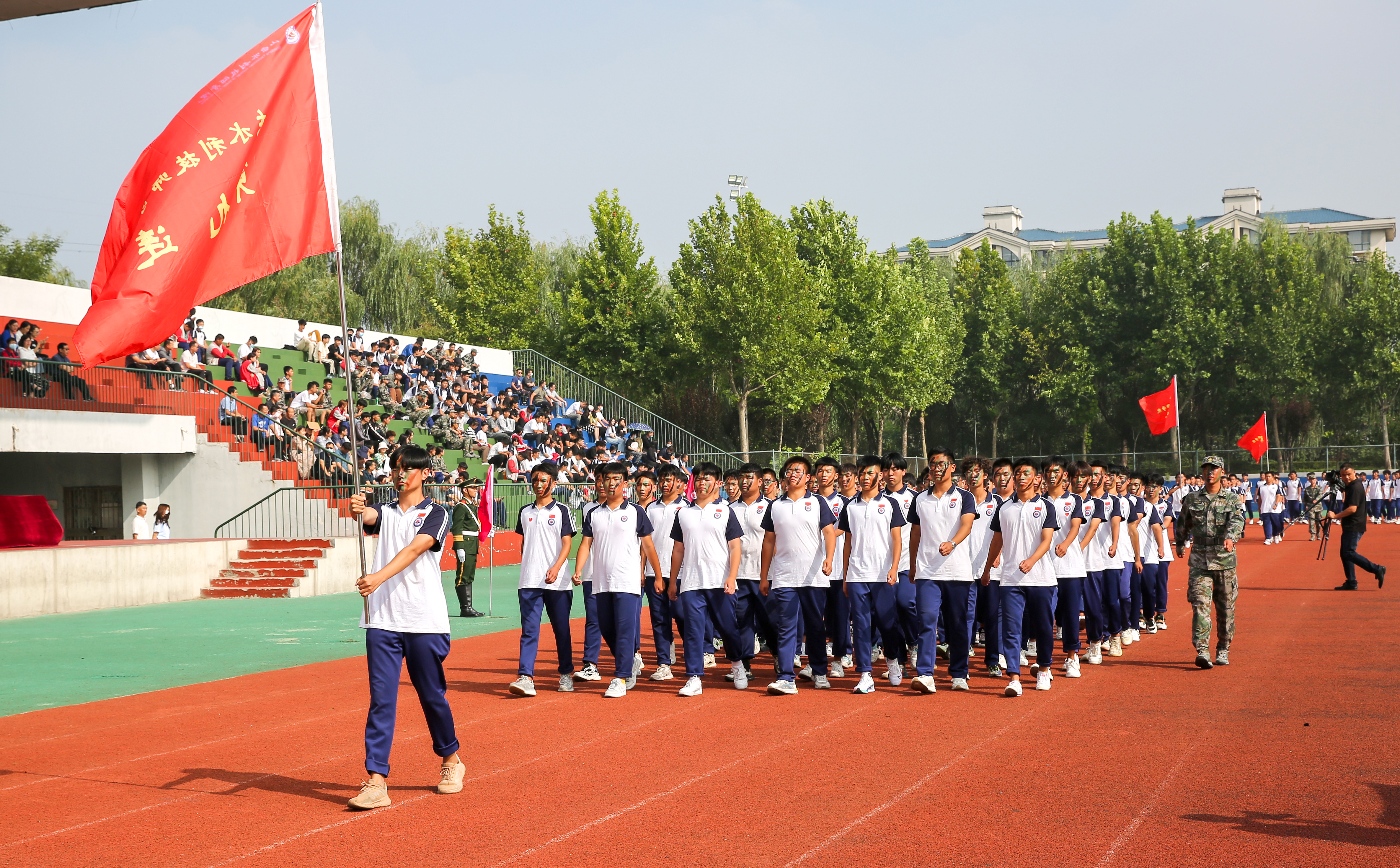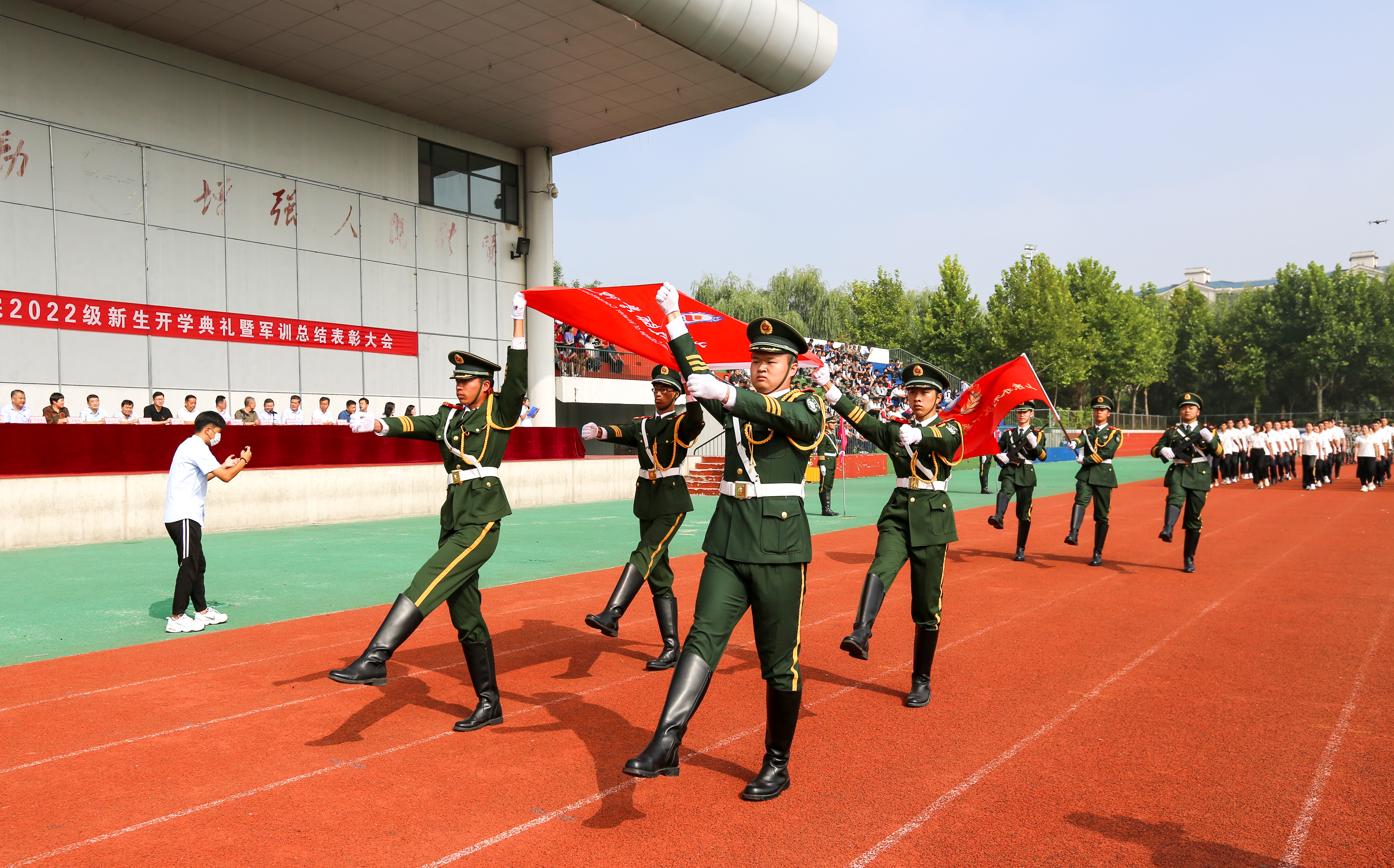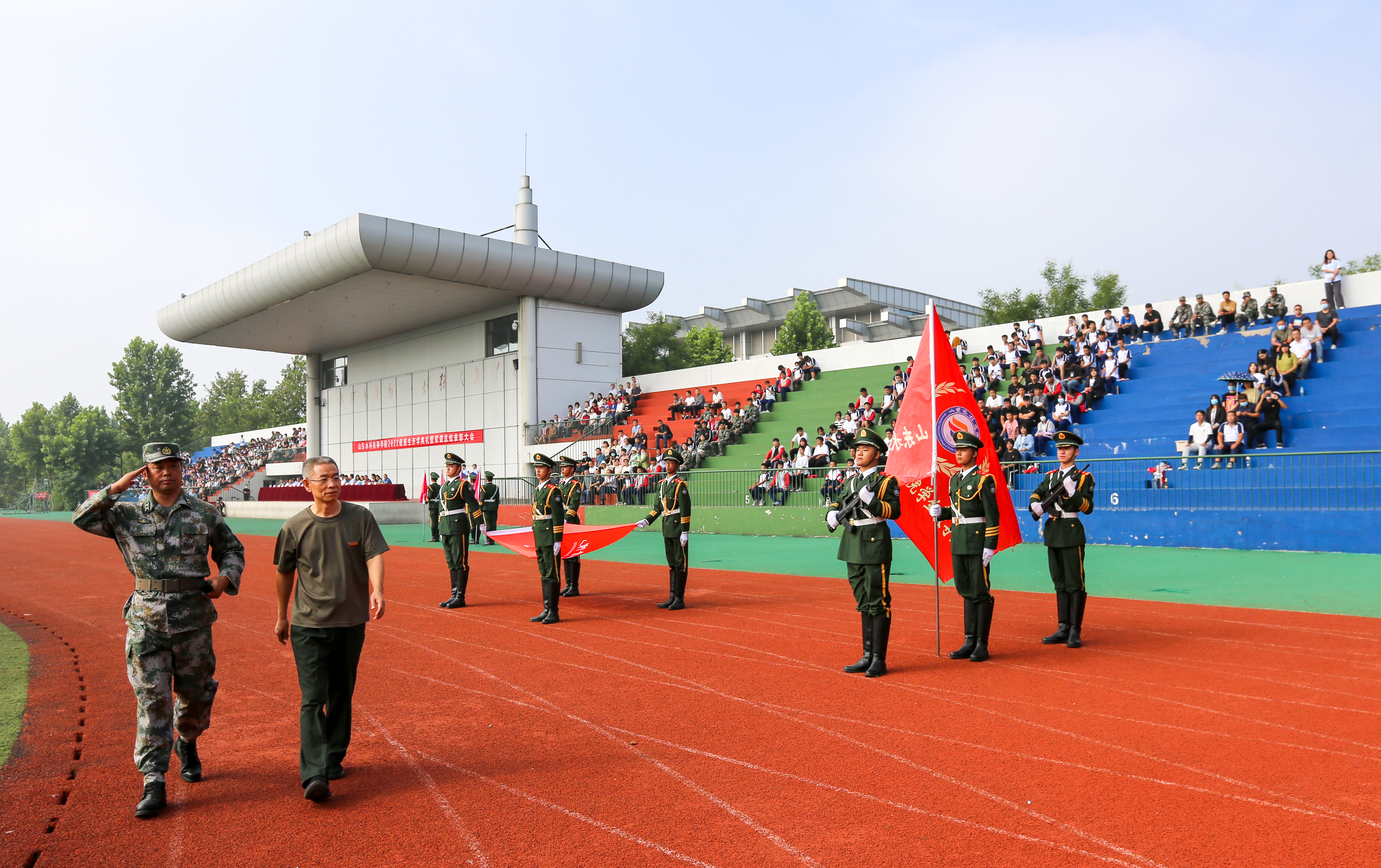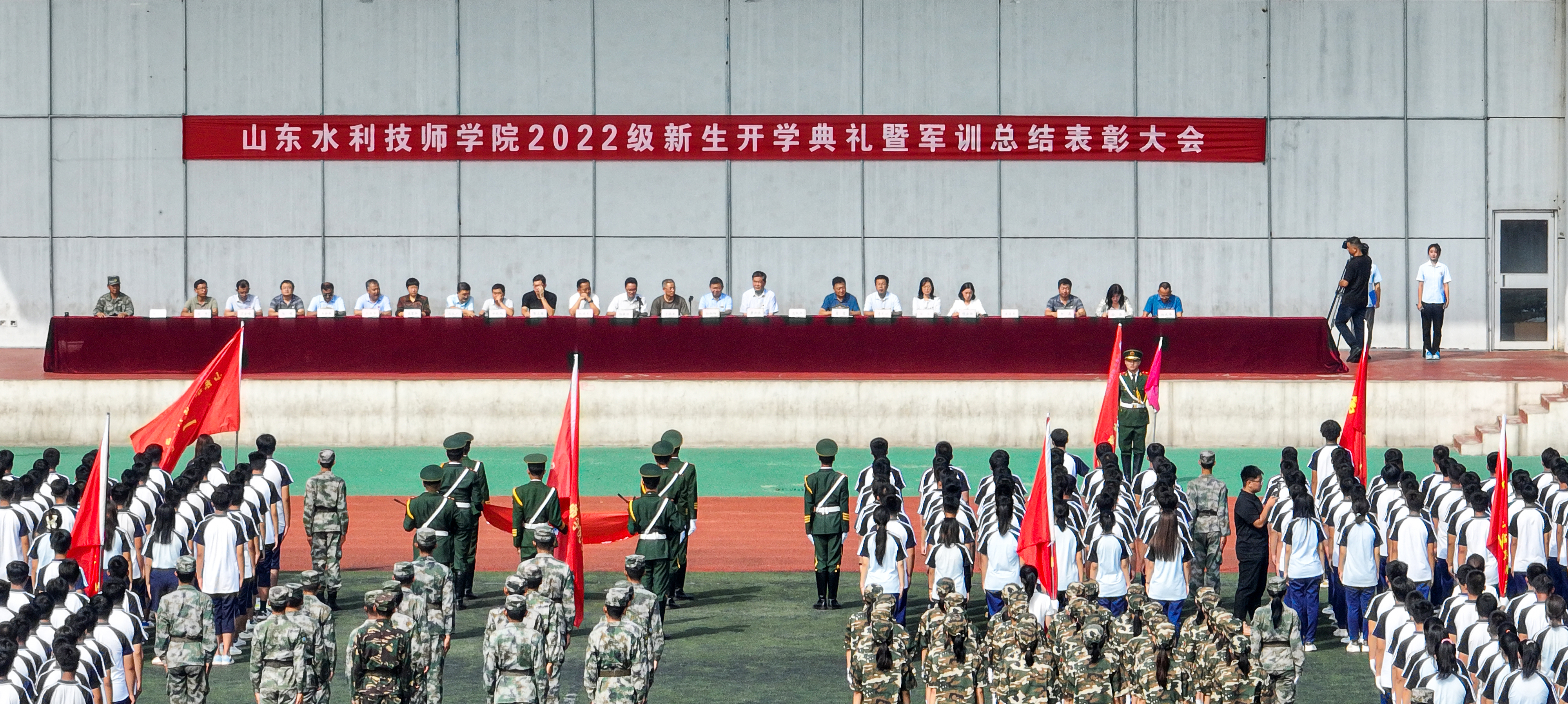 9月2日,云白风清,秋高气爽。萦绕于山东水利技师学院上空的激昴励志的军歌,伫立于田径场的齐整英挺的方队,让这个美好的秋日平添几许庄重与喜庆——学院2022级新生开学典礼暨军训总结表彰大会如期举办。