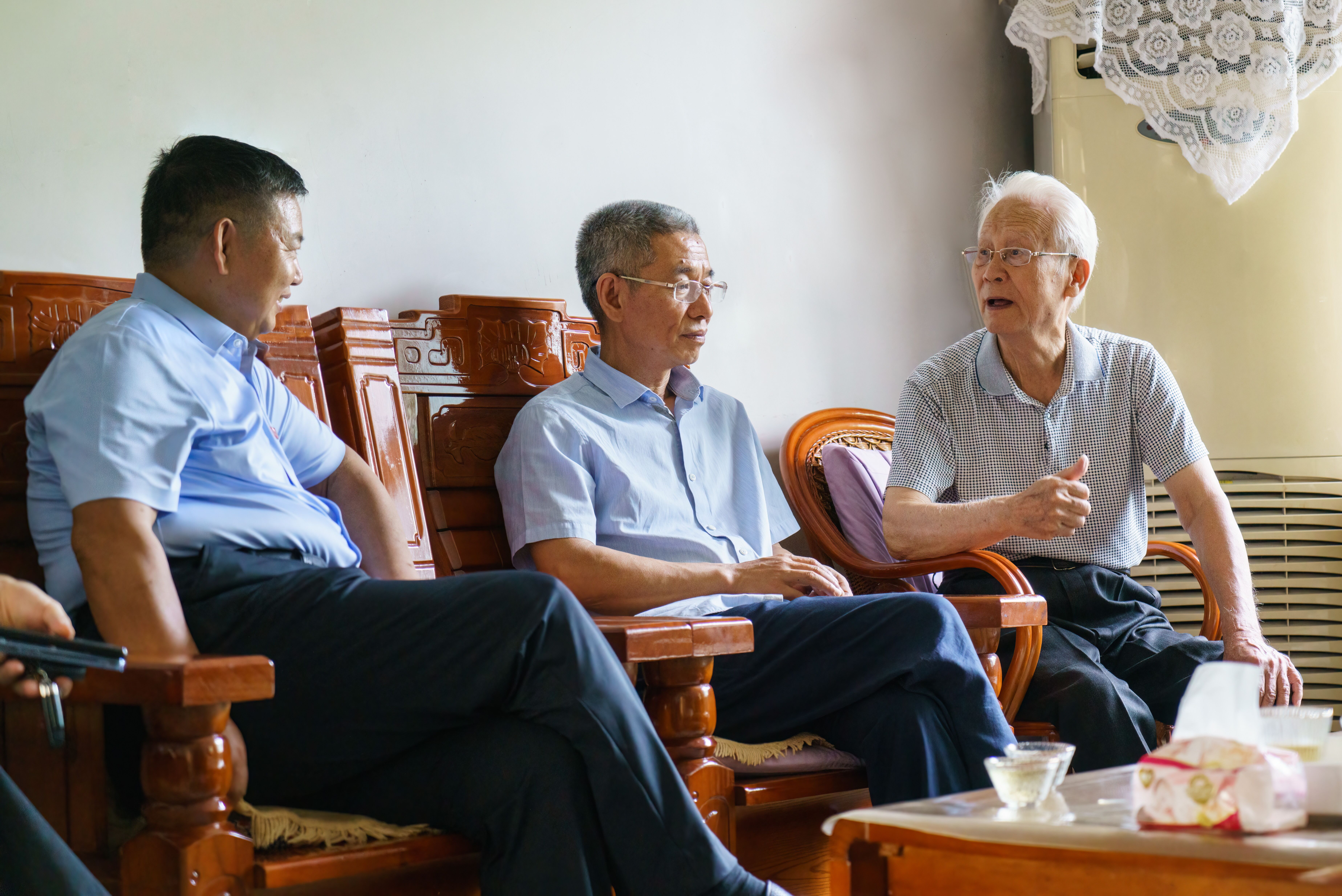 学院党委书记于福春、院长孙桐传先后看望了离退休老干部徐传清、卜光玉、赵聿才、朱康卓、王曙光、于振俊、谭甲林等,与他们亲切交谈,详细询问他们的身体和生活状况,介绍学院近来的发展状况和取得的成就,听取他们对学院工作的意见和建议,感谢他们为学院发展作出的贡献。离退休老干部对来自水院大家庭的关怀与温暖,表达了由衷的感谢,纷纷竖起大拇指盛赞学院在现任党委带领下取得的瞩目成绩,相信党委班子定会谱写学院高质量发展新篇章。