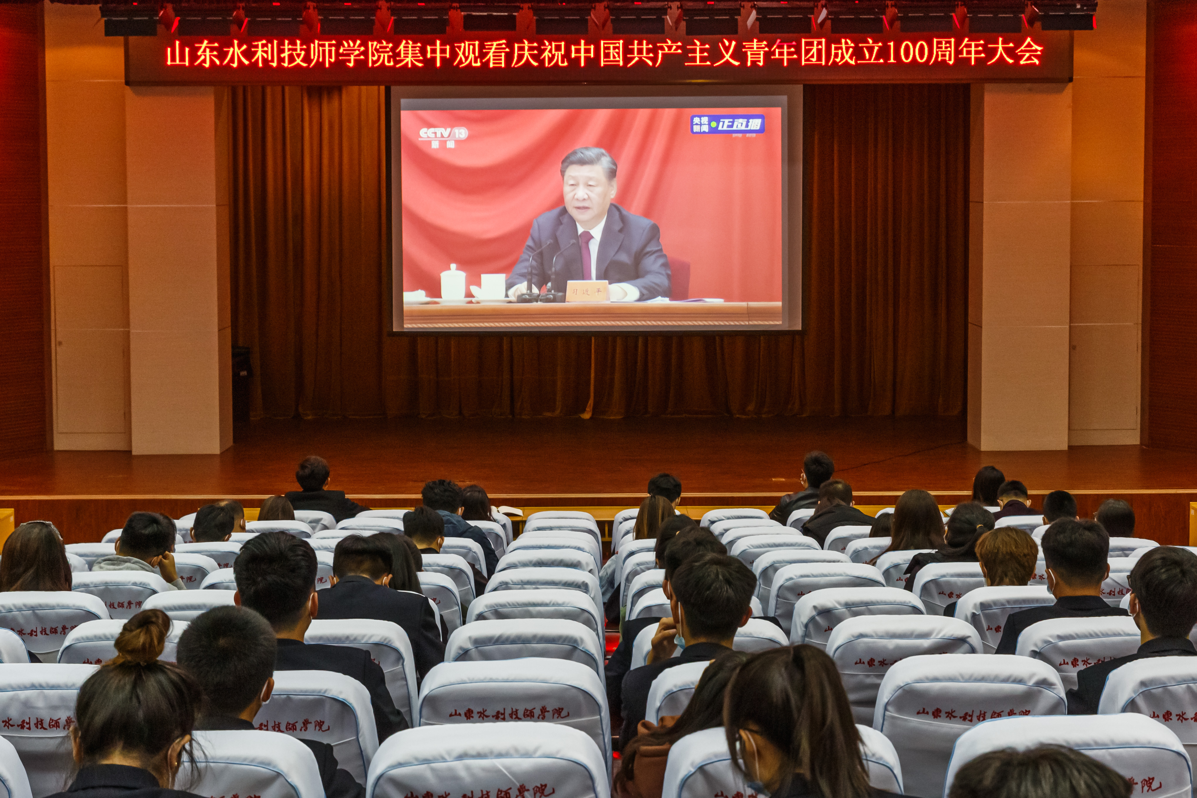 5月10日上午,庆祝中国共产主义青年团成立100周年大会在隆重举行。山东水利技师学院团委提前筹备、精心组织,学工支部青年理论学习小组、百名有为青年和部分团学干部代表,胸前统一佩戴团徽,按照常态化疫情防控要求,齐聚学院学术报告厅,满怀激情地认真收看直播盛况。对习近平总书记讲话中的重要论述和一个个直抵灵魂的金句,多次会心地发出热烈掌声。会后,师生们群情振奋,围绕习近平总书记重要讲话精神,分组展开热烈研讨。