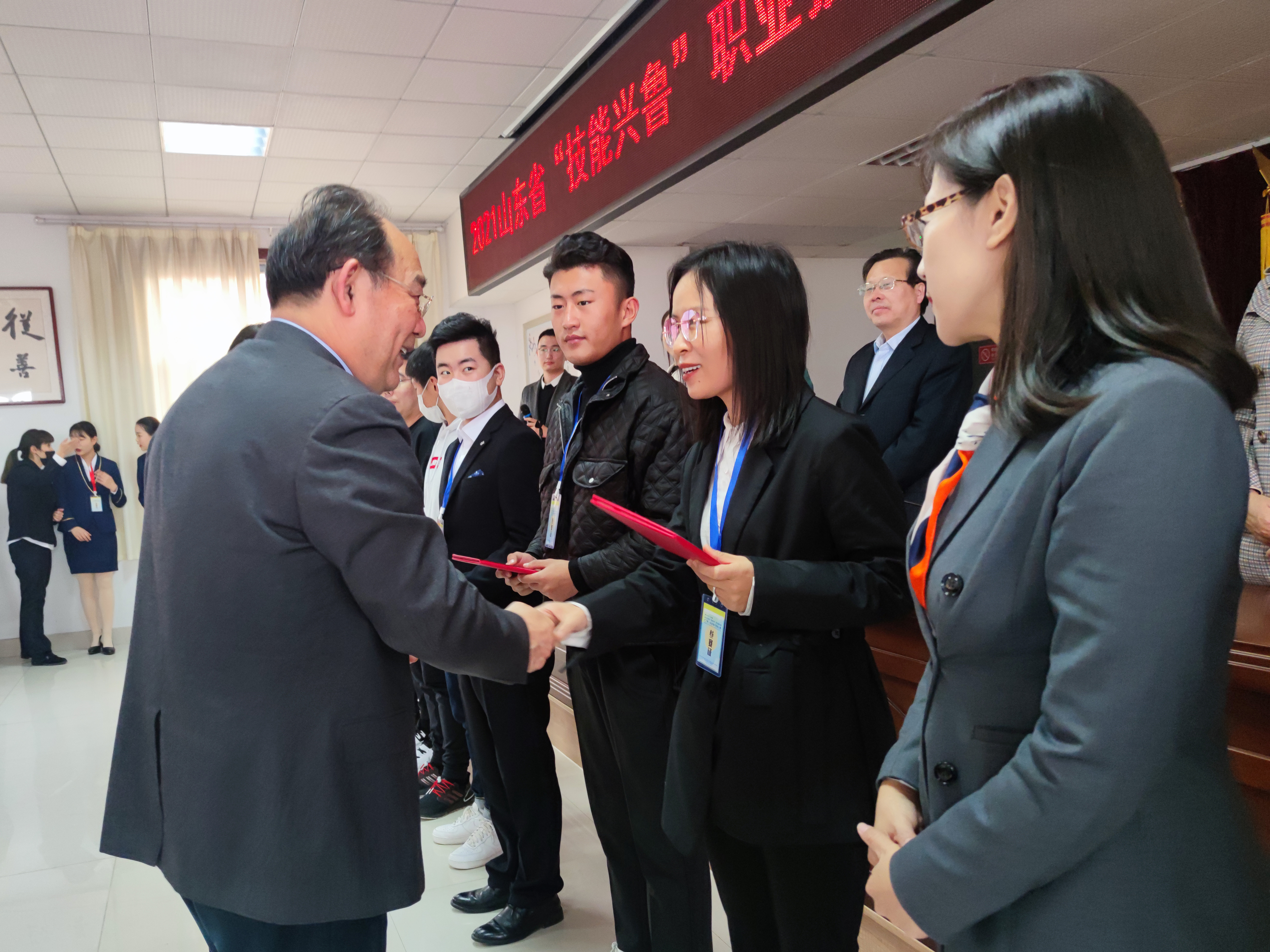 学院师生在山东省“技能兴鲁”职业技能大赛全省电子竞技大赛中取得优异成绩:学生王国旭、周虹旭分别获得电竞短视频制作学生组一、二等奖,王晨、刘宇博获得电竞解说学生组二等奖,刘丽丽、周姿茵获得平面设计学生组二等奖,任茜瑜获得平面设计学生组三等奖,赵学才获得手速测试学生组二等奖,段卫斌获得赛事策划学生组三等奖;教师刘红获得电竞解说职工组二等奖,杨敏、李敬分别获得电竞短视频制作职工组二、三等奖。