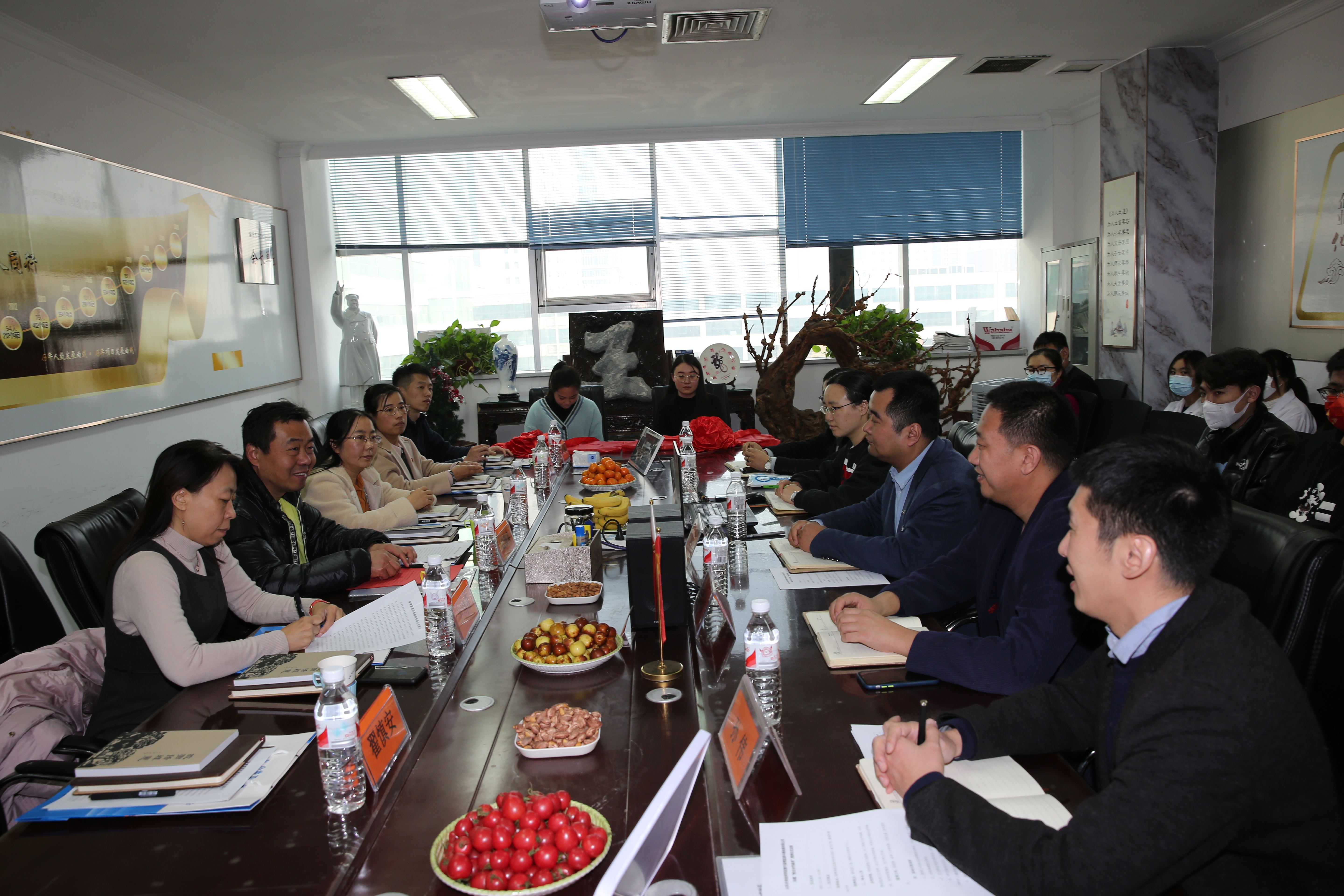 学院边敦典副院长向企业介绍了学院的发展历程、人才培养结构、校园文化理念、特色管理模式、教育教学成果,尤其是学院近几年在各级各类竞赛中取得的优异成绩,感谢企业为学生提供的实习锻炼的机会和对学生开展的专项培训,也希望企业能根据实际工作内容提炼知识和技能要求,为学院调整人才培养方案提出宝贵的意见和建议,助力学院培养更符合企业和行业需求的技术技能人才。