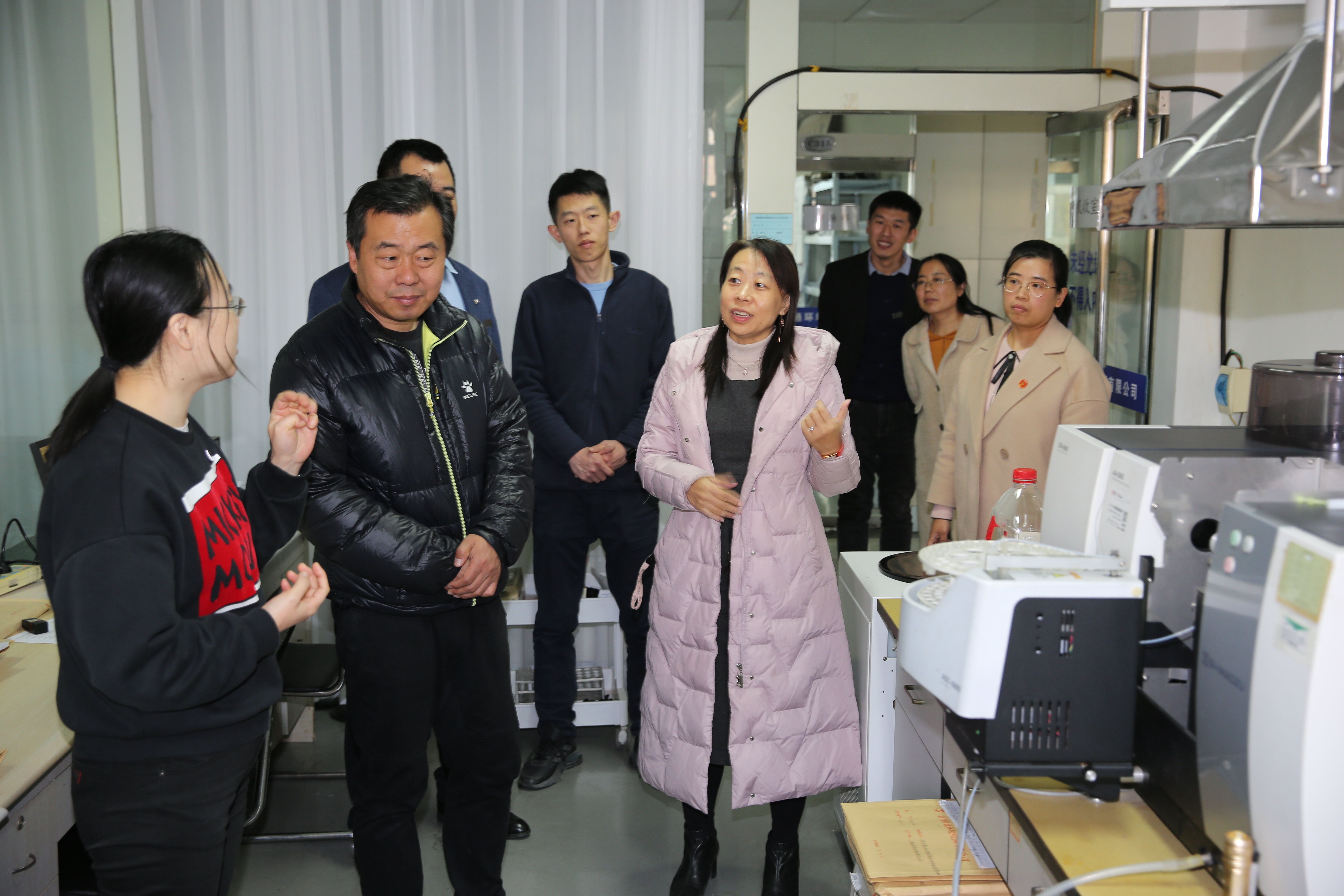 签约授牌仪式后,学院领导及老师,在企业负责人的引导下,参观了企业实验室,实地考察了学生的工作环境,探讨对学生开展的多岗位多技能轮换培训的实施方案,提出加强学生安全管理等方面的具体要求。