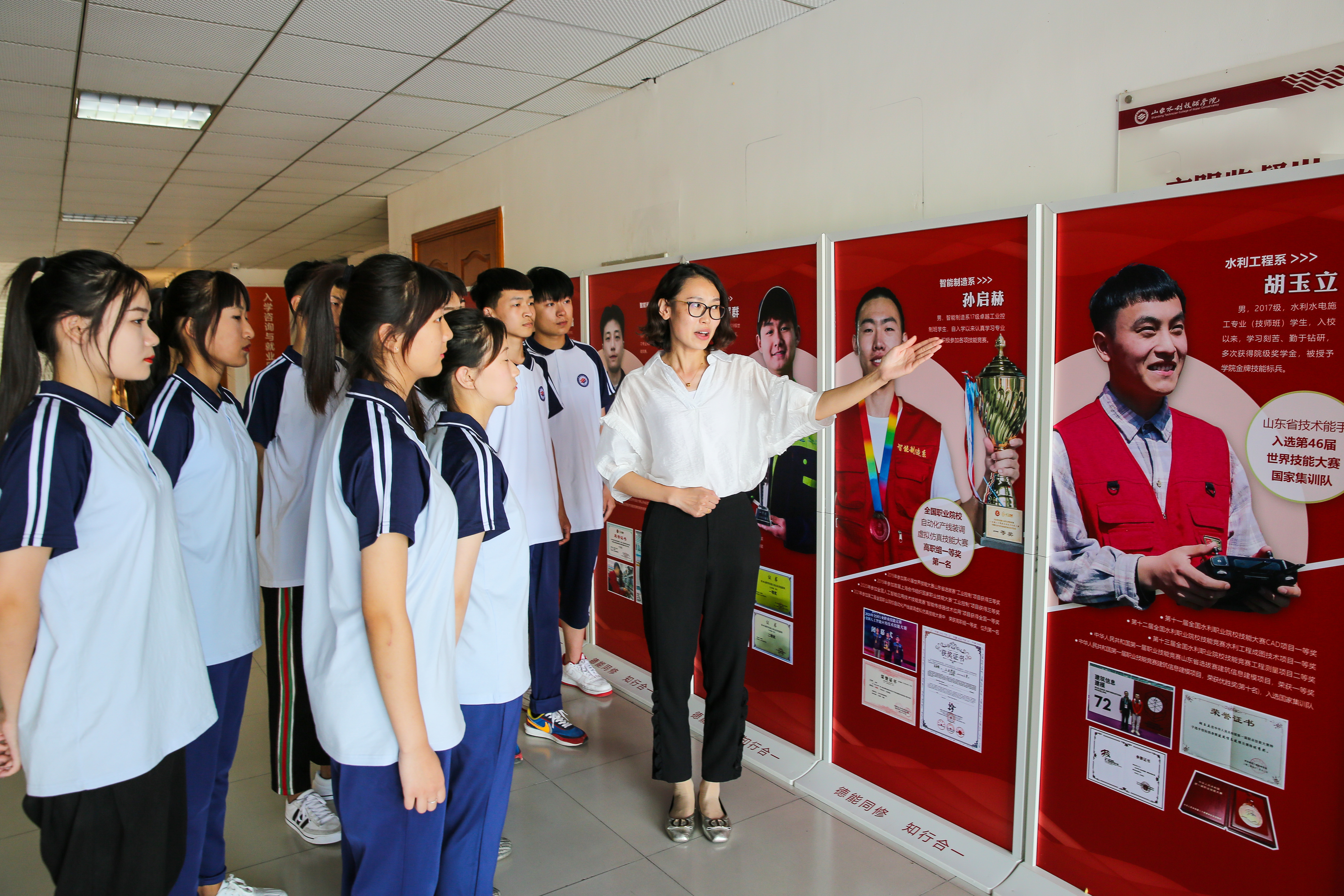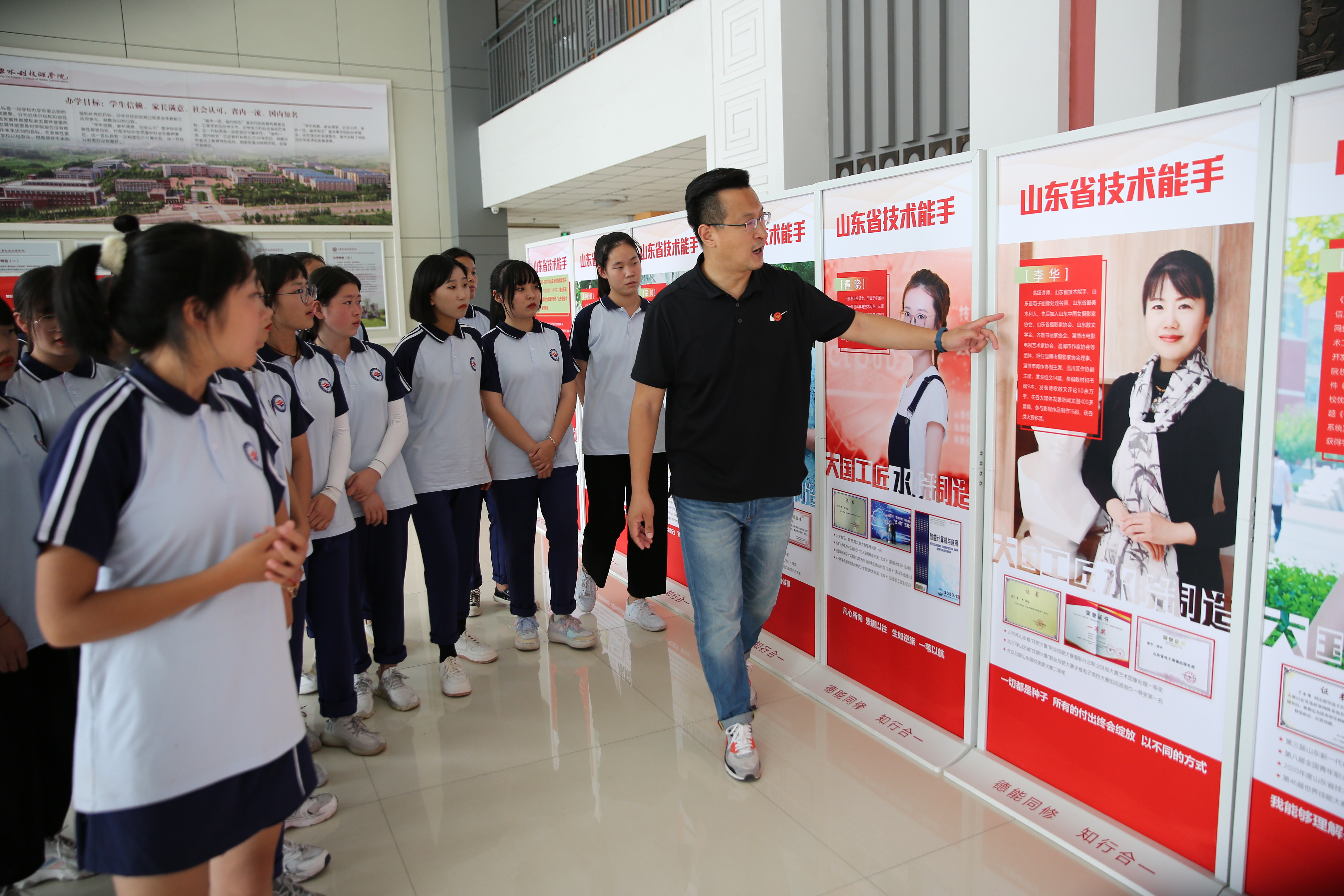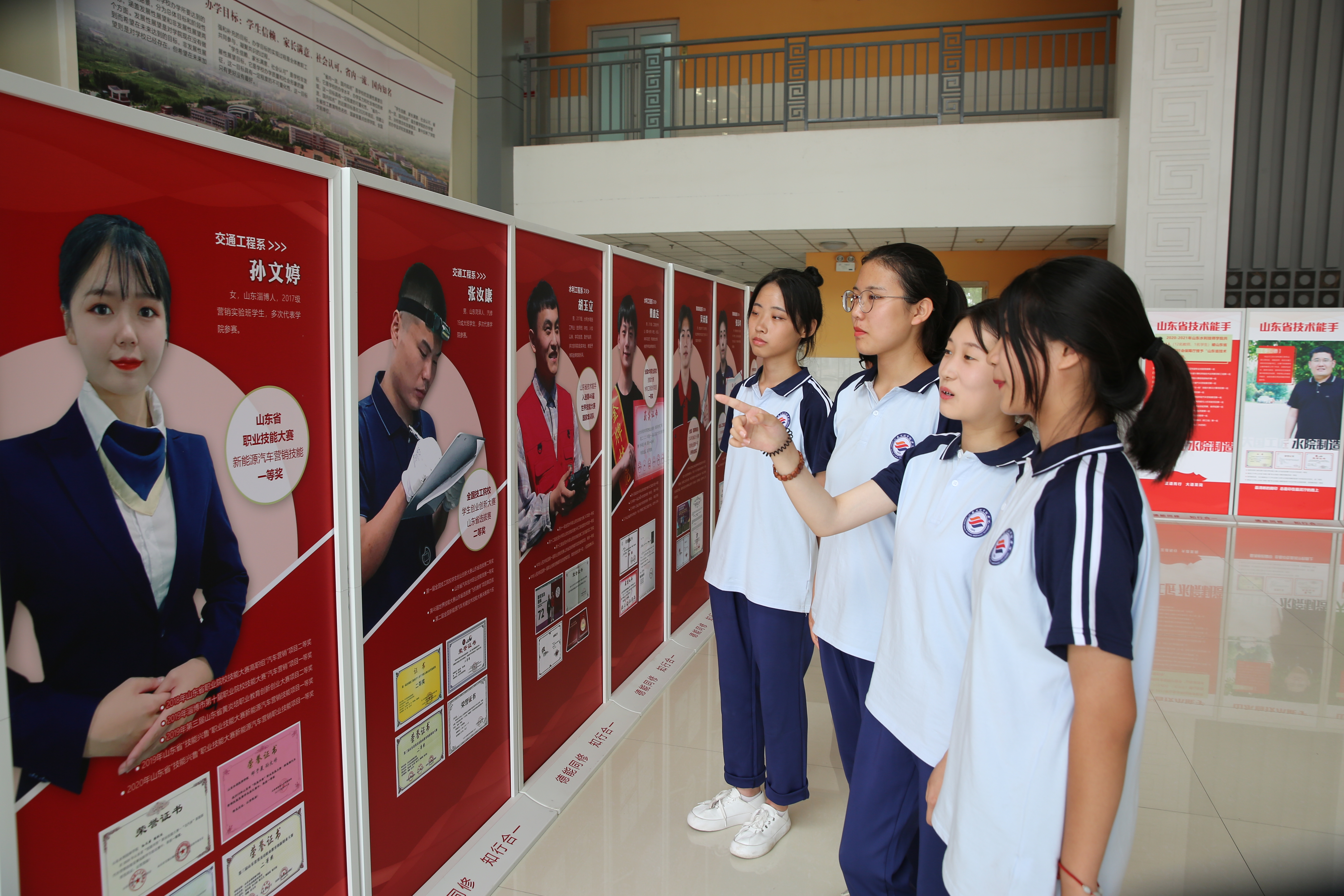 陈置于此的13块获得“山东省技术能手”的师生荣誉展板和15块学子楷模展板,吸引着2021级秋季新生驻足参观。