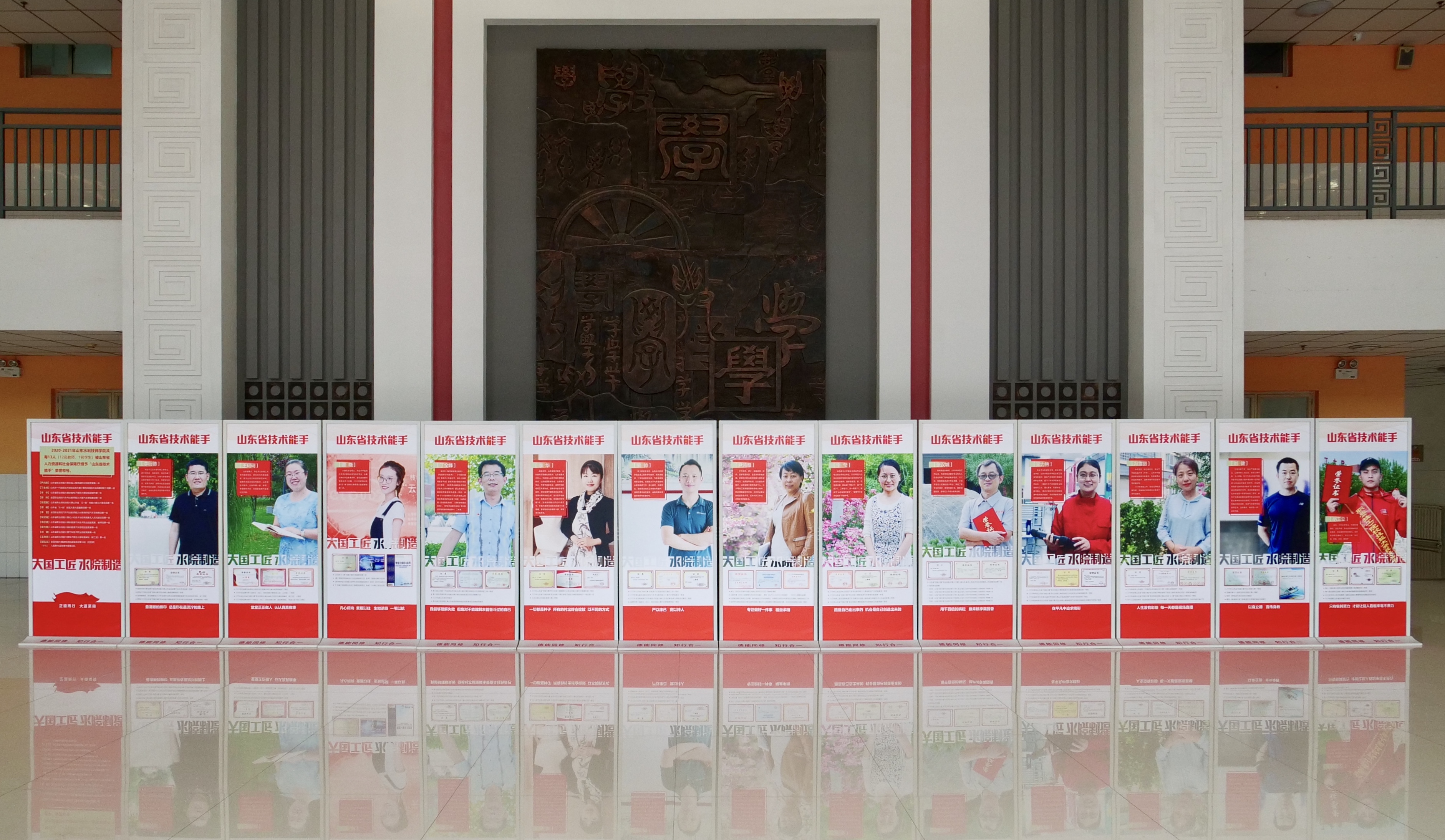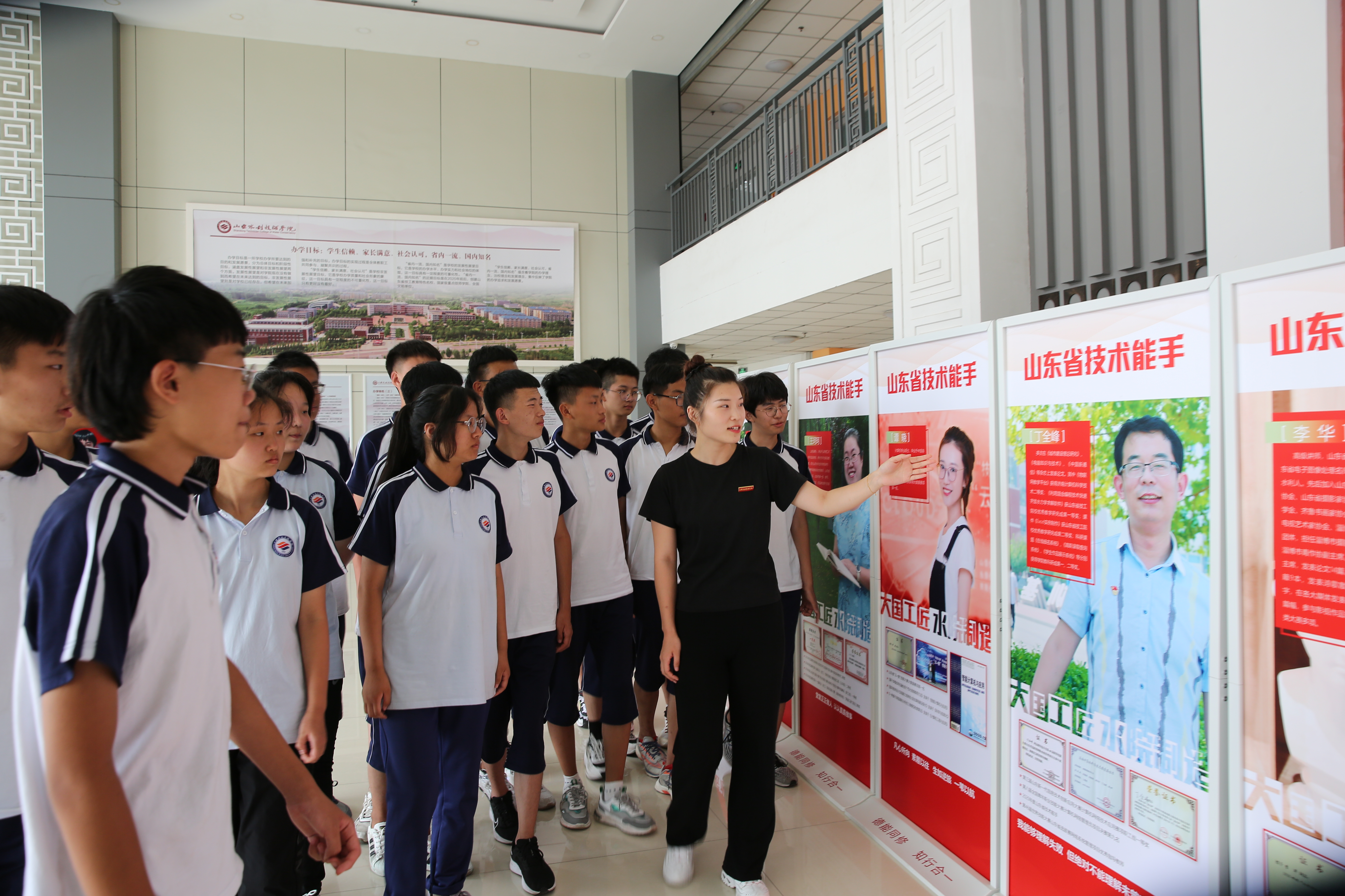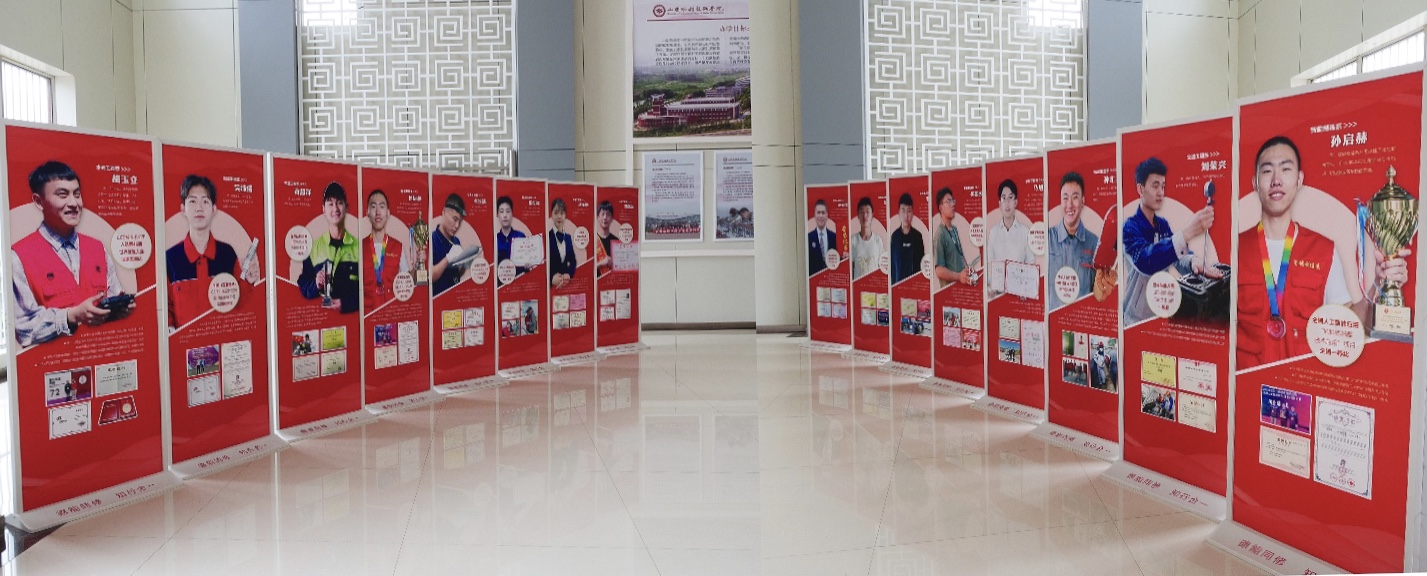 陈置于此的13块获得“山东省技术能手”的师生荣誉展板和15块学子楷模展板,吸引着2021级秋季新生驻足参观。