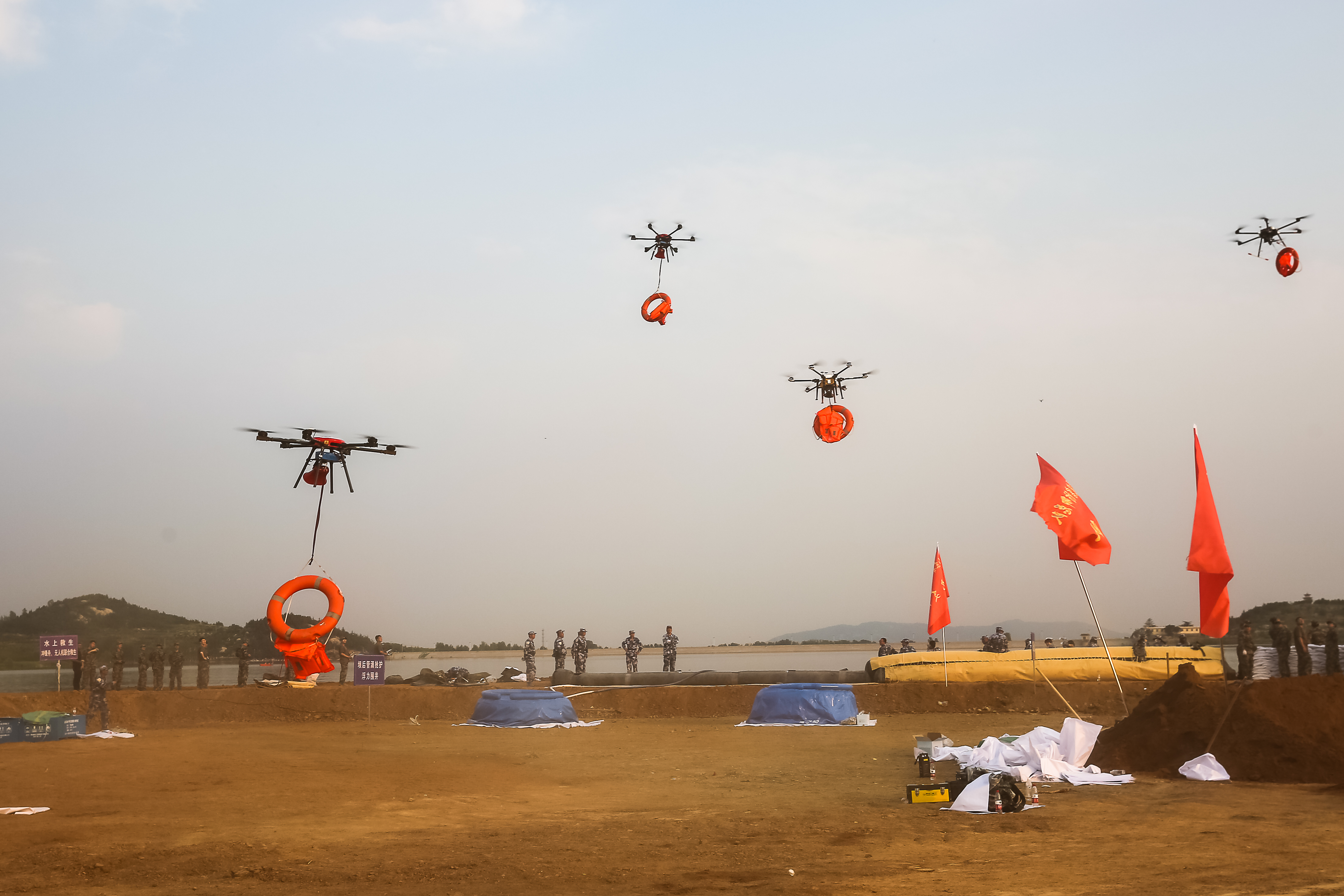 6月19日,按照山东省水利厅关于组织队伍设备参加2021年全省水旱灾害防御演练的通知要求,学院8名学生在张汉城老师带领下携带无人机7架及配套设施出发前往莫亭水库参加演练。20日早晨,参演的师生就携带设备前往现场进行训练、磨合及脚本对接等。一到现场,队员们对参演科目开展训练,二支队参演科目为科目二(山洪灾害预警、群众转移)和科目十六(水上救生)。