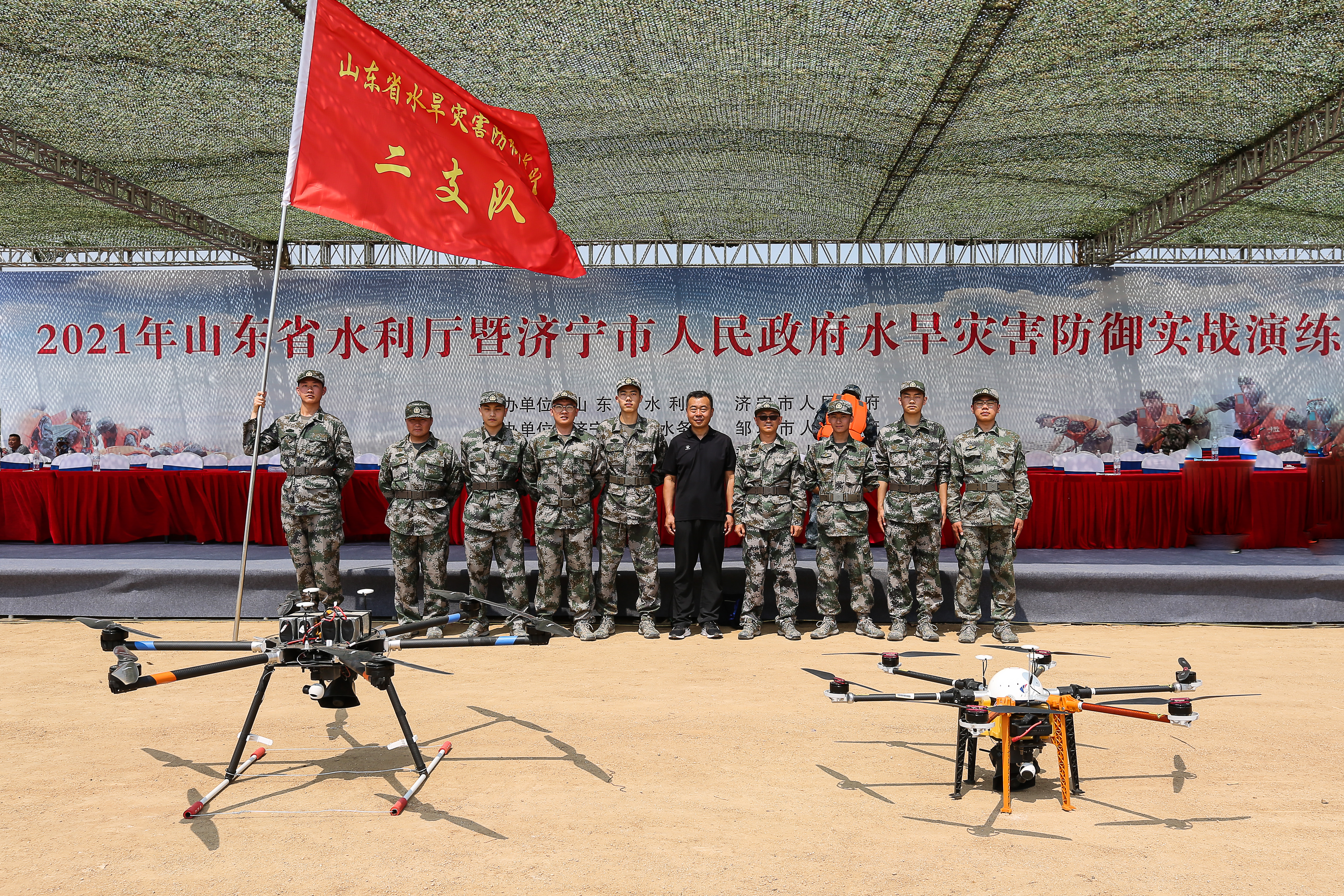 为增强全省水旱灾害防御能力,提高抢险救灾实战水平,保障水利工程安全度汛,确保人民群众生命财产安全,山东省水利厅在济宁邹城市莫亭水库举办2021年全省水旱灾害防御演练。山东水利技师学院智能制造系无人机专业6名学生及水利工程系水利水电施工专业2名学生,作为山东省水旱灾害防御总队二支队,参演了山洪灾害预警、群众转移、水上救生等现场实战演练。