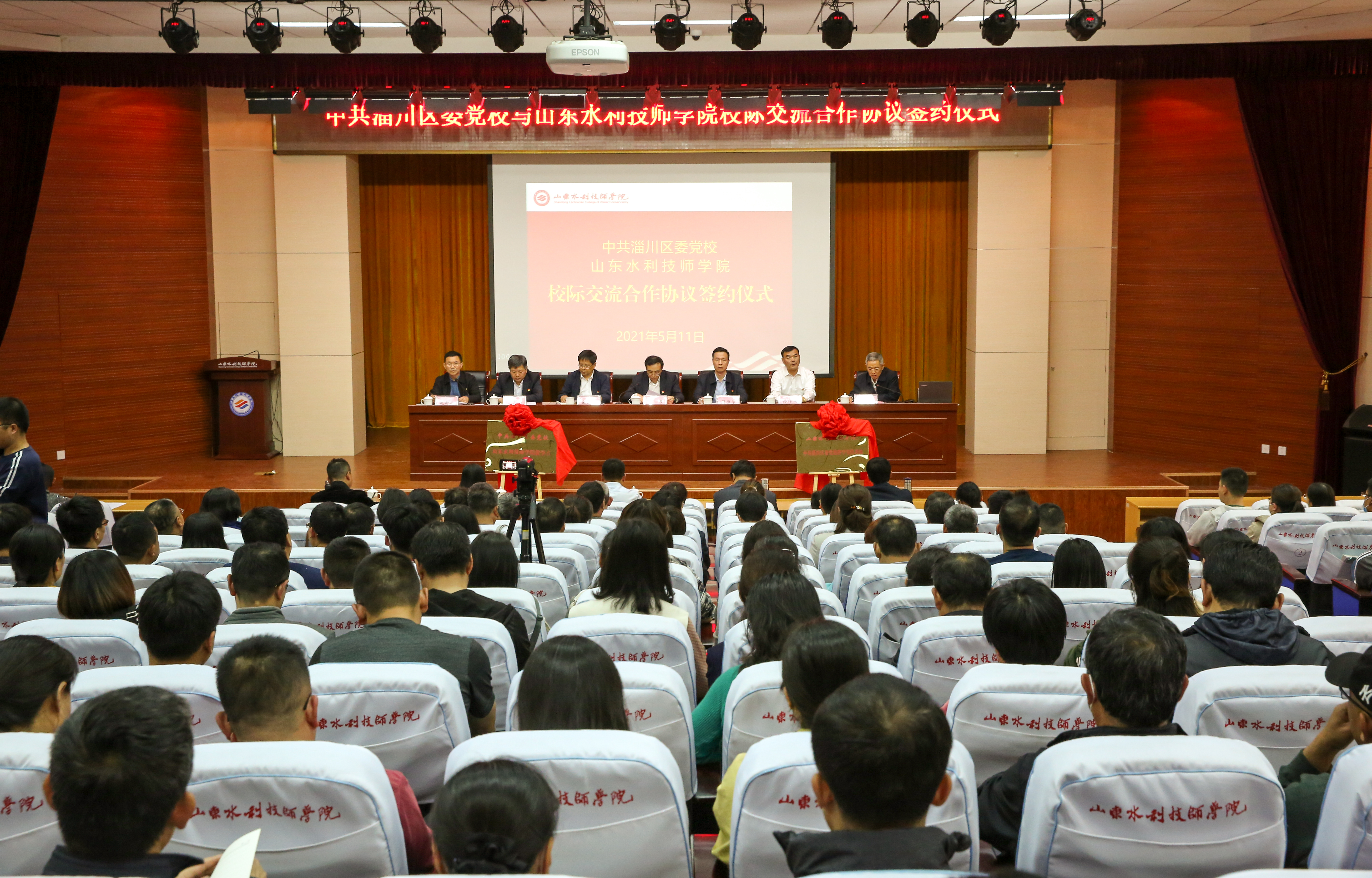 5月11日,山东水利技师学院与中共淄川区委党校举行校际合作签约仪式,淄博市“流动党校”党史教育进高校宣讲会同步举行。市委党校副校长、校委委员王伟,市委教育工委副书记宋乐宝,淄川区委常委、组织部部长周恒学,淄川区委党校党委书记、常务副校长孙传国,学院党委书记于福春出席签约仪式。学院纪委书记赵新运主持仪式。