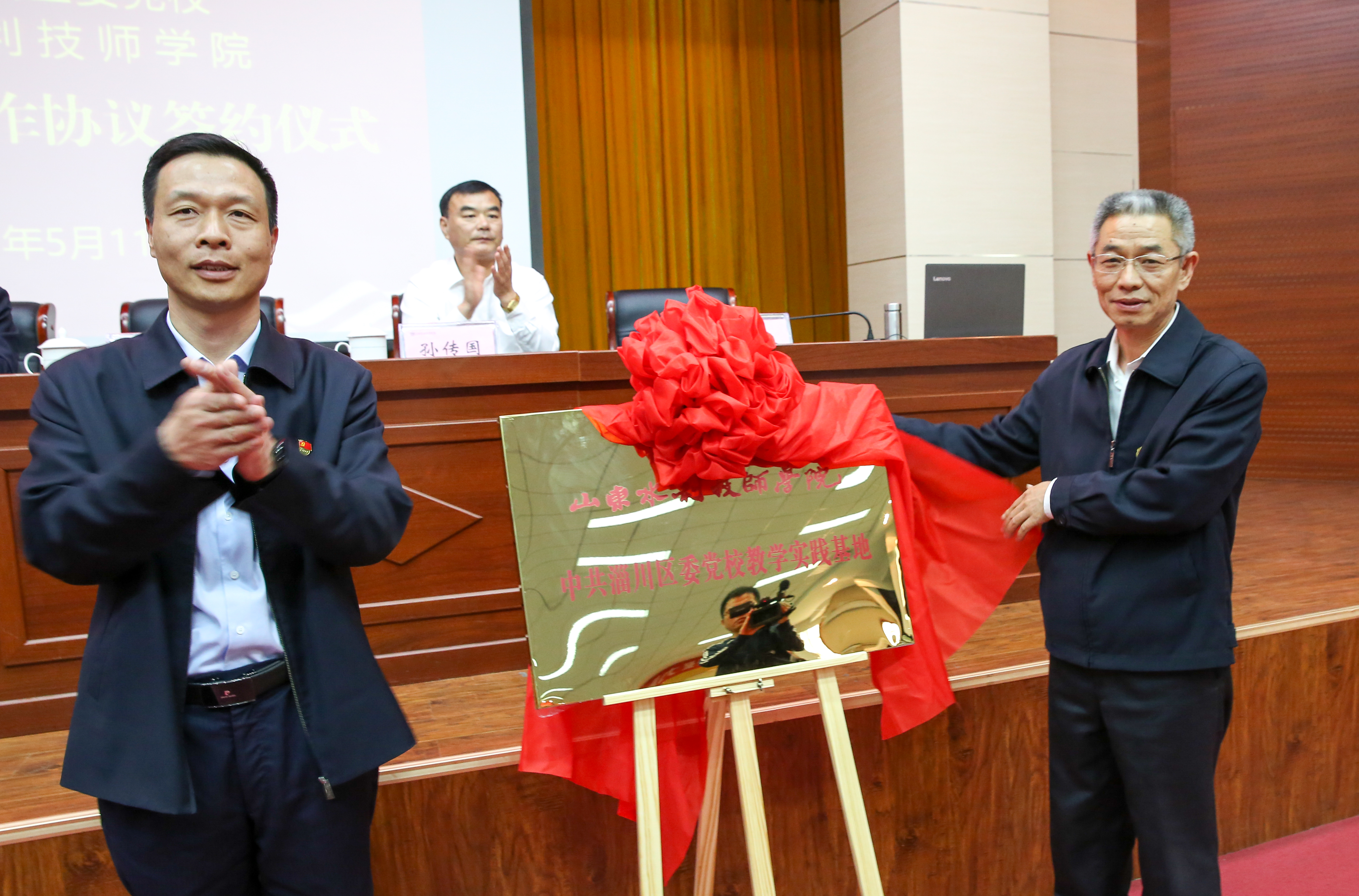 签约仪式上,孙传国和于福春分别代表合作双方签署校际合作协议,周恒学和于福春共同为“中共淄川区委党校山东水利技师学院教学点”和“山东水利技师学院中共淄川区委党校教学实践基地”揭牌。