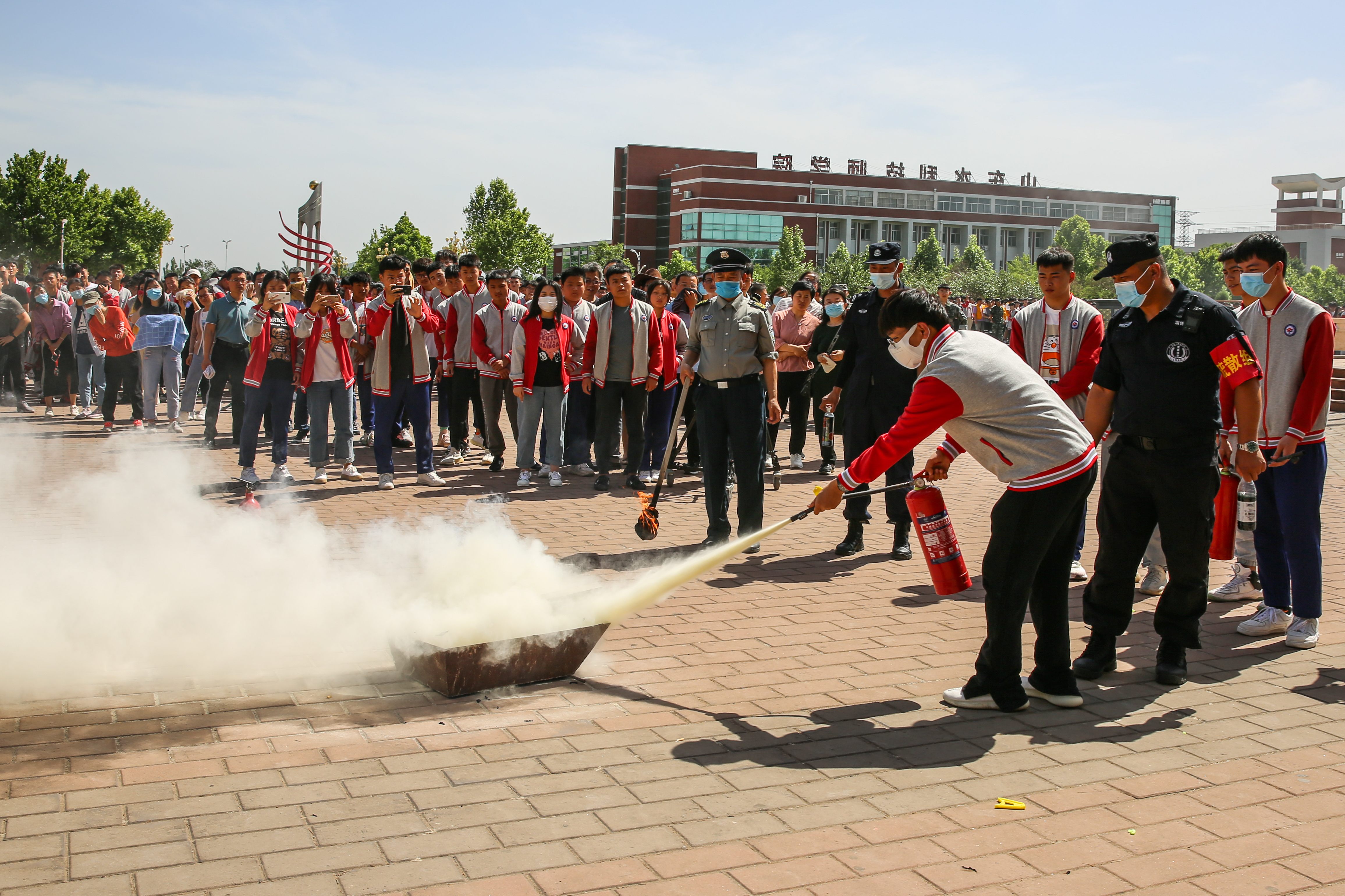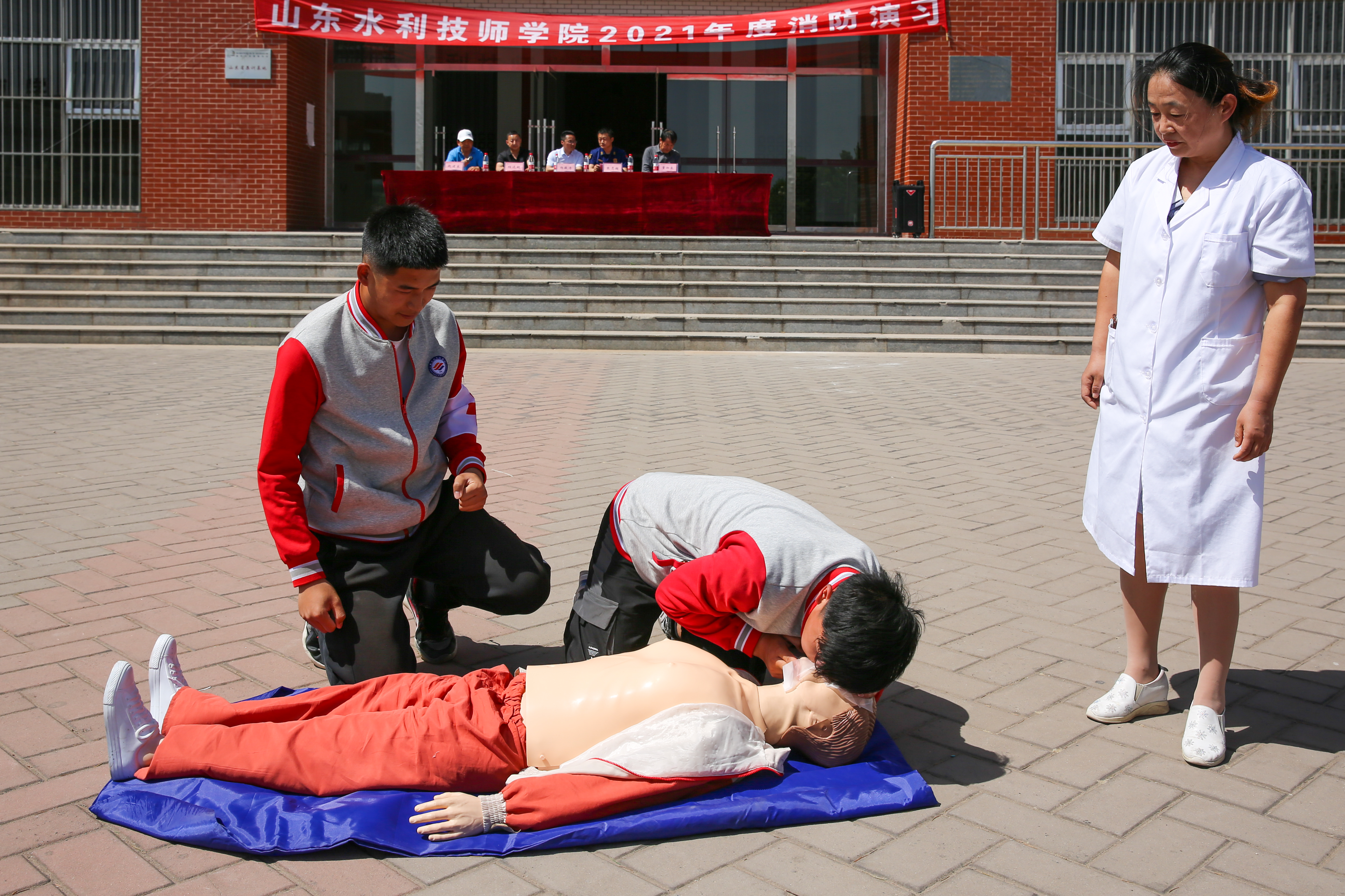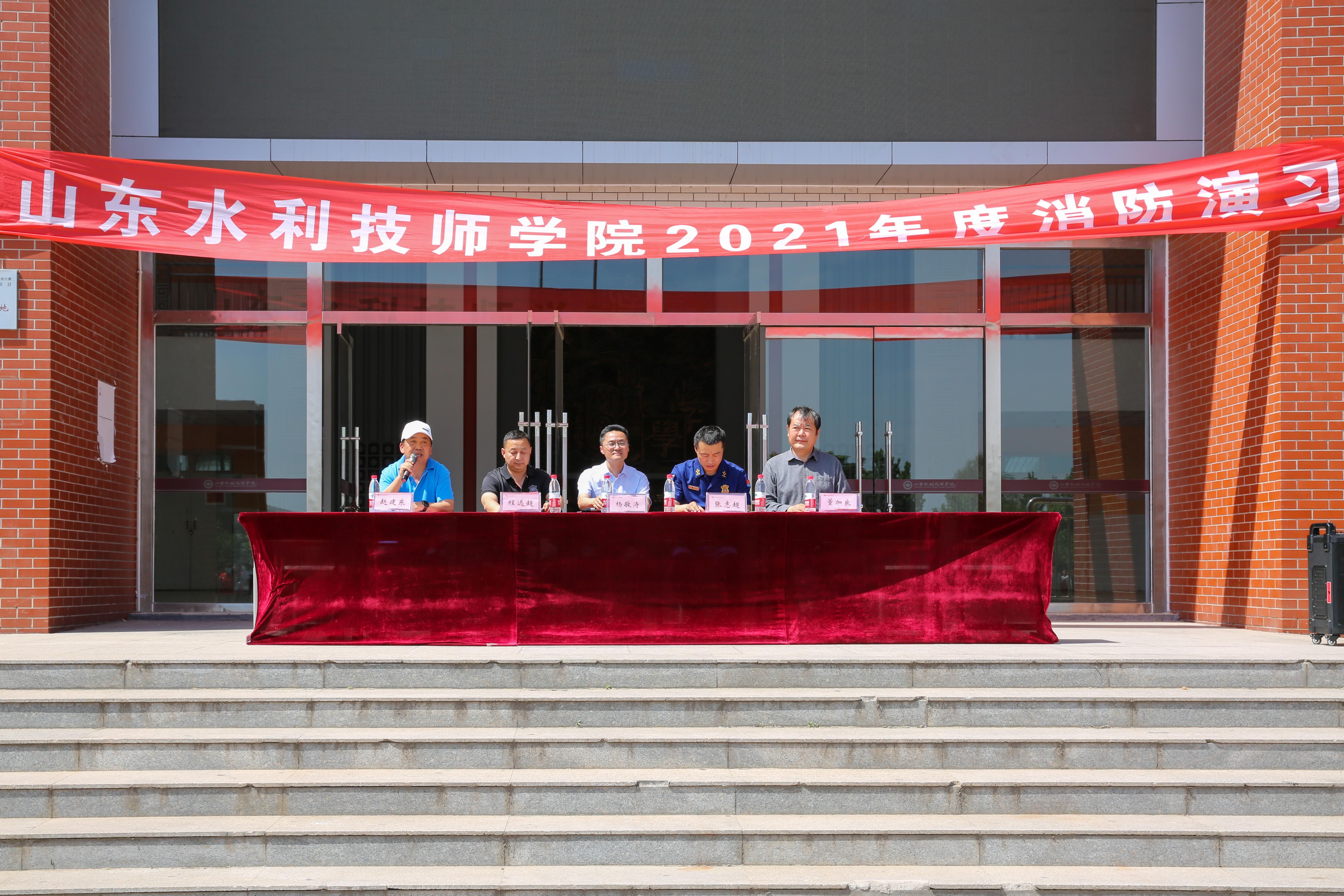 5月25日,山东水利技师学院安全管理处与学生工作处在至善广场联合组织开展了2021年上学期消防应急疏散演练活动。党委副书记杨敬涛出任演练总指挥,副院长赵建东主持活动。