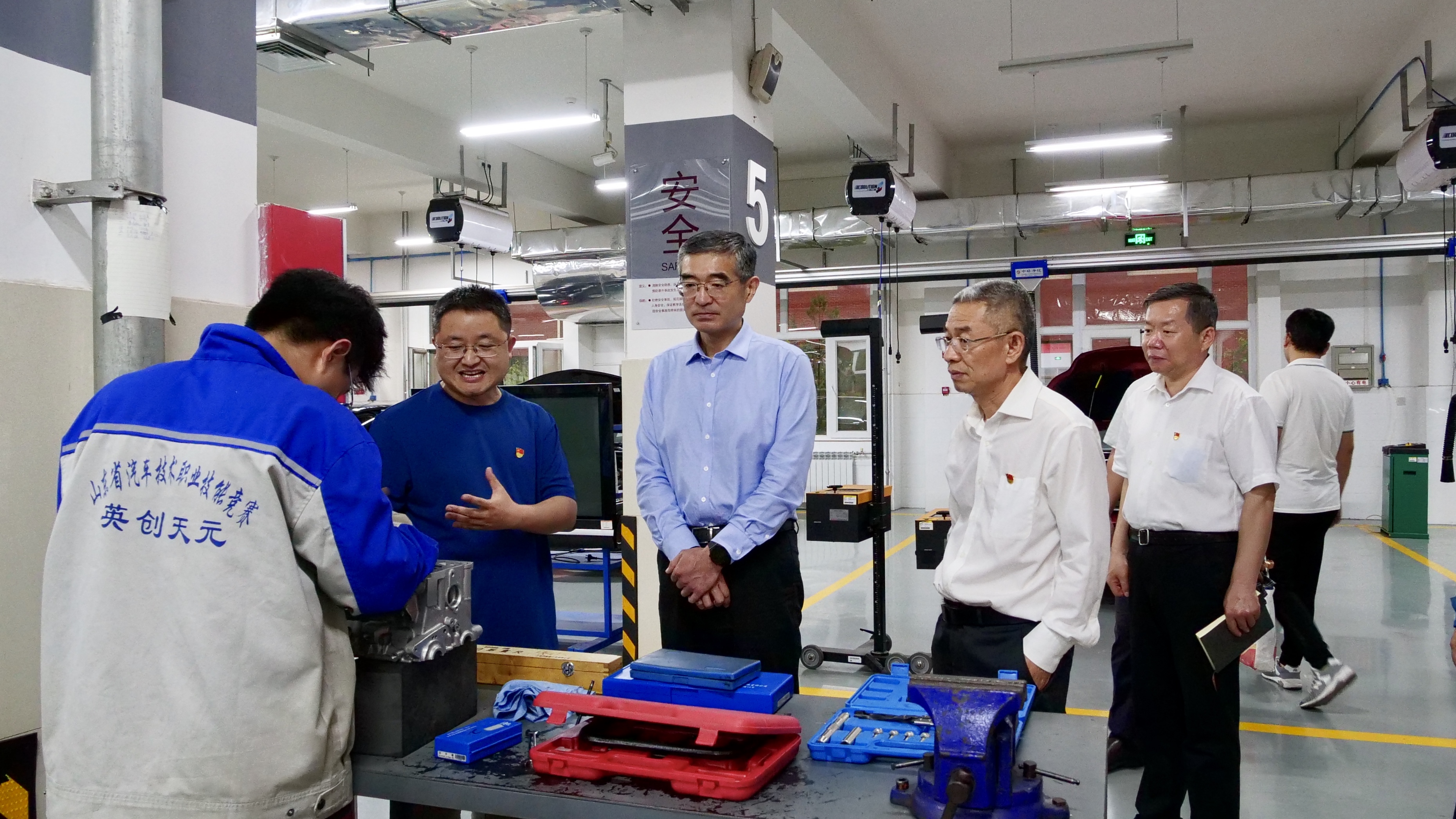 宣讲结束后,盖卫星在淄博市教育局党组成员李铮声的陪同下,对学院与当地的企业合作情况进行了现场考察调研。