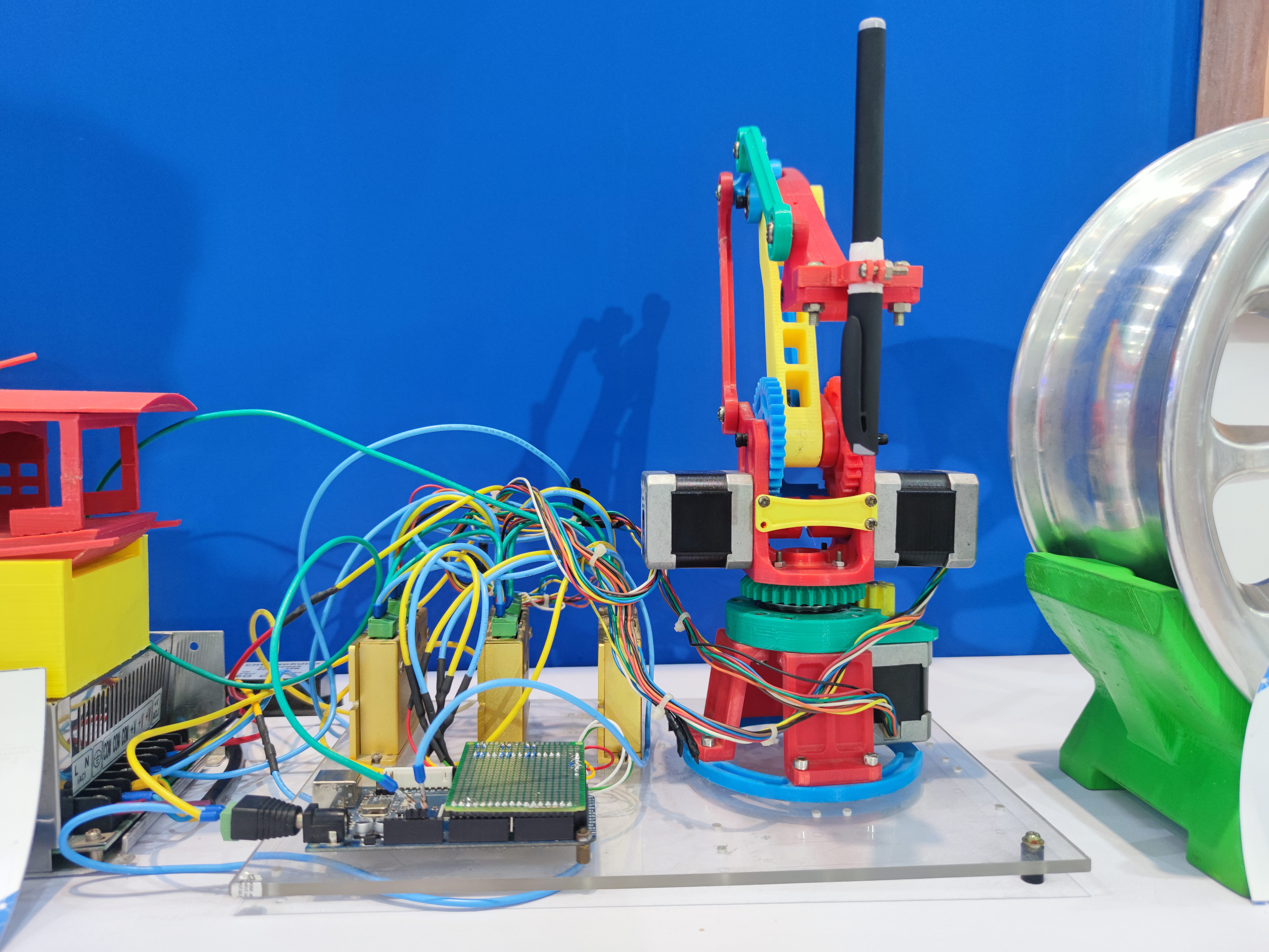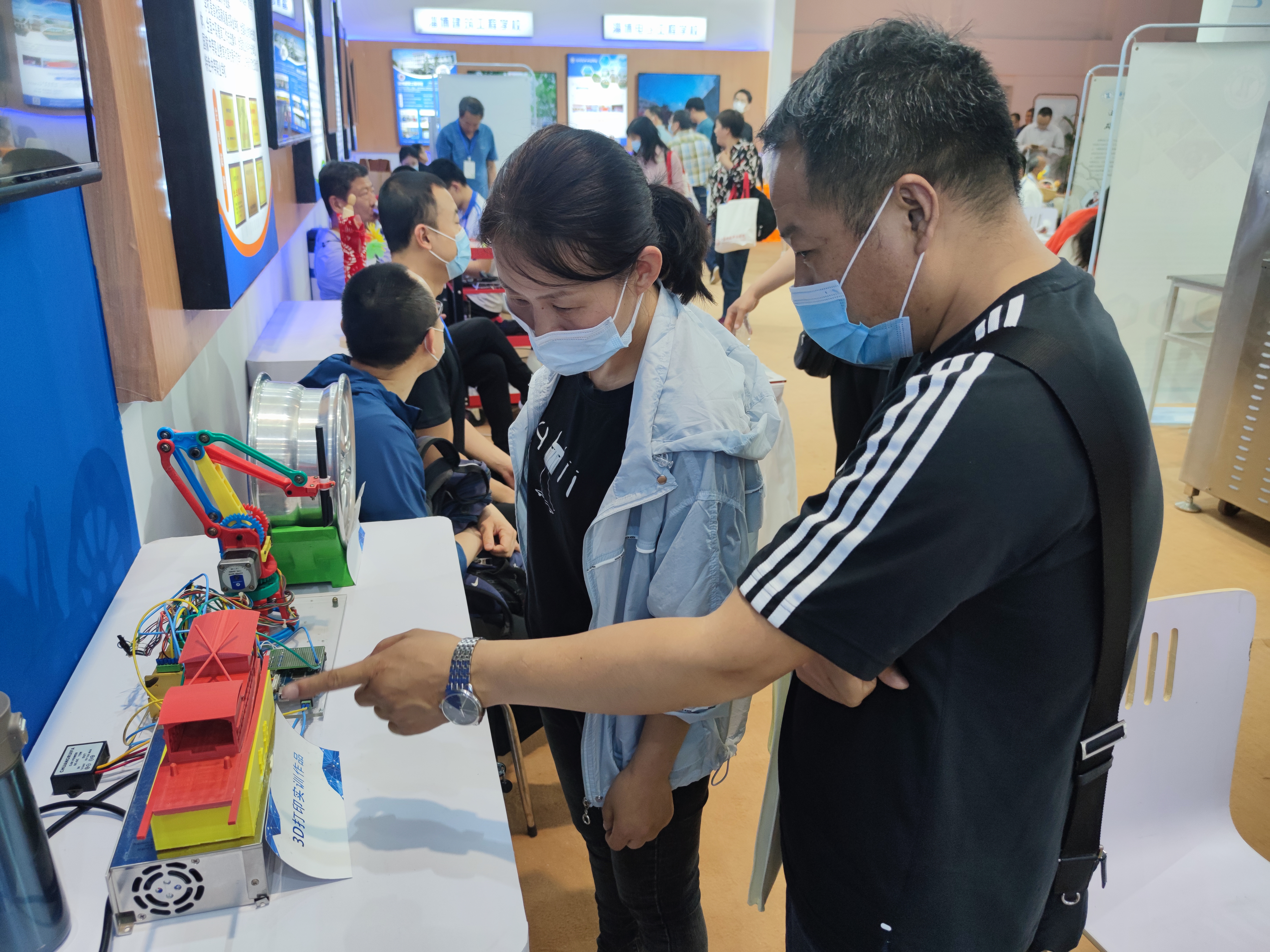本届活动,学院组建参展团队、统筹设计三个展位,分别是学院展示区、特色产品展示区和互动展示区。学院展示区展出学生作品汽车轮毂模型和3D打印的南湖红船作品。特色产品展示区为智能高压信号发生器,是学院与企业合作研发的一个升级版产品,以单片机为核心的气动控制,智能化程度更高,改变了原来的断电后高压放电时高压信号易串入低压侧的危险,且接线更简单,安全性更高。互动展示区为渠道断面自动测流车,是由学院教师团队研发,具有完全自主产权,是学院教师创新创业的典型产品,成为现场的亮点。该测流车适应多种渠道类型,具有全天候侧流能力,可自动准确进行测点定位,自动拟合断面并精确计算断面流速与流量,可实现多断面联合运算,进行渠道纵剖面流量图绘制,目前已成功运行于多个灌区,为我省水利事业发展提供了水院智慧。