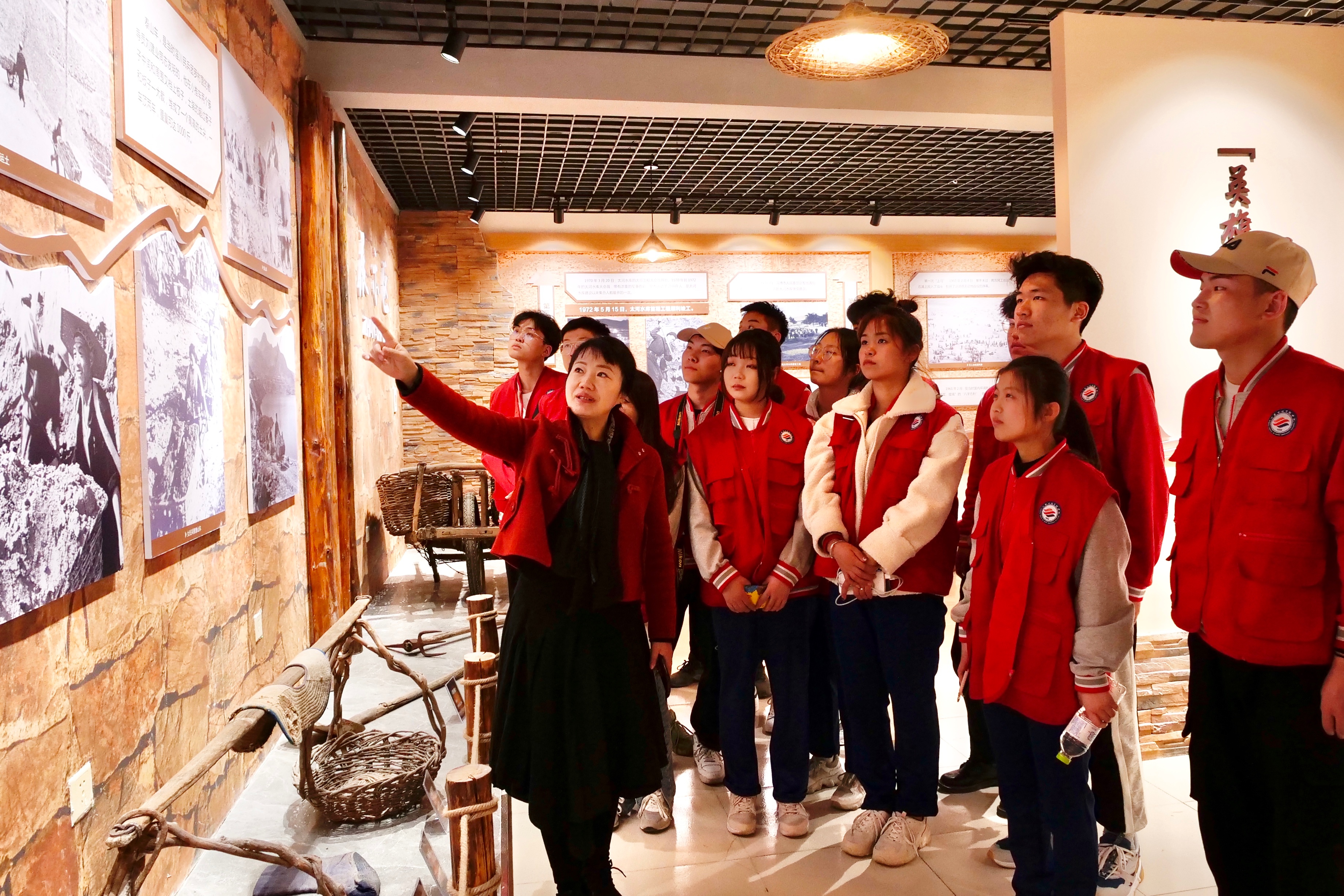 在一组村民们推着装满土的人力车正在行进的图片前,宣传部副部长李华老师感慨地介绍说:“这种车子名叫‘泰山车’,是村民们劳动智慧的结晶。他们为了提高效率,加快大坝建设速度,自制了用两个篓子组成的泰山车,这样一趟可运双倍的土,一次运量可达1000斤。可见这座水库,不仅是一项规模宏大的水利工程,更是一部伟大的艰苦创业史,创造了在中国共产党的领导下不怕牺牲、移山倒海的英雄壮举。”