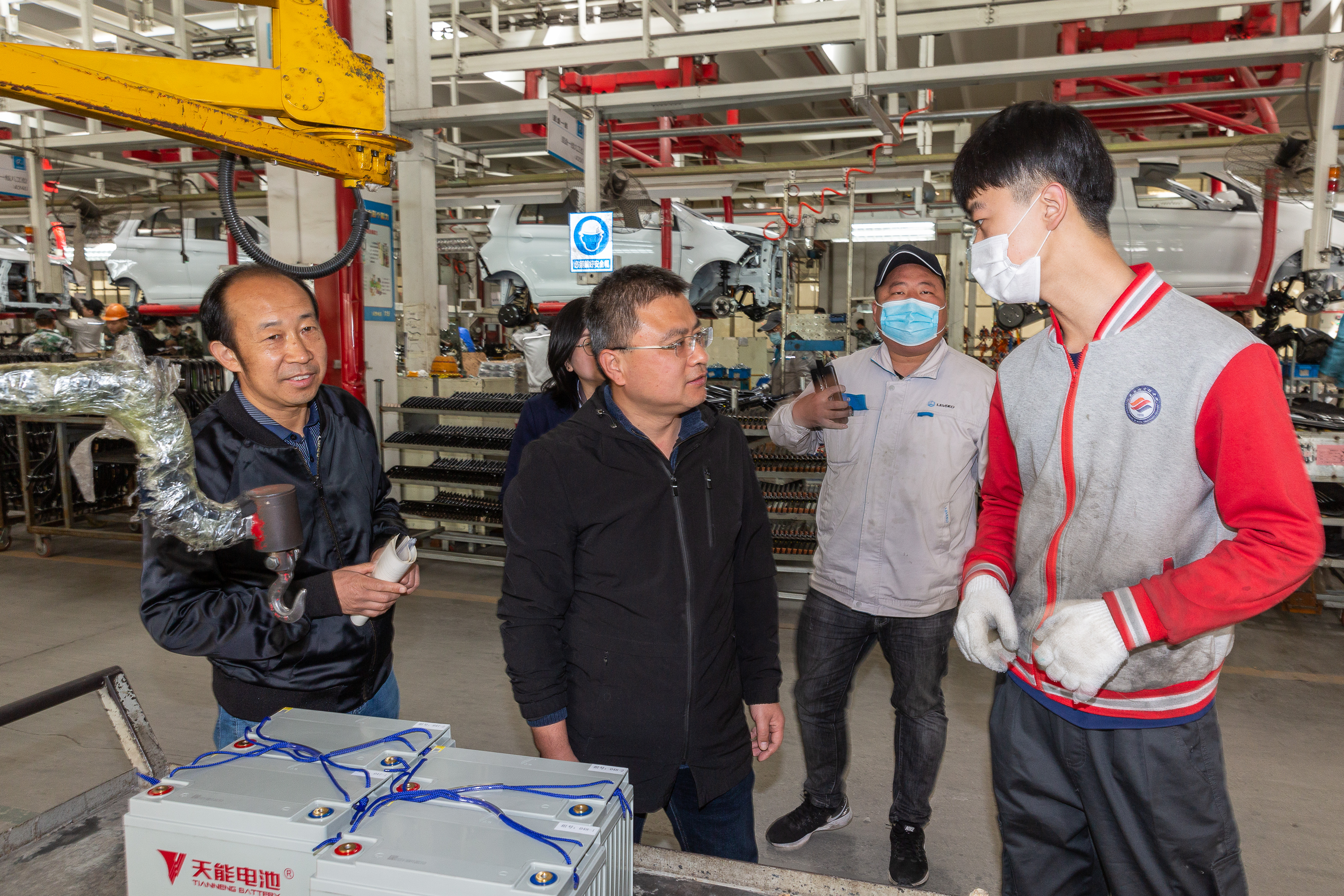 在该公司制造中心,交通系卢相关负责人一行沿着总装线和车身制造线,逐一看望了同学们,听取了车间主管和带队老师的介绍,对同学们的优异表现给予点赞,并与部分同学进行了座谈,了解他们的工作和生活情况,询问他们实习过程中的切身感受,强调一定要注意安全,明确实习的目的和意义。同学们对系领导的探望非常振奋,纷纷表示一定要好好工作,以学院刚刚获得“山东省技术能手”的10名师生为榜样,刻苦钻研,磨砺精技,为水院争光。