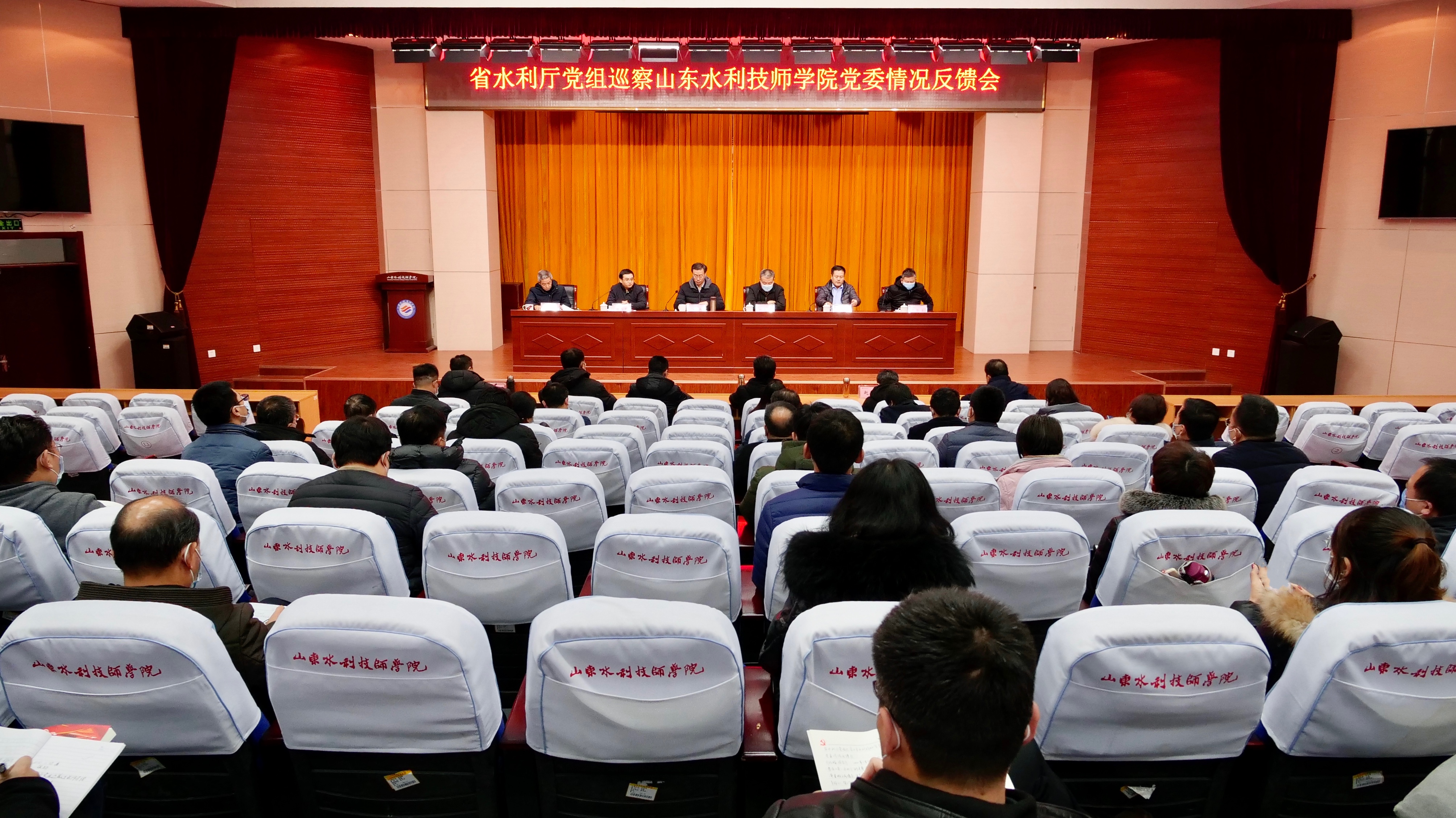 1月25日,省水利厅党组巡察山东水利技师学院党委情况反馈会议在学院报告厅召开。省水利厅党组副书记、副厅长、巡察工作领导小组副组长马承新出席会议并讲话,省水利厅第二巡察组组长赵有信通报巡察情况反馈意见,学院党委书记于福春代表学院党委作表态发言。省水利厅机关党委专职副书记、厅巡察办主任柴均章主持会议。省水利厅巡察工作领导小组成员、发展规划处处长刘建基,厅机关纪委书记杨忠堂出席会议。学院党委班子成员及全体中层干部参加会议。