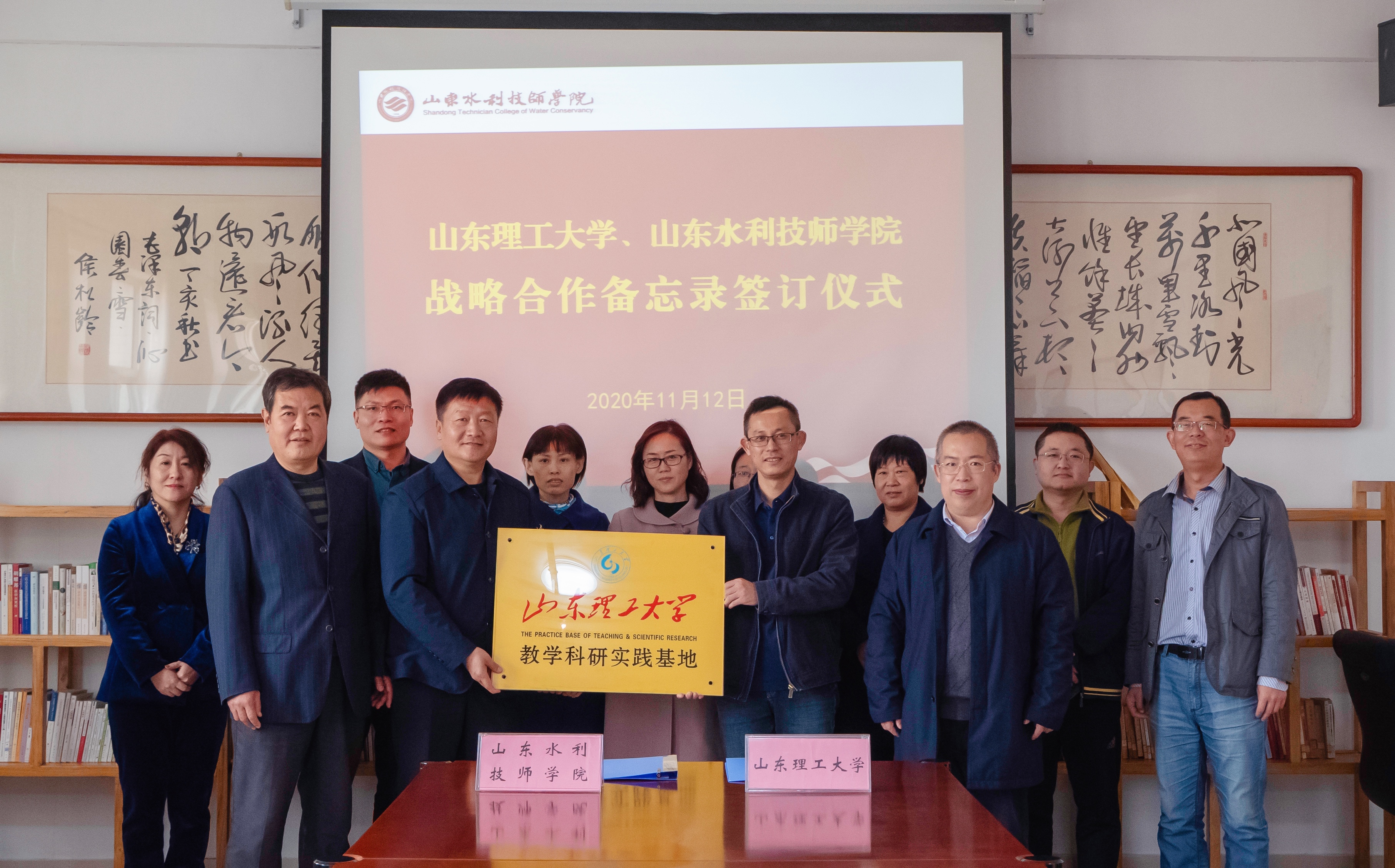 为加强区域校校合作,促进优质教育资源优势互补,11月12日上午,山东水利技师学院与山东理工大学在学院签订战略合作备忘录,并进行了“山东理工大学教学科研实践基地”揭牌仪式。学院副院长董加良参加签字仪式。