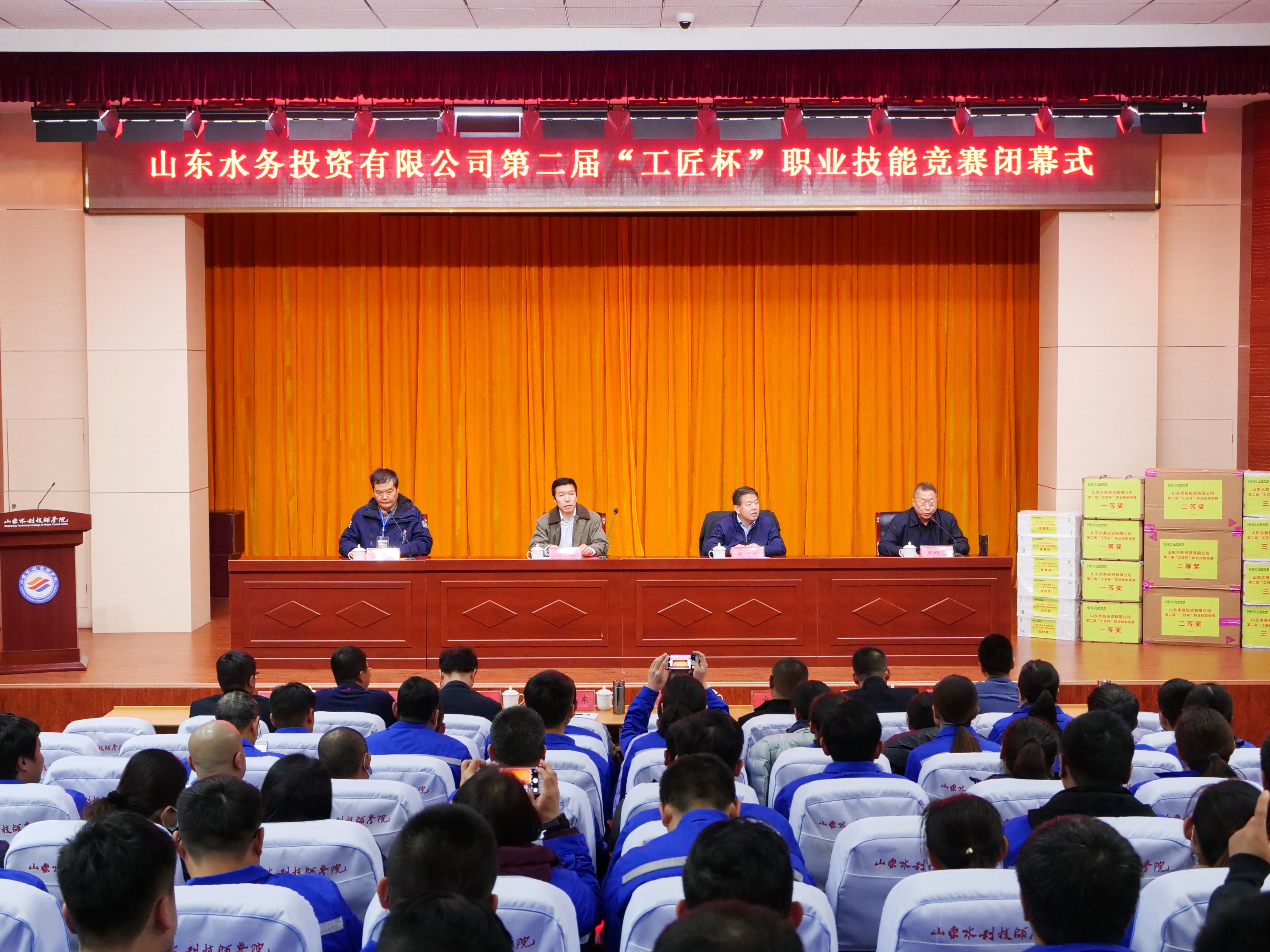 11月22日上午,历时一个月的山东水务投资有限公司第二届“工匠杯”职业技能竞赛,在山东水利技师学院圆满落幕。山东省农林水工会主席张志刚出席闭幕式并讲话。山东水务投资有限公司副总经理薛山、学院副院长董加良等出席闭幕式。