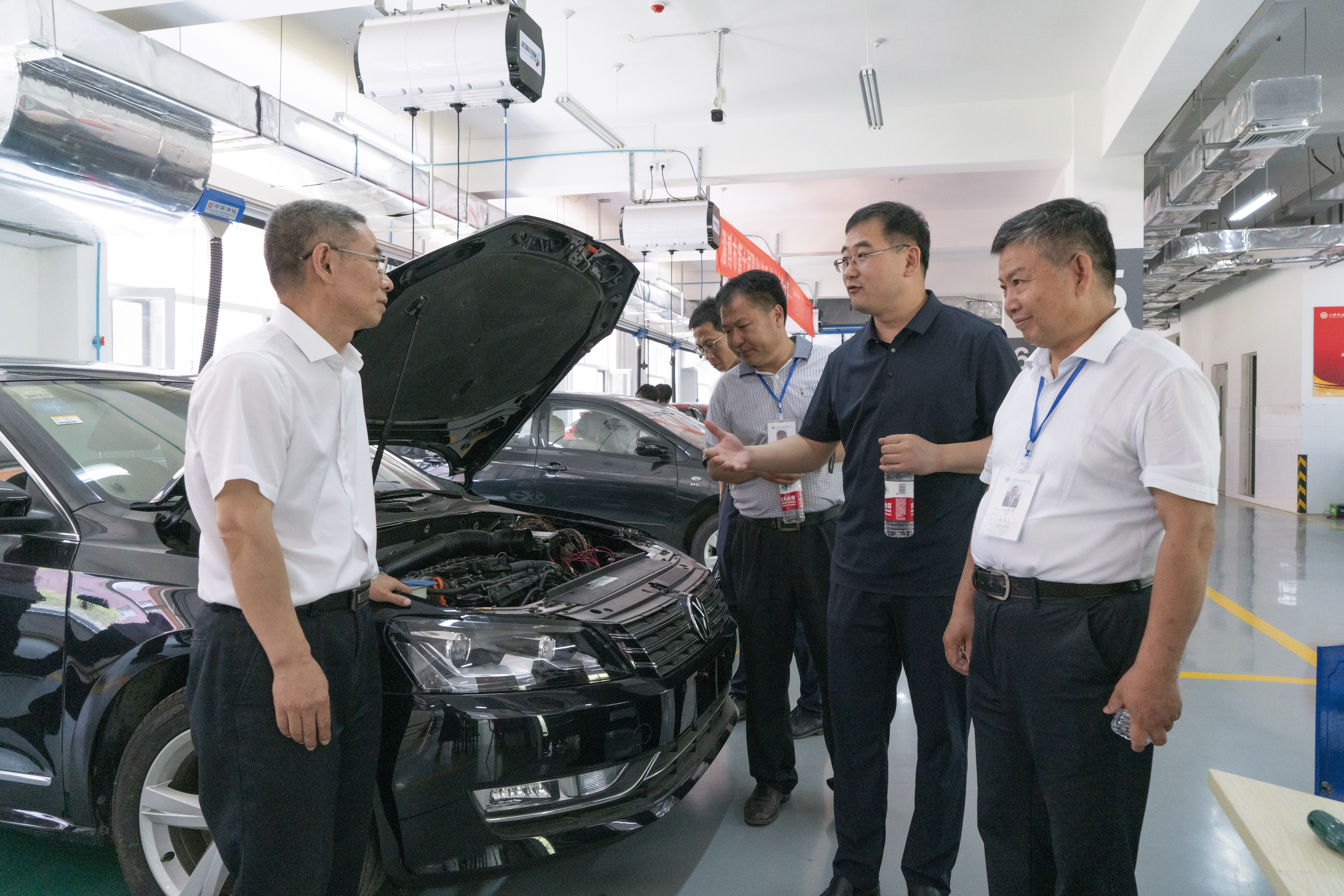 高连义一行参观了学院仁丁电子竞技新媒体学院,工业控制、机器人工作站,无人机实训室,交通工程系汽车诊断实训中心、唐骏汽车工艺实训中心、喷涂车间,大学生活动中心、图书馆大厅,萌源河道等,对学院专业设置、实训室建设、教学环境、教学设备、教学成果等给与高度赞扬。
