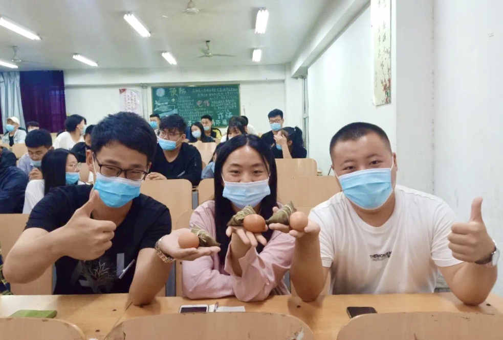 以爱为源是学院的教风。6月23日晚,在学院树人楼112教室,学院水利工程系学工组长王敏带领王立超、李杰、姜棋等老师,为在校的学生干部送来粽子。