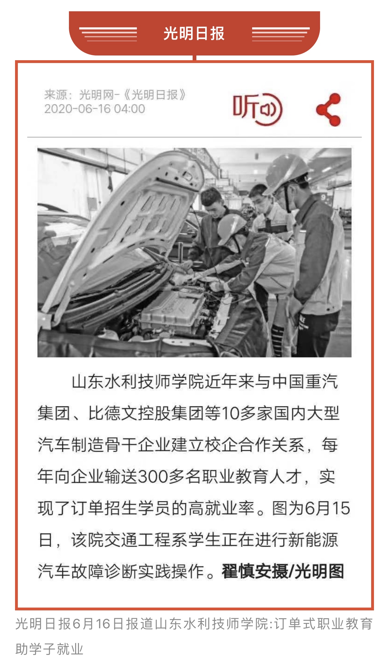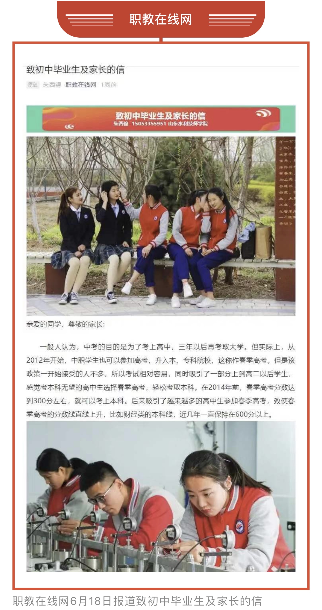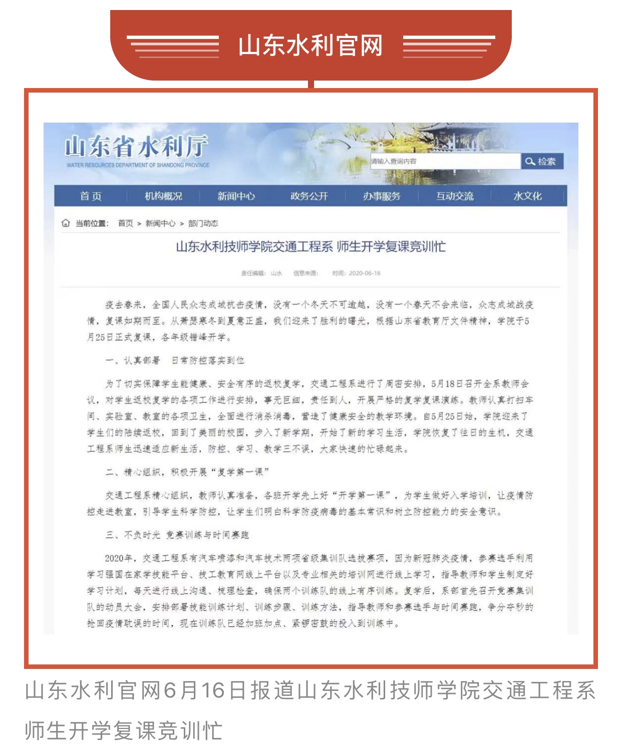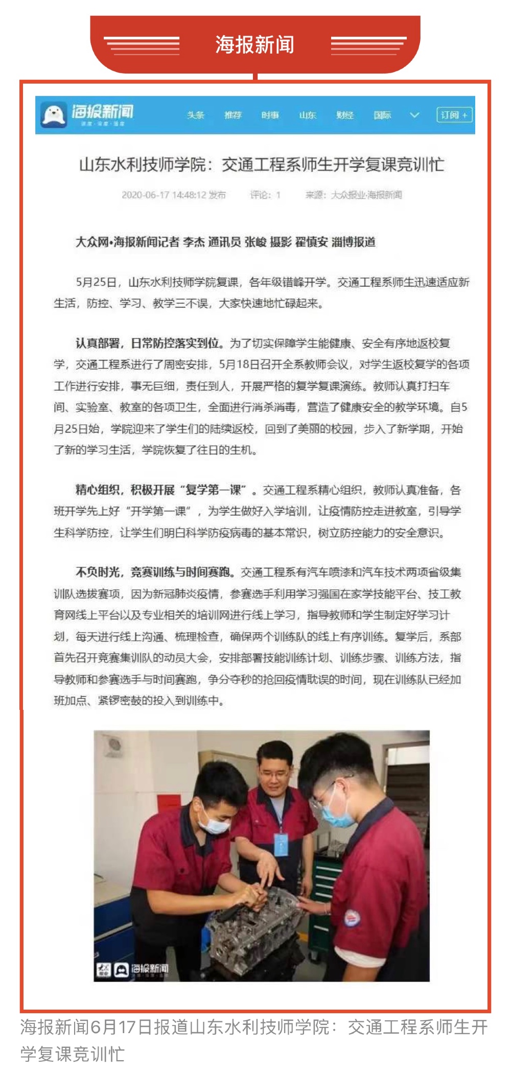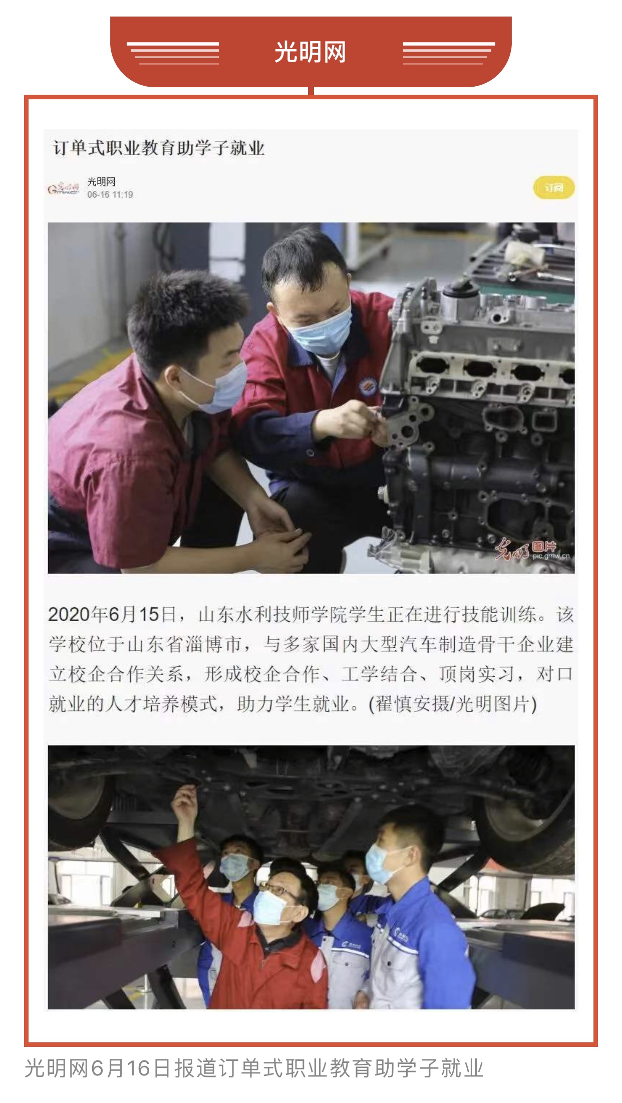 六月,山东水利技师学院学子学习竞赛繁忙,他们在课堂求知,在车间和实训室磨砺精技,锤炼本领;践行工匠精神,凝心聚力,精益求精,一技在握,福己惠天下。他们求知磨技的身影,迎向世赛坚定的步伐和目光,登上了多家国家级媒体——光明日报、中国教育报、中国劳动保障报、工人日报、山东工人报、淄博日报、淄川工作,光明网、中国组织人事报新闻网、中国报道、学习强国、山东水利官网、大众日报客户端、职教在线网、淄川融媒等十多家媒体进行报道。劳动最值得敬重,汗水浇灌的花朵最美。他们以新生代学子吃苦耐劳、拼搏奋进的精神承担着新时代新青年的责任和使命。