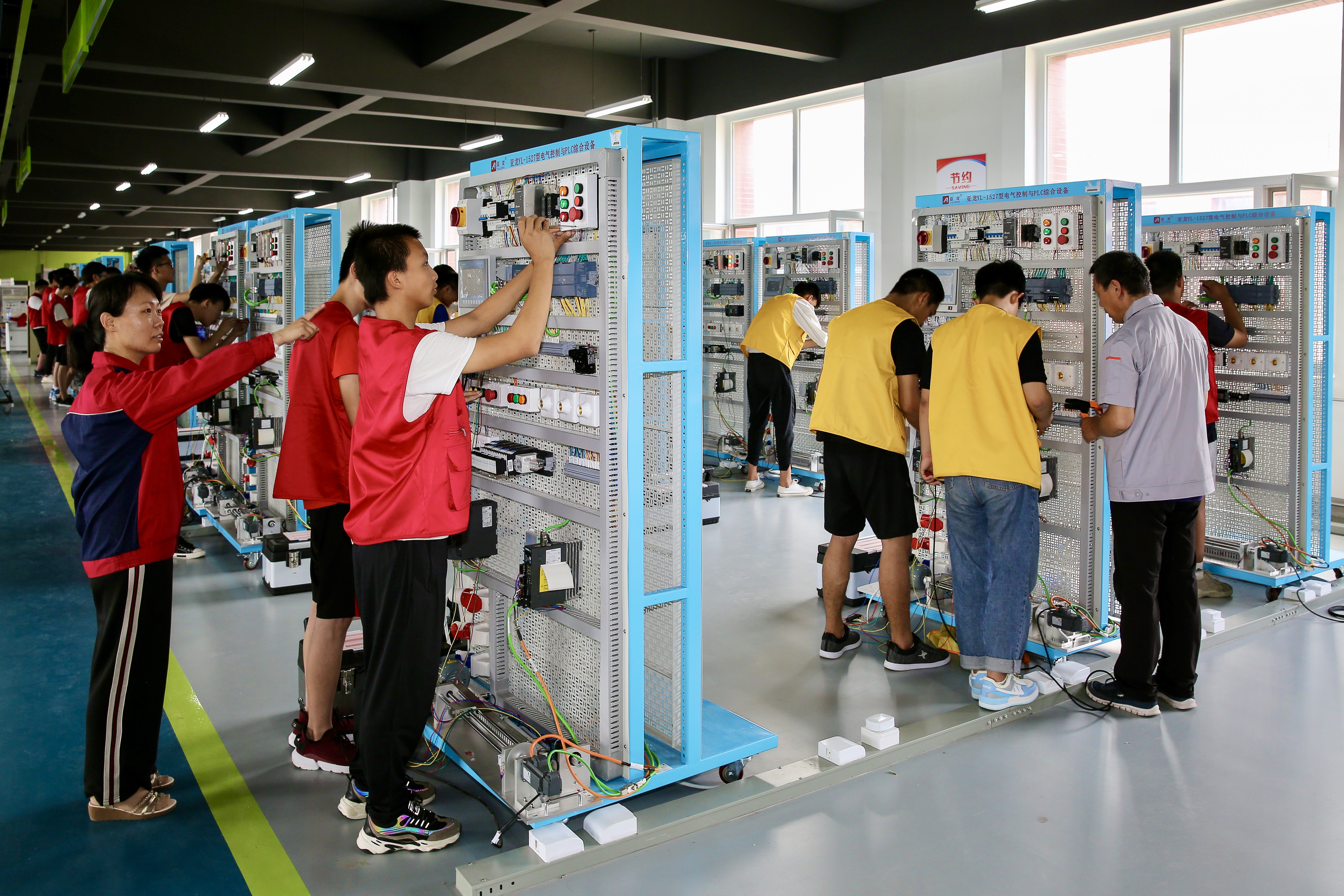 机电一体化等专业的师生,直接把设计、制作、改装教具作为课程模块搬入了教学实训。师生已经不满足利用现成的实验型教具学习原理和拆装,认为会束缚思维创新,也不能对接多个企业的不同实际需求,所以师生自行设计、制作、改装教具。工业生产线模块、电力拖动模块、机床电器维修模块、工业机器人模块、水利机电电气控制等模块的教具制改,都成为师生奋战的现场。经常听到这样的豪言壮语:“师兄做的?超了他!”“再做好点,给师弟师妹留个MODEL”,作品也确实令人耳目一新。看看师生与企业共同开发的“亚龙YL-1527型电气控制与PLC 综合设备”,第一工位为显示教学工位,以典型控制线路、标准件配置来完成机构原理熟悉、基本接线训练,可以反复练习直至熟能生巧,达到中级工水准;第二工位为展示训练工位,提供必要的标准件,学生按照给定控制线路完成设计、接线、调试,反复调修优化,从对到优,高级工水准没问题;按计划、有针对地设置多种故障,学生一一排除,又对又快,达到预备技师的水准。有意向去就业的企业,师生直接参照企业设备的图纸进行训练,接线、操控、排故,越熟练企业看了越眼热,赞叹学校把岗前培训都做好了,不愧无缝对接就业。一机多用、教学相长,合作企业与师生商量:“王老师有没有意向跳槽来我们公司?”“这几位同学提前预定给我们公司怎么样?薪酬好谈!”更多用人企业争相送图到校、现场面试,明年的毕业生已经提前一年被预定了,目前企业瞄上了他们的师弟师妹,拥有高技能、真本事,优质就业不愁!