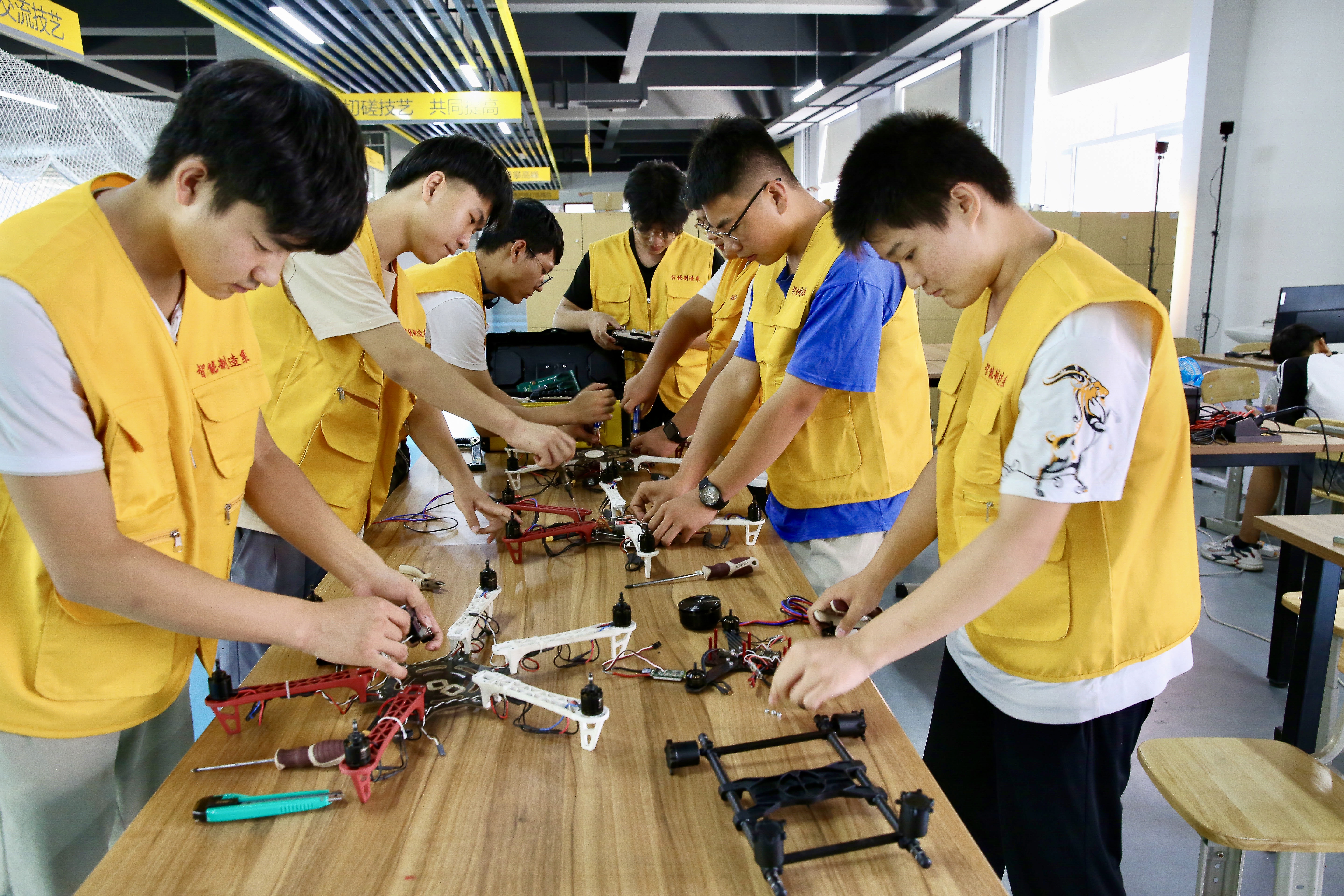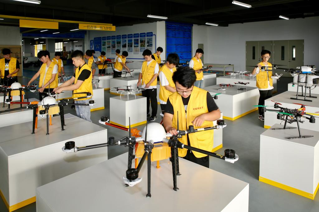 教学?竞赛?就业?创业?在智能制造系无人机应用技术专业的实训中心,这些环节早已融汇贯通:这边在进行组装调试初级训练的同时,那边已经在进行无人机的改装了;这边用自己装调好的无人机进行的飞行训练如火如荼,那边的航测数据已经转换成三维图备用了。