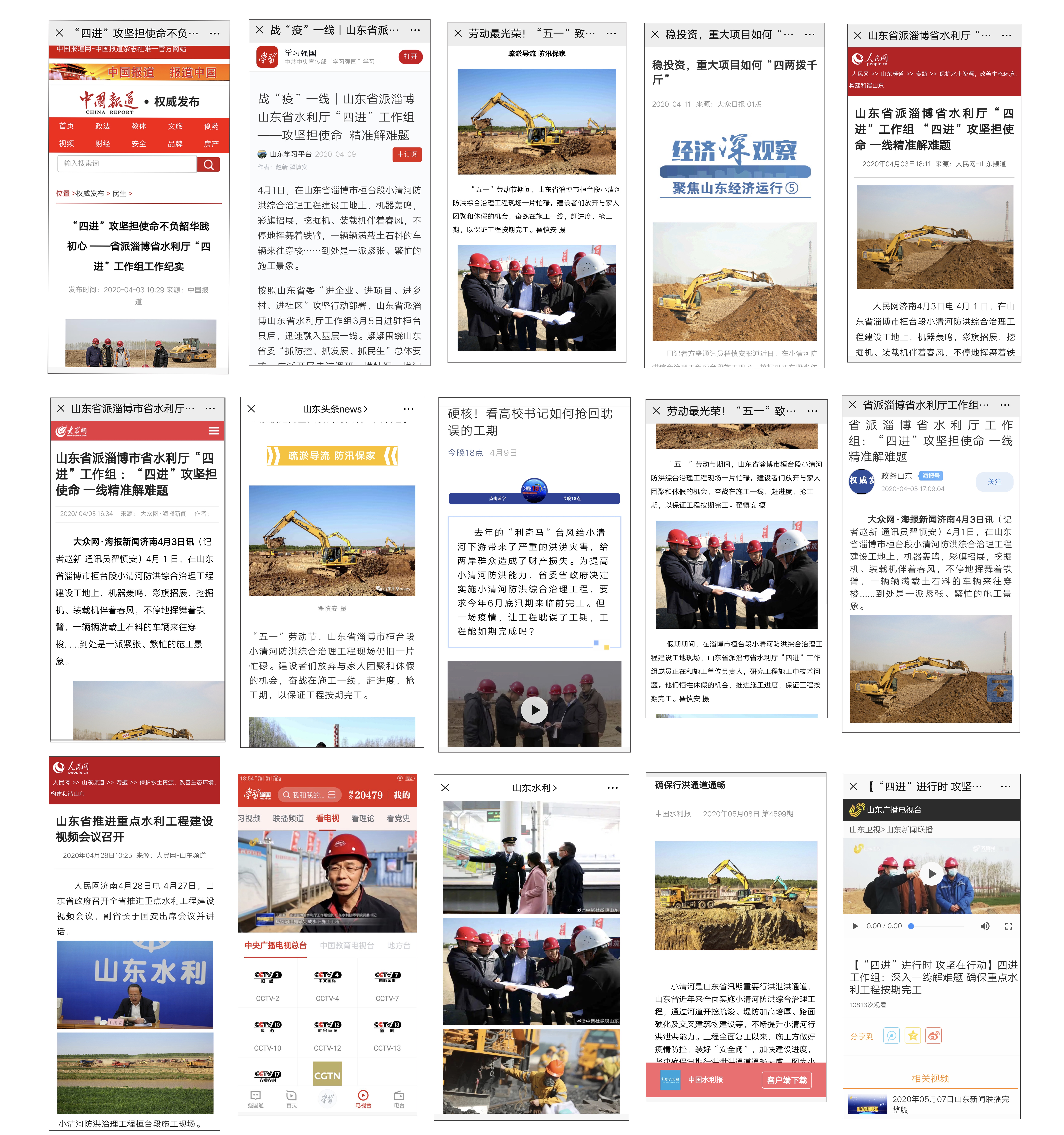 工作组扎实工作得到省委组织部和地方政府的认可。3月23日,大众日报以《小清河畔争春回》为题予以报道。3月25日,淄博市电视台以《硬核!看高校书记如何抢回耽误的工期》为题进行报道。4月5日,大众日报客户端发布《“四进”优秀工作法:攻坚担使命,精准解难题》新闻报道。4月9日,学习强国(山东学习平台)以《“战“疫”一线|山东省派淄博山东省水利厅“四进”工作组 ——攻坚担使命 精准解难题》为题发布报道。5月1日,中新网发布《劳动最光荣!“五一”致敬奋战一线的劳动者!》新闻报道。5月6日,山东电视台以《【“四进”进行时 攻坚在行动】四进工作组:深入一线解难题确保重点水利工程按期完工》为题予以报道。中国报道、腾讯新闻、海报新闻,中国水利报、中国劳动保障报、山东教育报、山东工人报、淄博日报,山东教育电视台等二十多家媒体也进行了报道和转载。