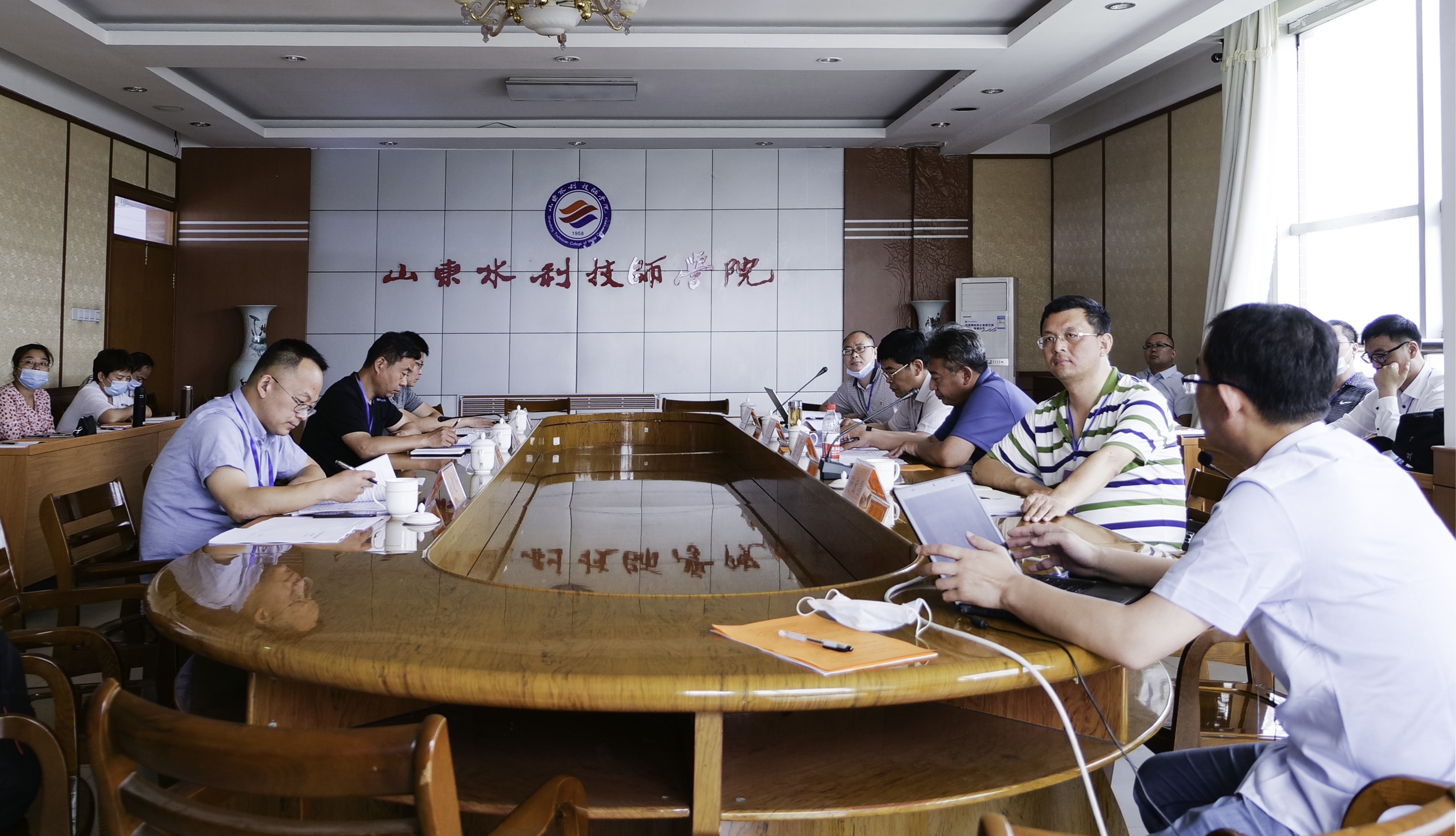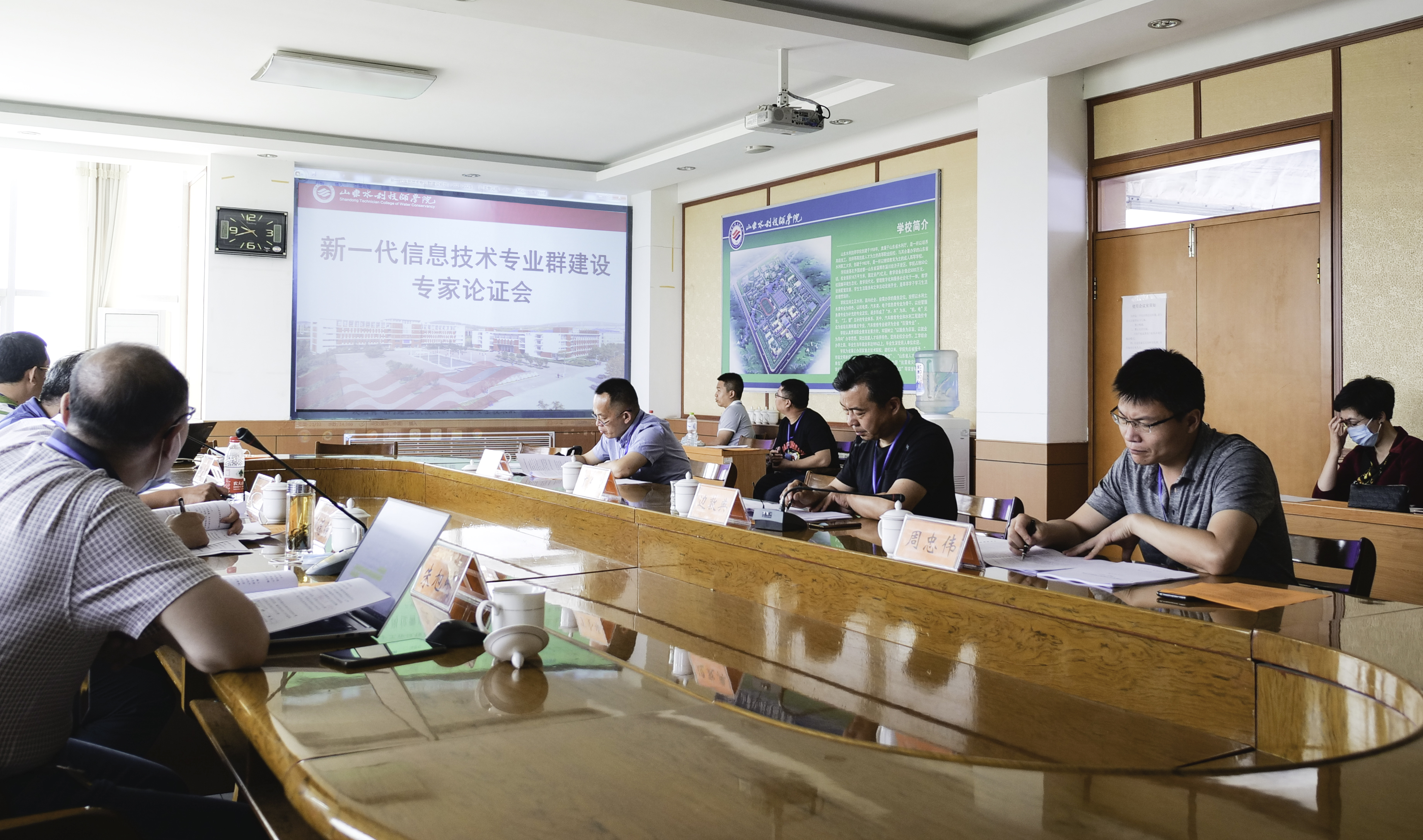 2020年5月31日,山东水利技师学院在行政楼301室召开新一代信息技术专业群建设方案论证会,潍坊职业学院刘德强教授、山东商业职业技术学院朱旭刚教授、山东电子职业技术学院刘学教授、山东省水利厅调水管理处副处长靳宏昌,学院党委委员、副院长边敦典,教务处、信息技术系负责人及信息技术系骨干教师等参加会议。