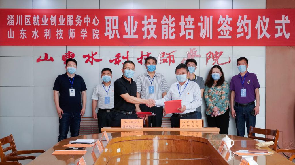 5月26日,淄川区人社局与山东水利技师学院,在学院行政楼301会议室签署职业技能培训协议。淄川区人社局党组成员、就业创业服务中心主任李贵友,学院党委副书记、院长孙桐传,副院长董加良等参加了签约仪式。根据协议规定,山东水利技师学院开设车工、电工、保育员、汽车维修工及河道修防工五个培训专业,其中,河道修防工专业在淄博市是首次开设。